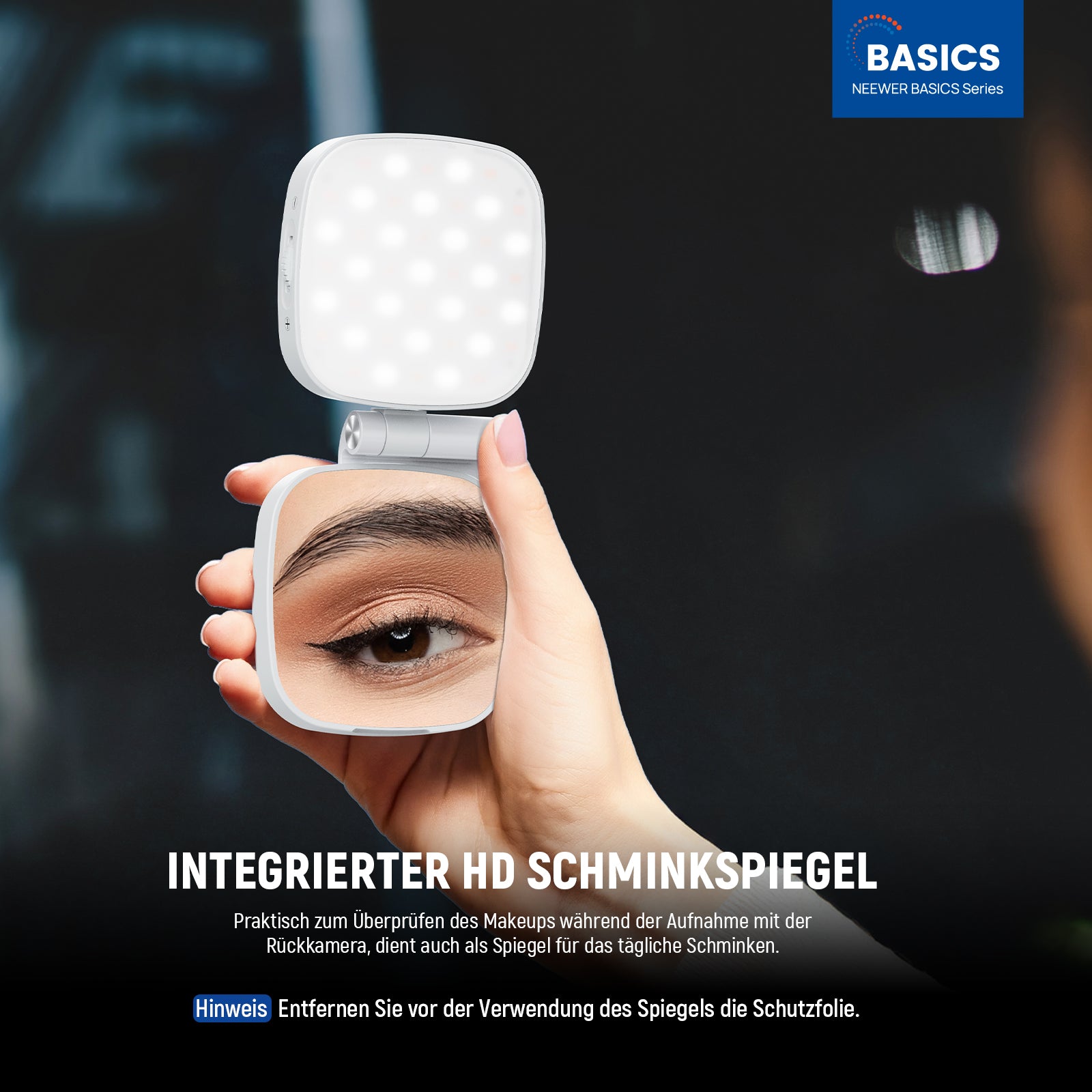 NEEWER BASICS NL48B Magnetisches Selfie Licht mit Ständer/Spiegel für iPhone Android