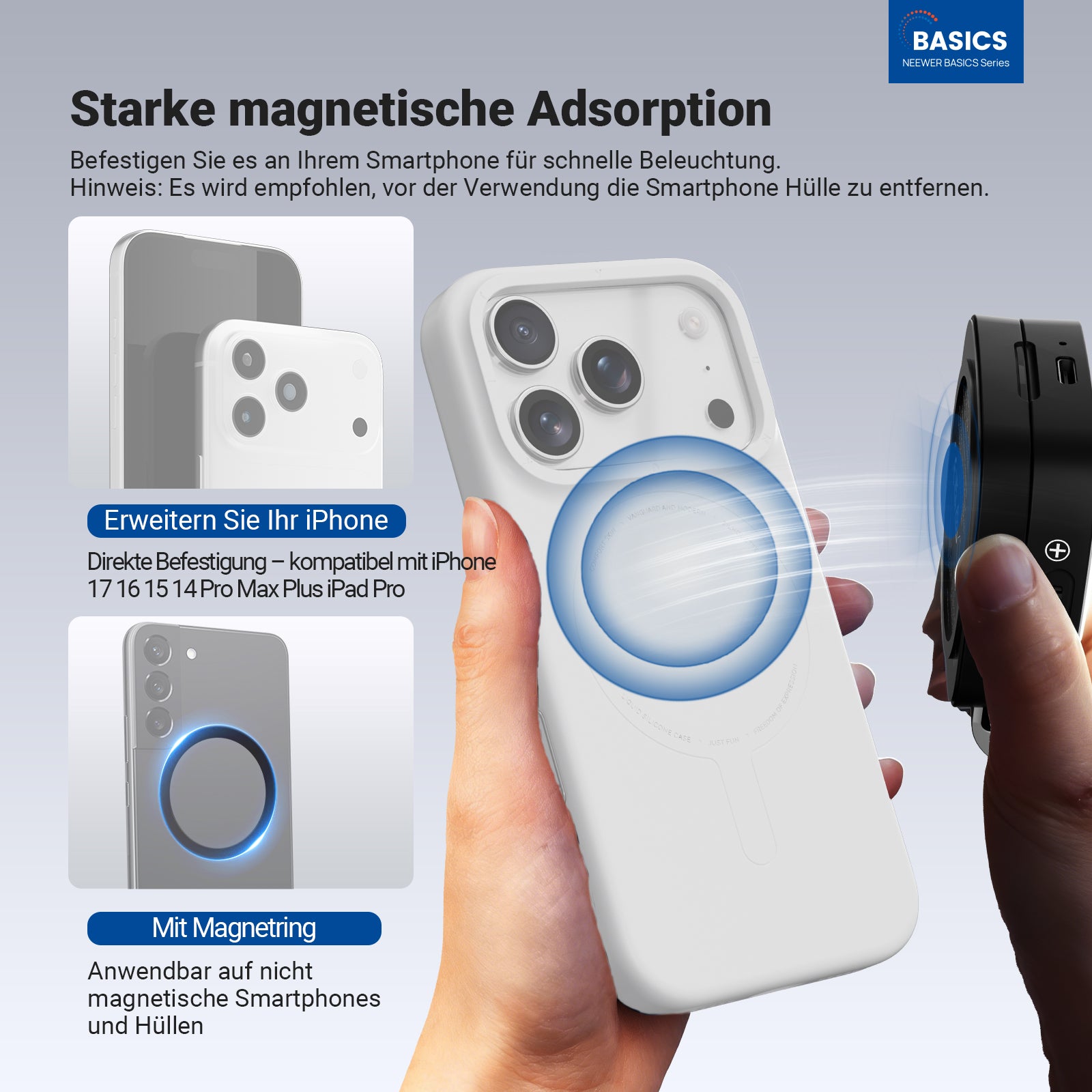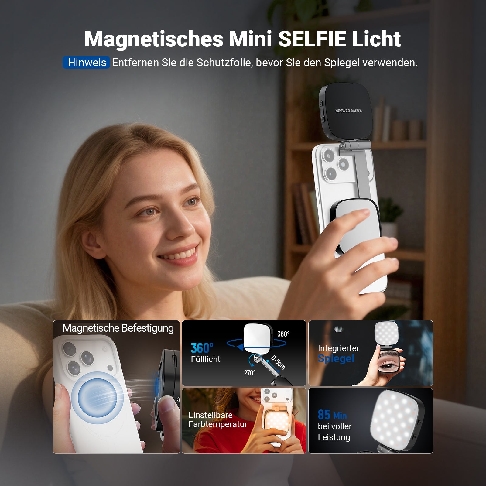 NEEWER BASICS BL48B Magnetic Selfie Licht kompatibel mit MagSafe