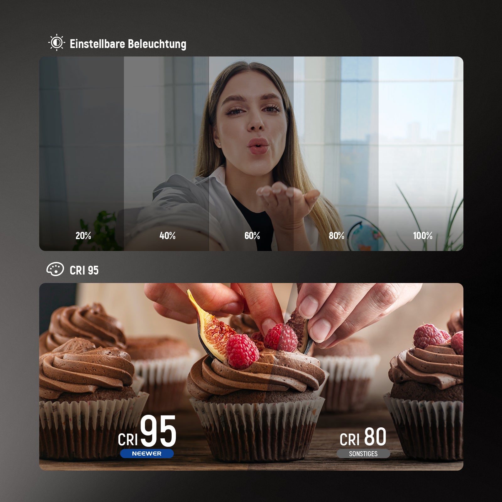 NEEWER BASICS VL67B Bi Color (Zweifarbig) Selfie Licht mit APP Steuerung