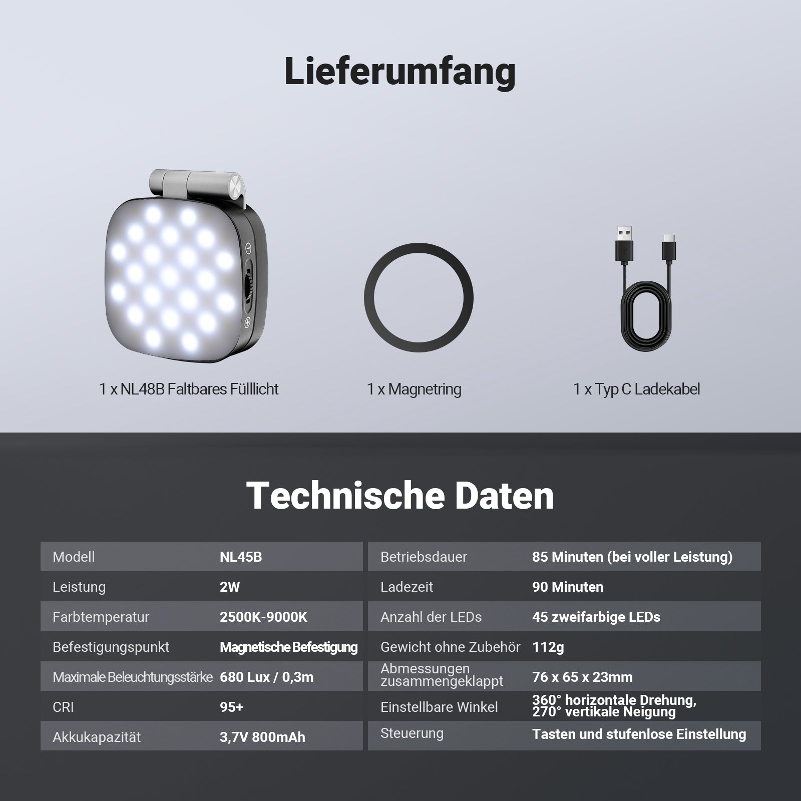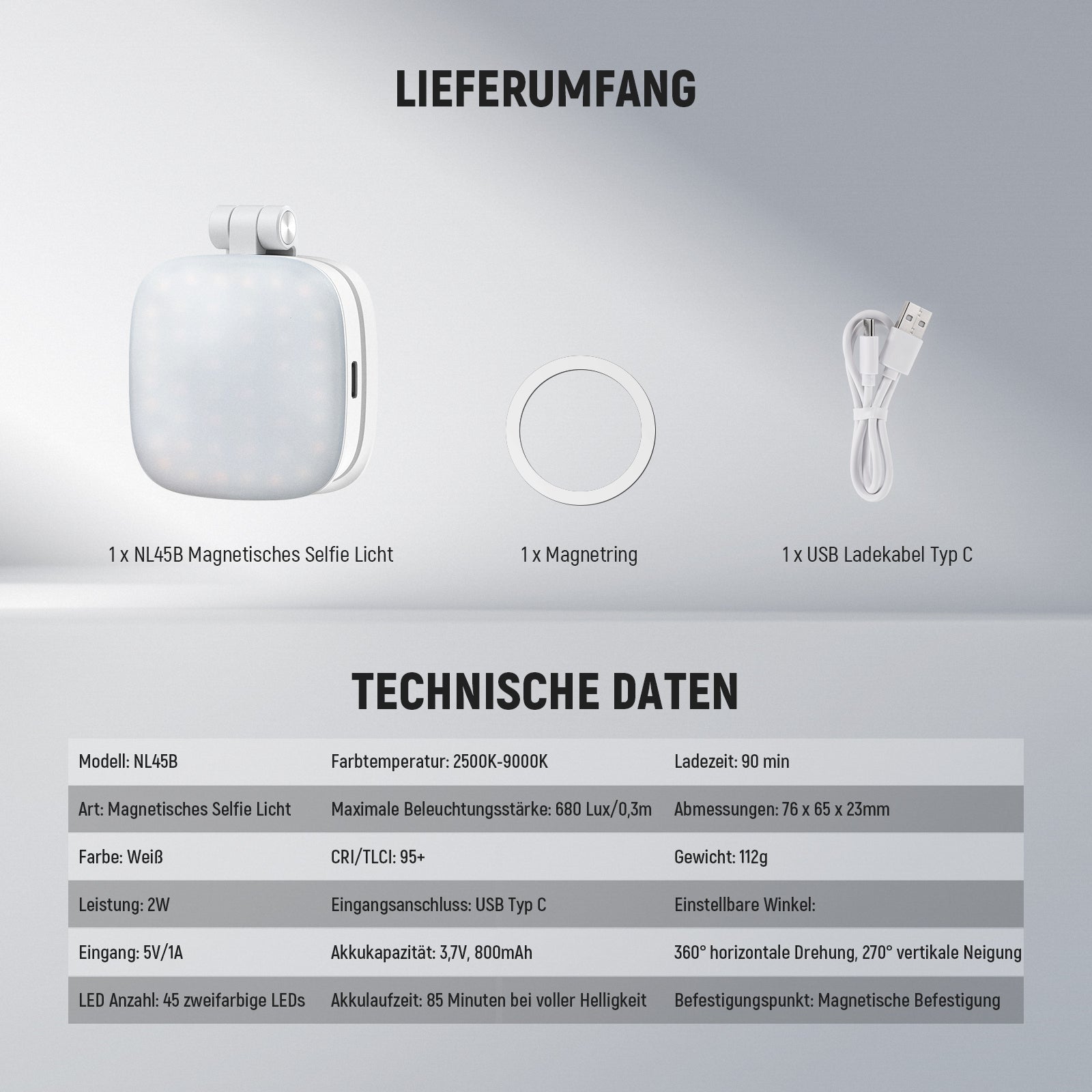 NEEWER BASICS NL45B Magnetisches Selfie Licht
