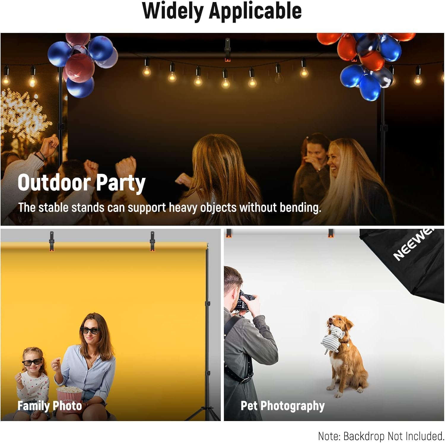 - Sichere Befestigung: Halten Sie Ihr Backdrop mit den starken Federklammern am Backdrop Ständer fest
