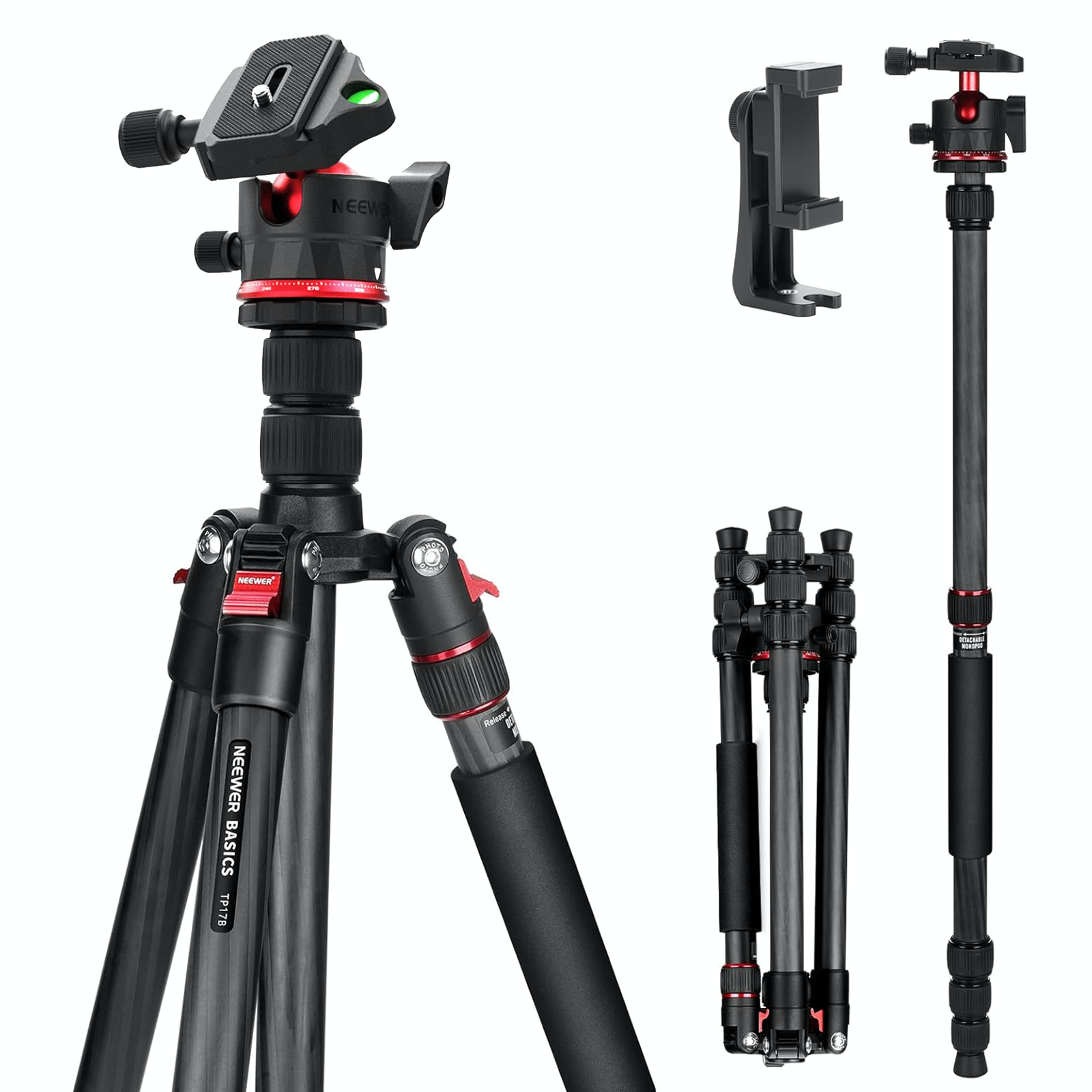 NEEWER BASICS TP17B 64"/162cm Carbonfaser Reisestativ Einbeinstativ