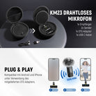 - Kabelloses Microphone System- KM23 kleine Lavalier Mikrofon System umfasst einen Empfänger (RX), zwei Sender (TX), einen OTG Adapter für iOS Geräte, kompatibel mit iPhone, ein USB C Adapterkabel für Laptops. Kompakt und tragbar für Vlogging Videoaufnahmen, Streaming und Podcasts. Jeder TX verfügt über eine omnidirektionale Richtcharakteristik und Geräuschunterdrückung für einen gleichmäßigen, klaren Klang und ist leicht. Bei voller Ladung hält der TX 8 Stunden lang für längere Aufnahmesitzungen