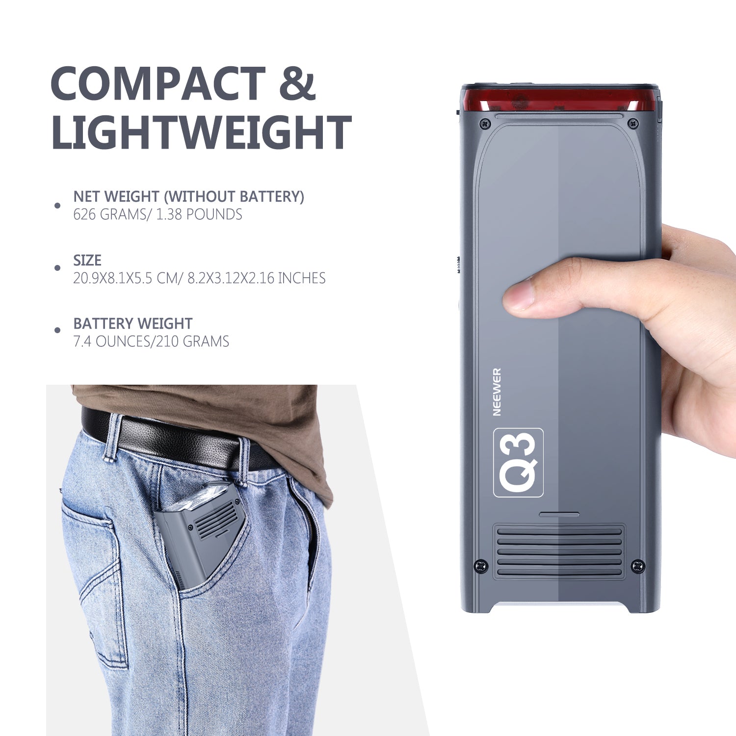 - Tragbarer Blitz: NEEWER Q3 bietet die Möglichkeit eines tragbaren Blitzes, was bedeutet, dass Sie den Blitz Speedlite wirklich in der Tasche haben können. Die Blitzleistung beträgt bis zu 200W. Es ist sehr leicht und leicht zu tragen für diejenigen, die den Blitz überall hin mitnehmen und fotografieren müssen. Deshalb heißt der Q3 "Taschen Blitz"