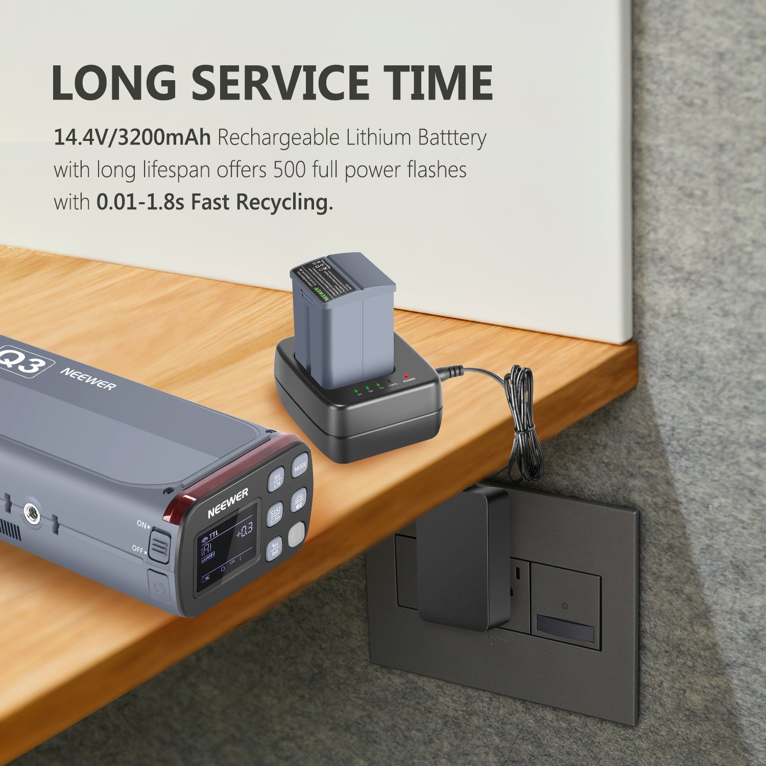 - Professionelle Stromversorgung: Der NEEWER Q3 verwendet einen Akku einer internationalen Marke, der eine Powerbox mit großer Kapazität (14,4V/3200 mAh) und sogar einen Rückruf von 0,01 bis 1,8s unterstützt. Daher kann das Blitz-Speedlite 500 Blitze oder mehr voll beleuchten. Unterstützt eine Hochgeschwindigkeitssynchronisation von 1/8000s, einen Hochgeschwindigkeits-Blitz und einen Hochgeschwindigkeits-Synchronisations Auslöser für die Fernbedienung