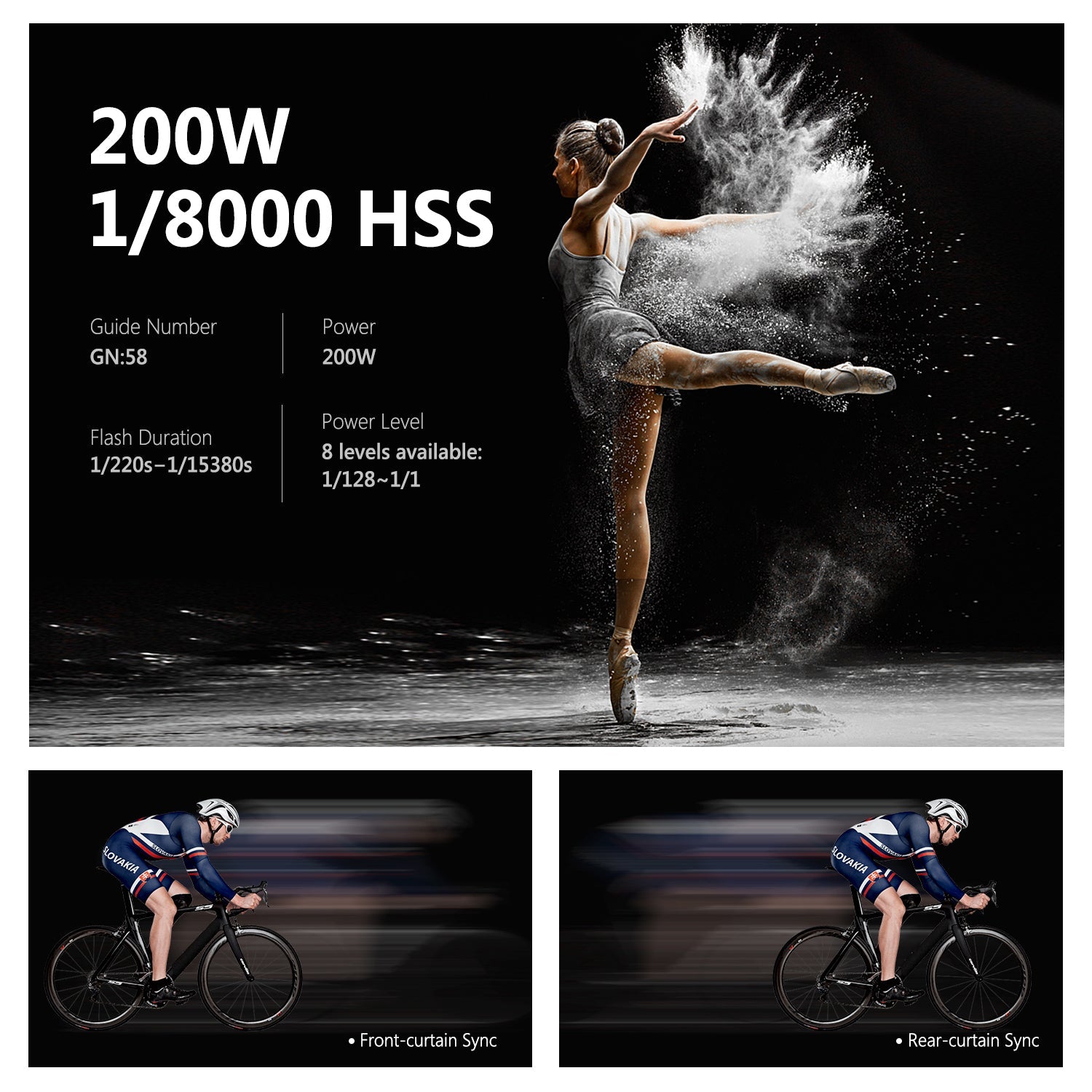 - Synchronisationsmodus: High Speed Sync (bis zu 1/8000 Sekunden), erste