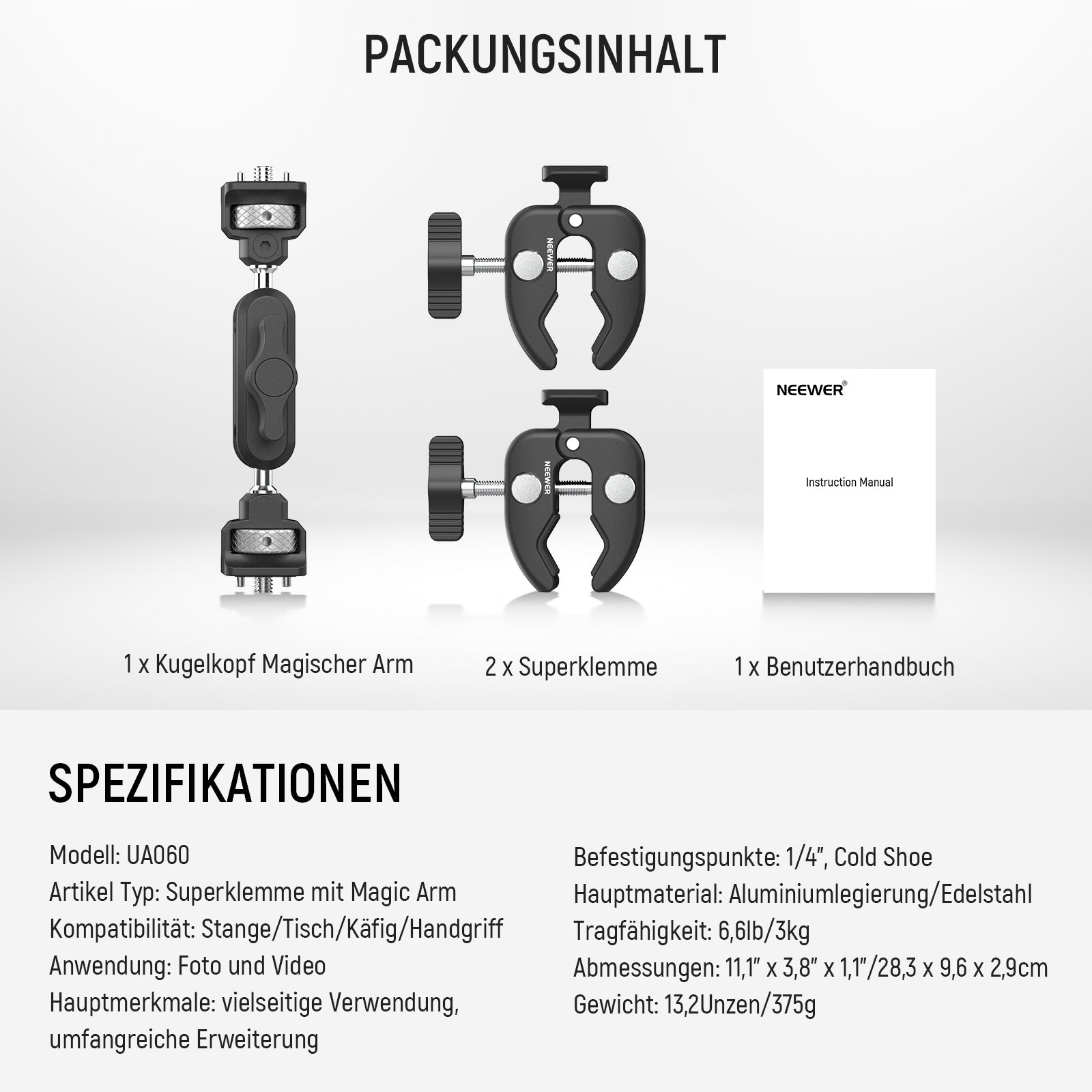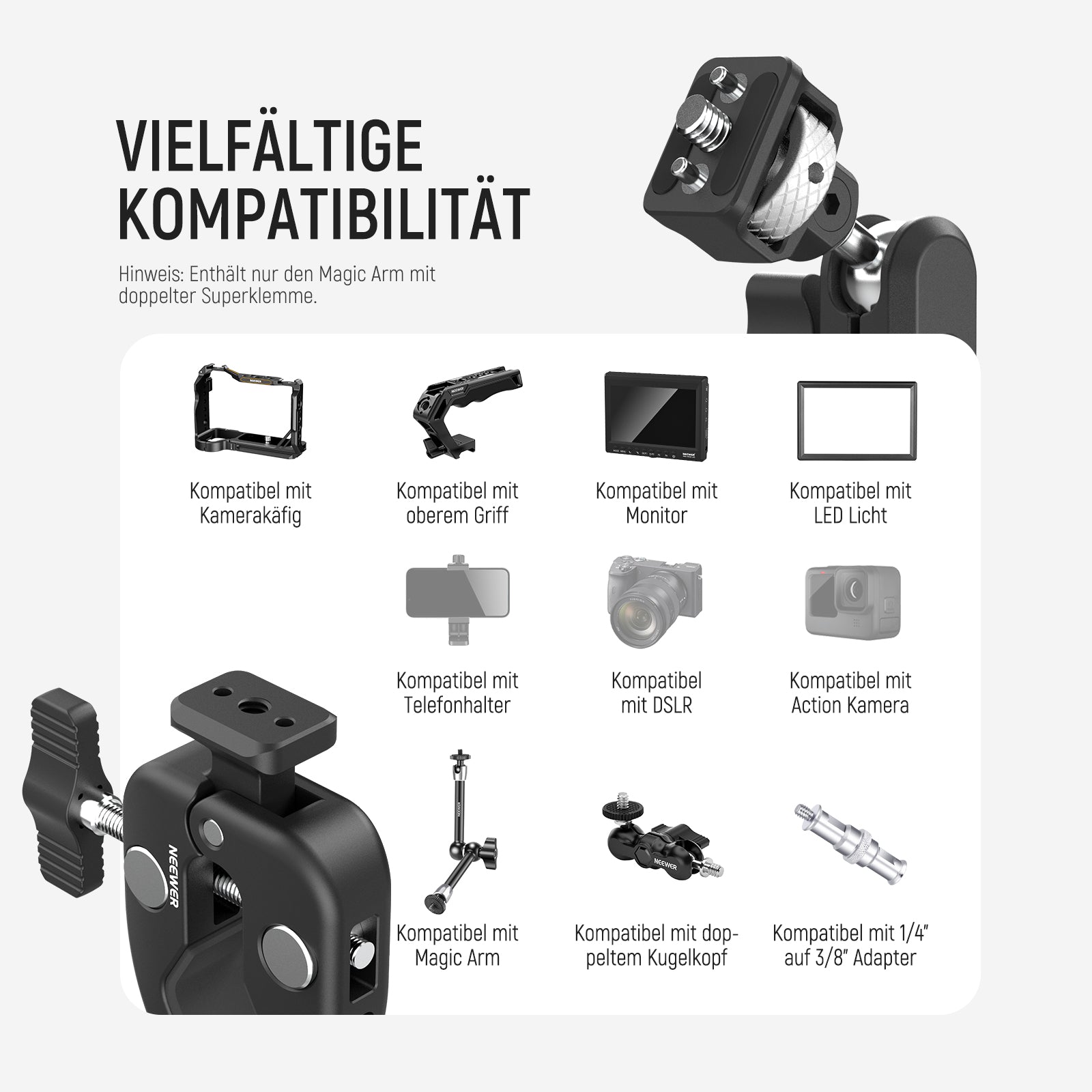 NEEWER UA060 Doppel-Superclamp mit Magic Arm & NATO Schnittstelle