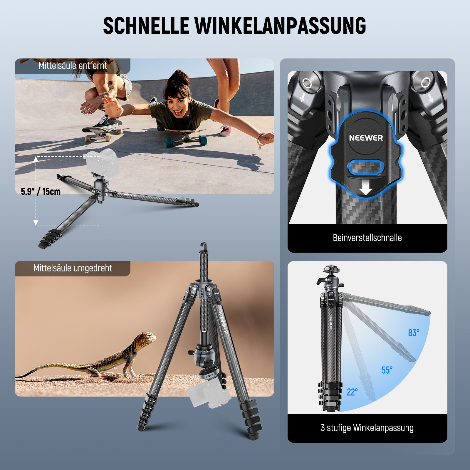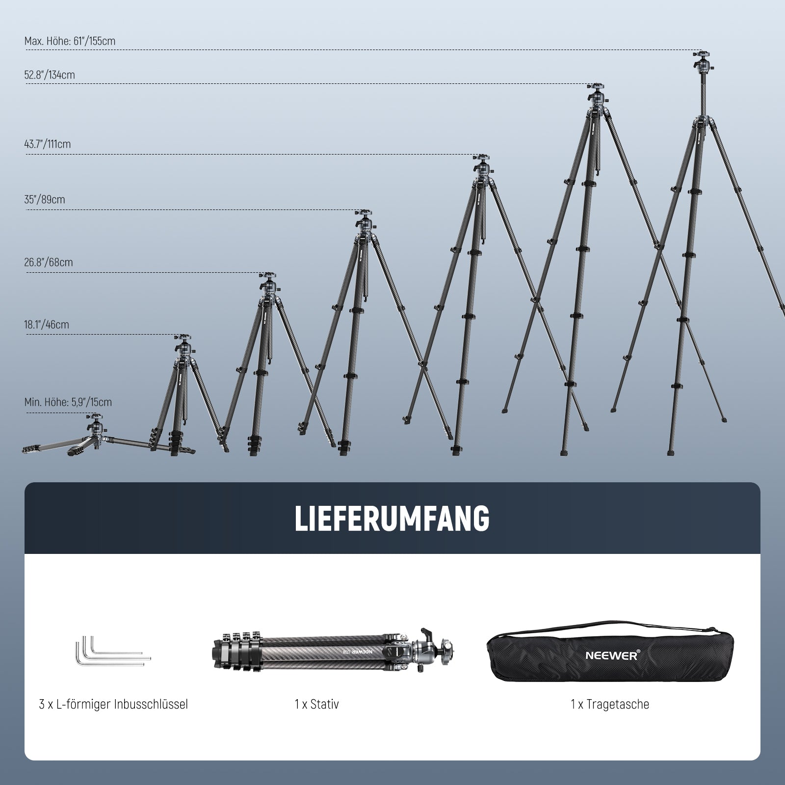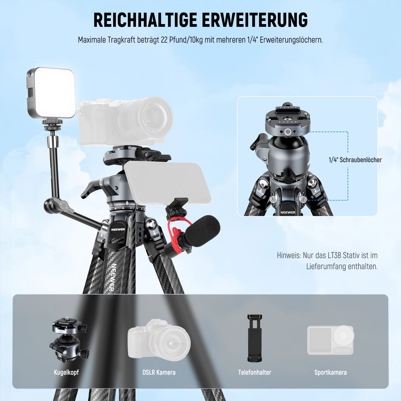 NEEWER LITETRIP LT38 155cm Carbon Reisestativ mit 360° Kugelkopf