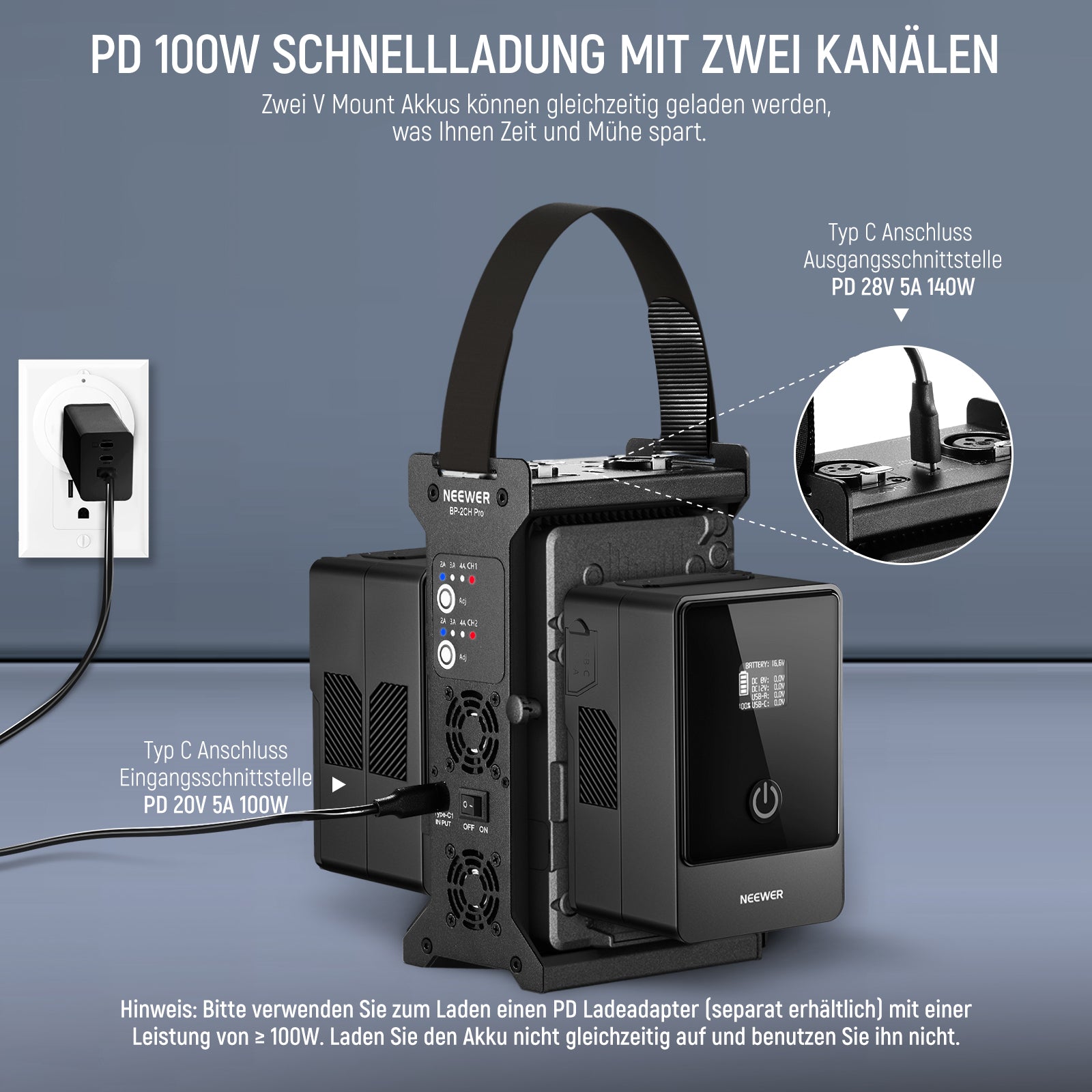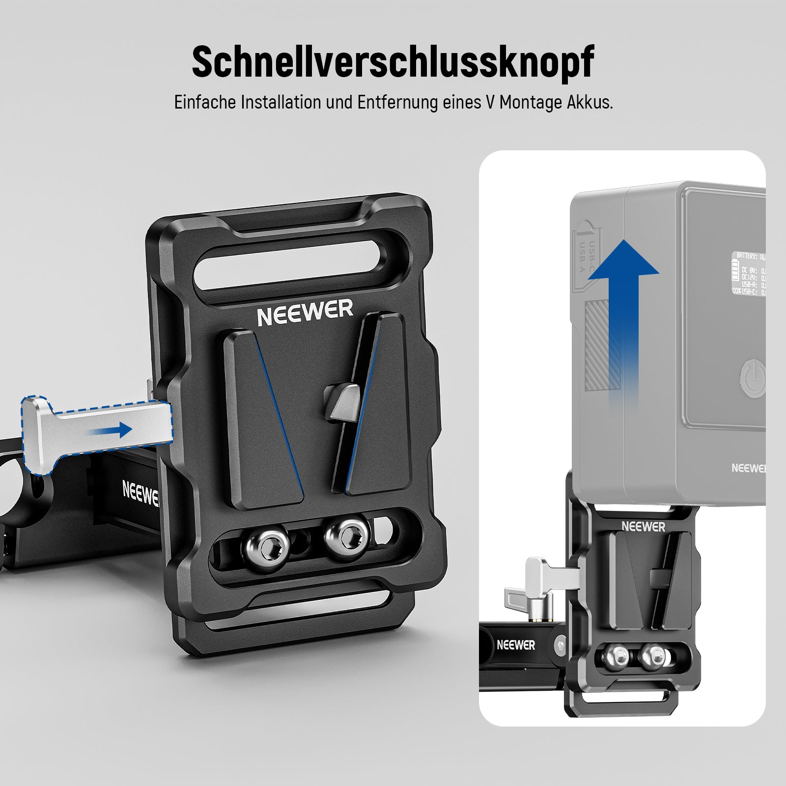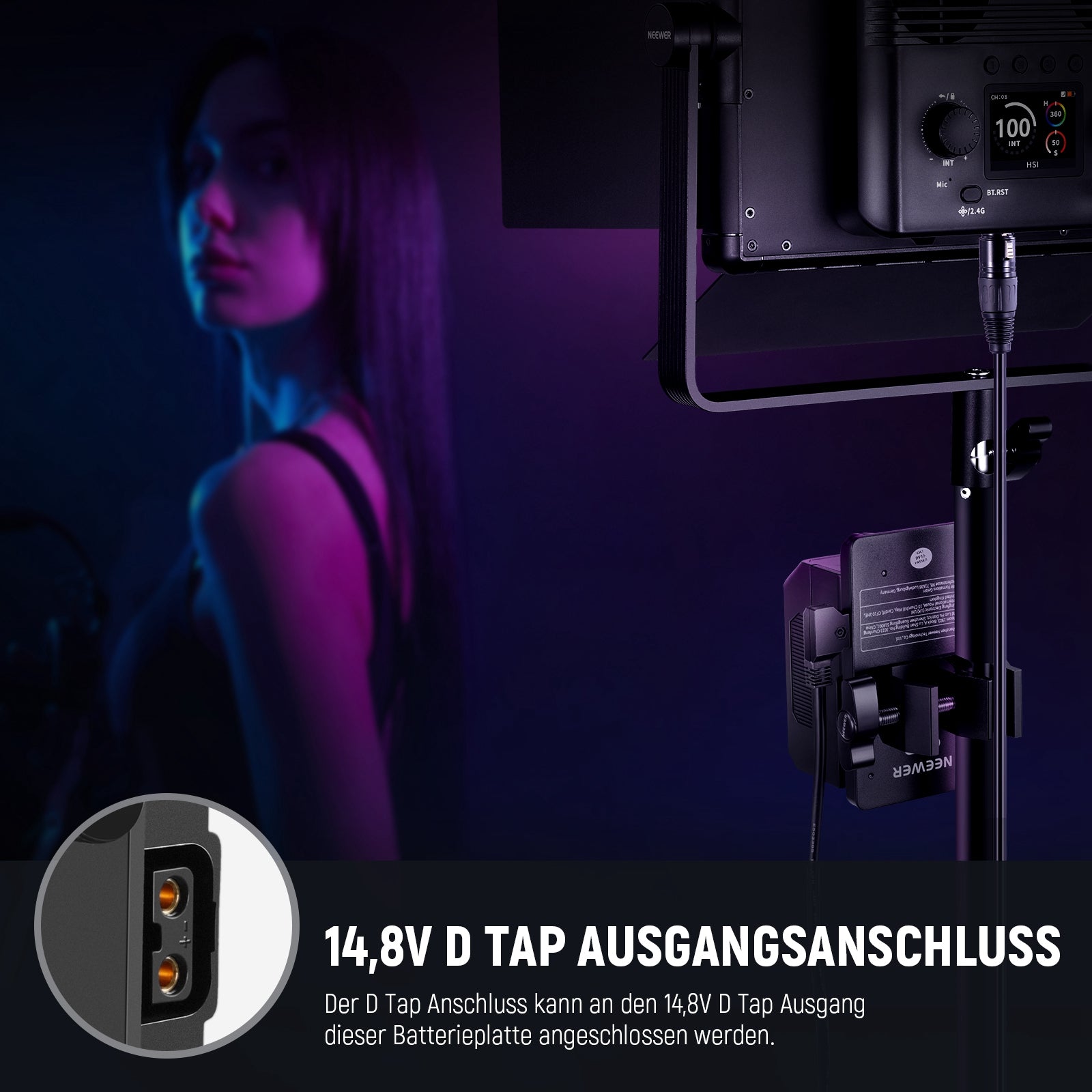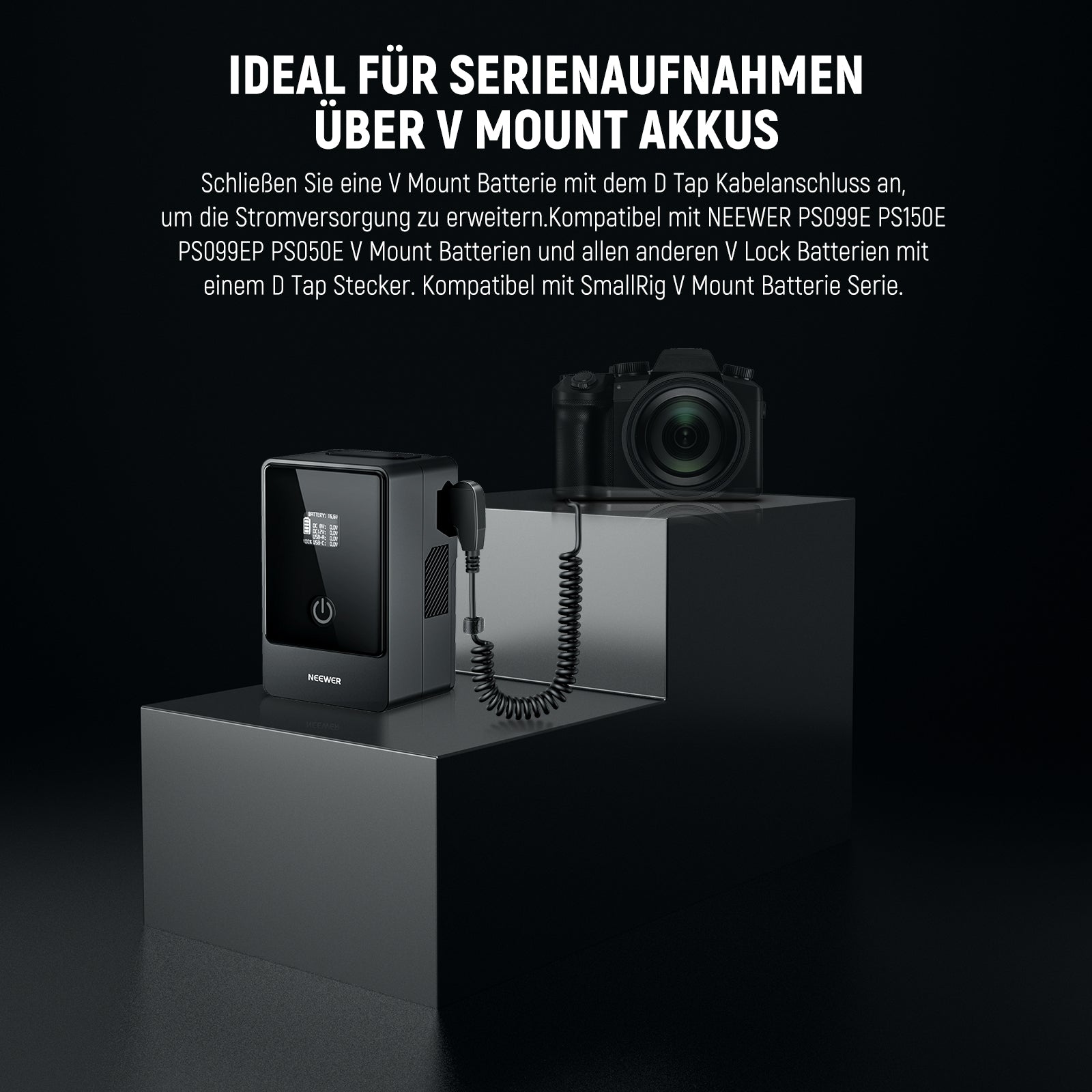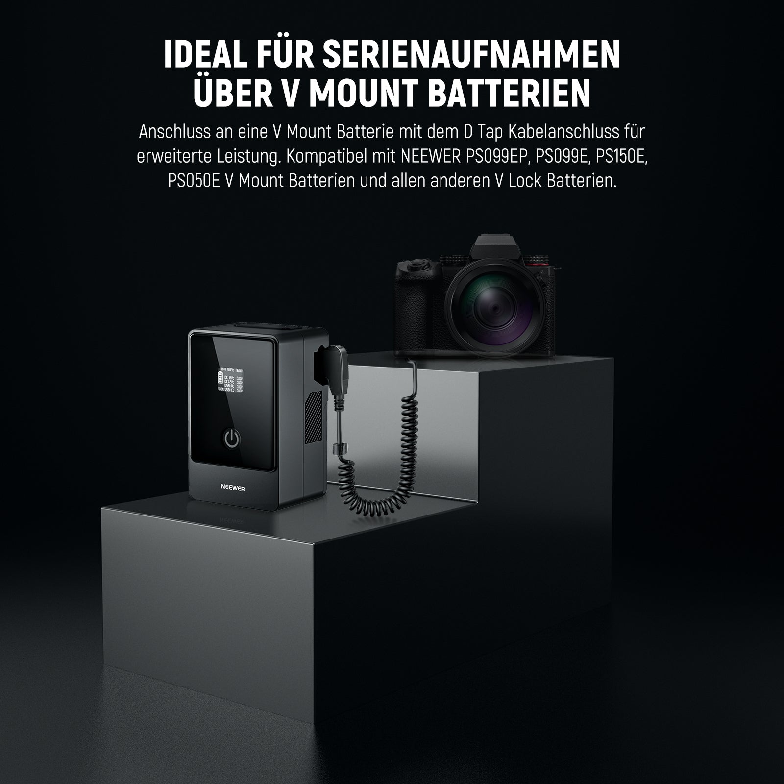 NEEWER bietet Ihnen V-Mount-Akkus an. Diese kompakten, aber leistungsstarken V-Mount-Akkus eignen sich hervorragend für kontinuierliche Videobeleuchtung und Fotografie. Die meisten V-Mount-Akkus sind für den Lufttransport geeignet und fügen Ihrem Gepäck kein zusätzliches Gewicht hinzu. Darüber hinaus bietet NEEWER auch V-Mount-Akkuladeplatten und Ladegeräte an.
