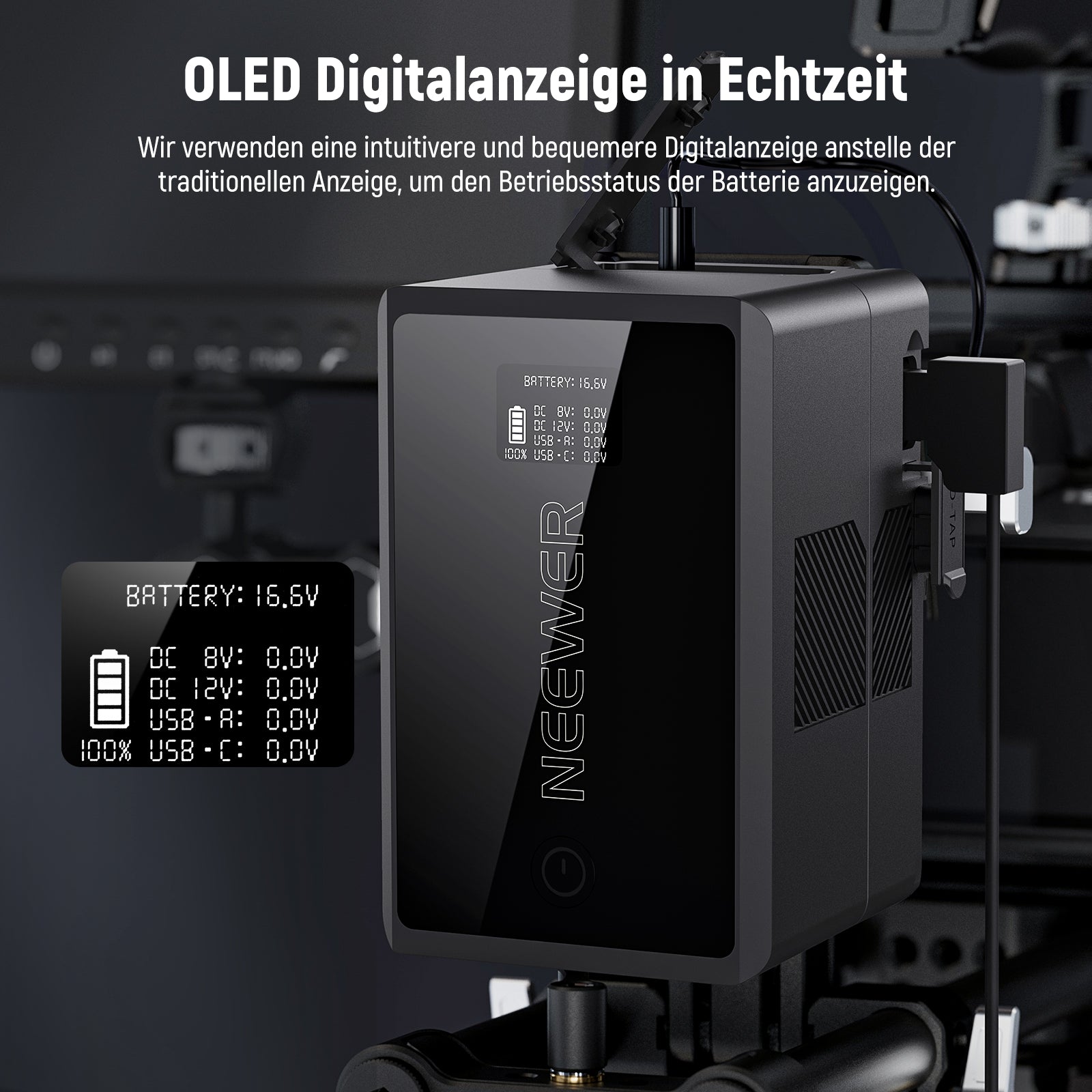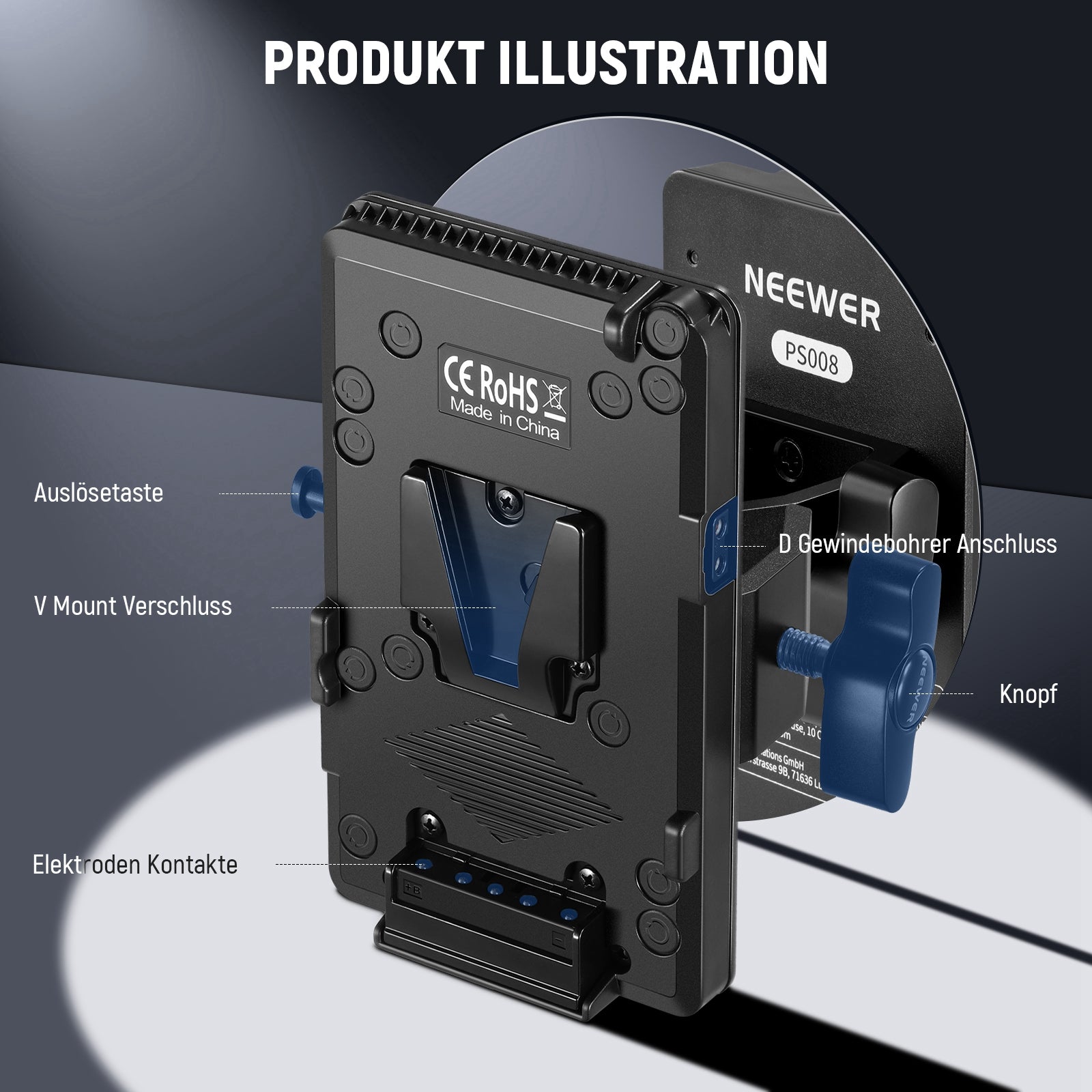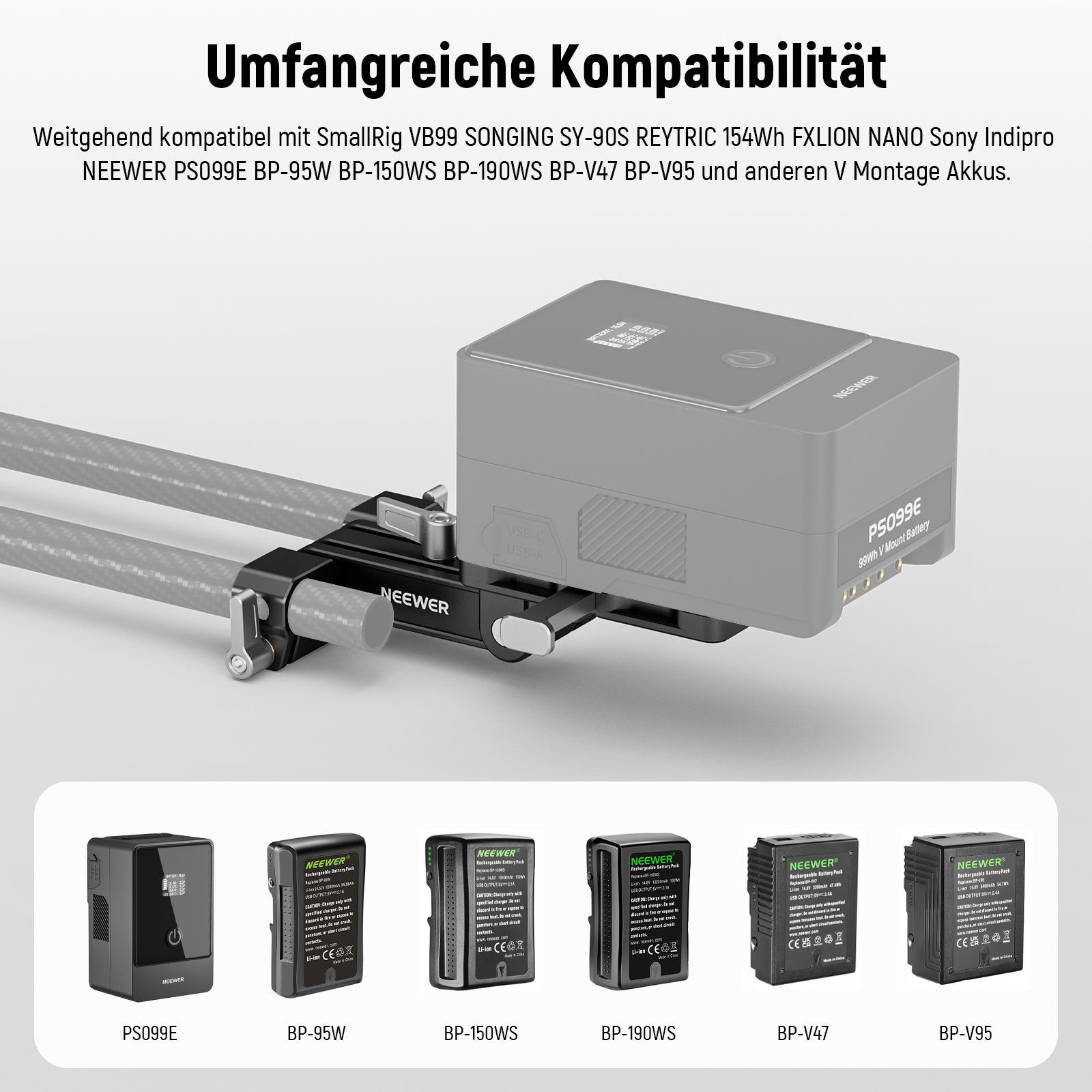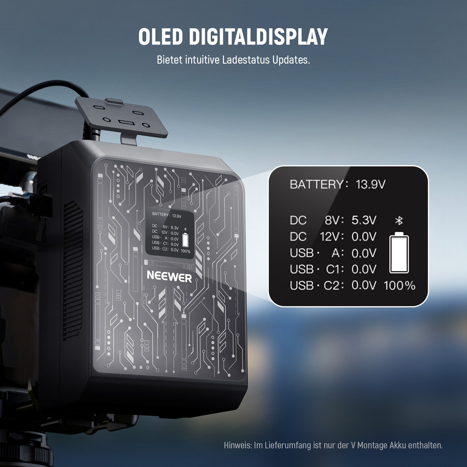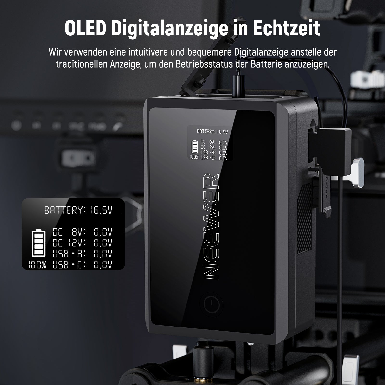 NEEWER bietet Ihnen V-Mount-Akkus an. Diese kompakten, aber leistungsstarken V-Mount-Akkus eignen sich hervorragend für kontinuierliche Videobeleuchtung und Fotografie. Die meisten V-Mount-Akkus sind für den Lufttransport geeignet und fügen Ihrem Gepäck kein zusätzliches Gewicht hinzu. Darüber hinaus bietet NEEWER auch V-Mount-Akkuladeplatten und Ladegeräte an.