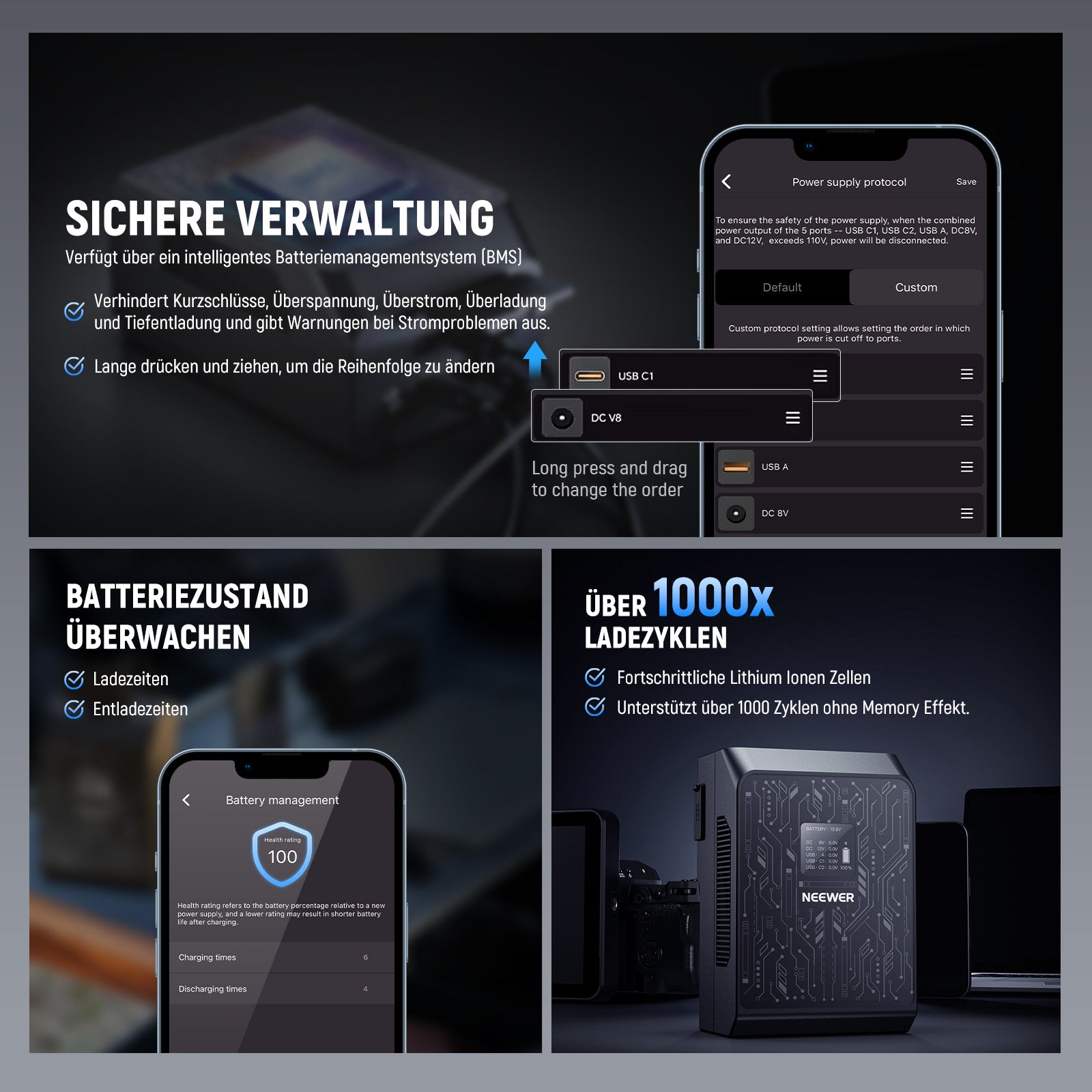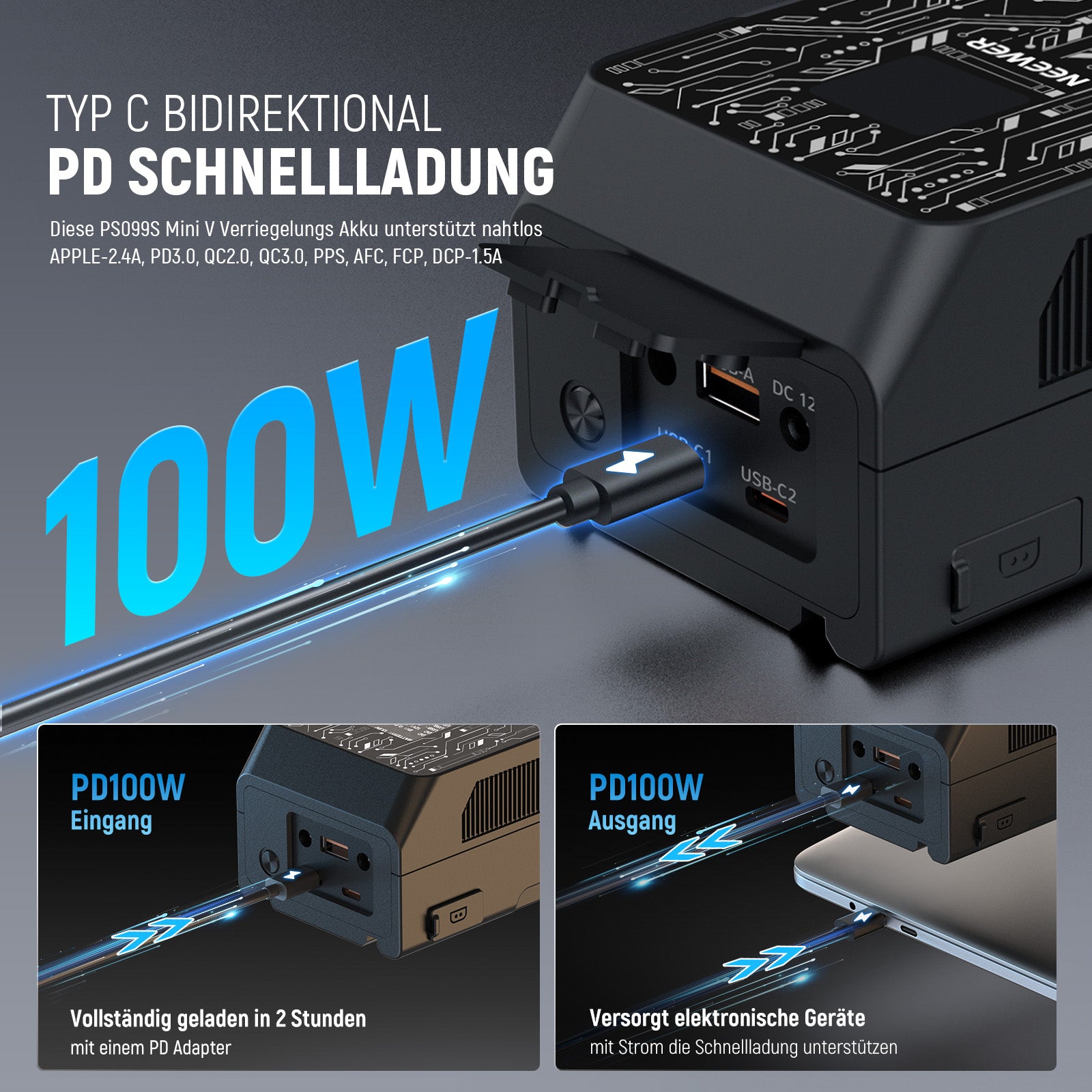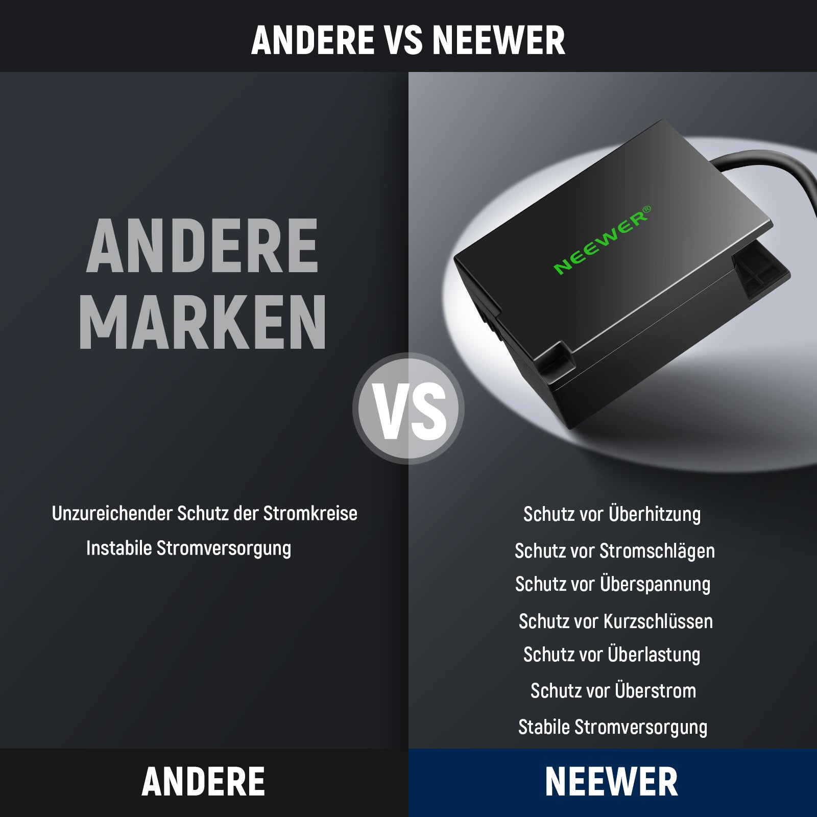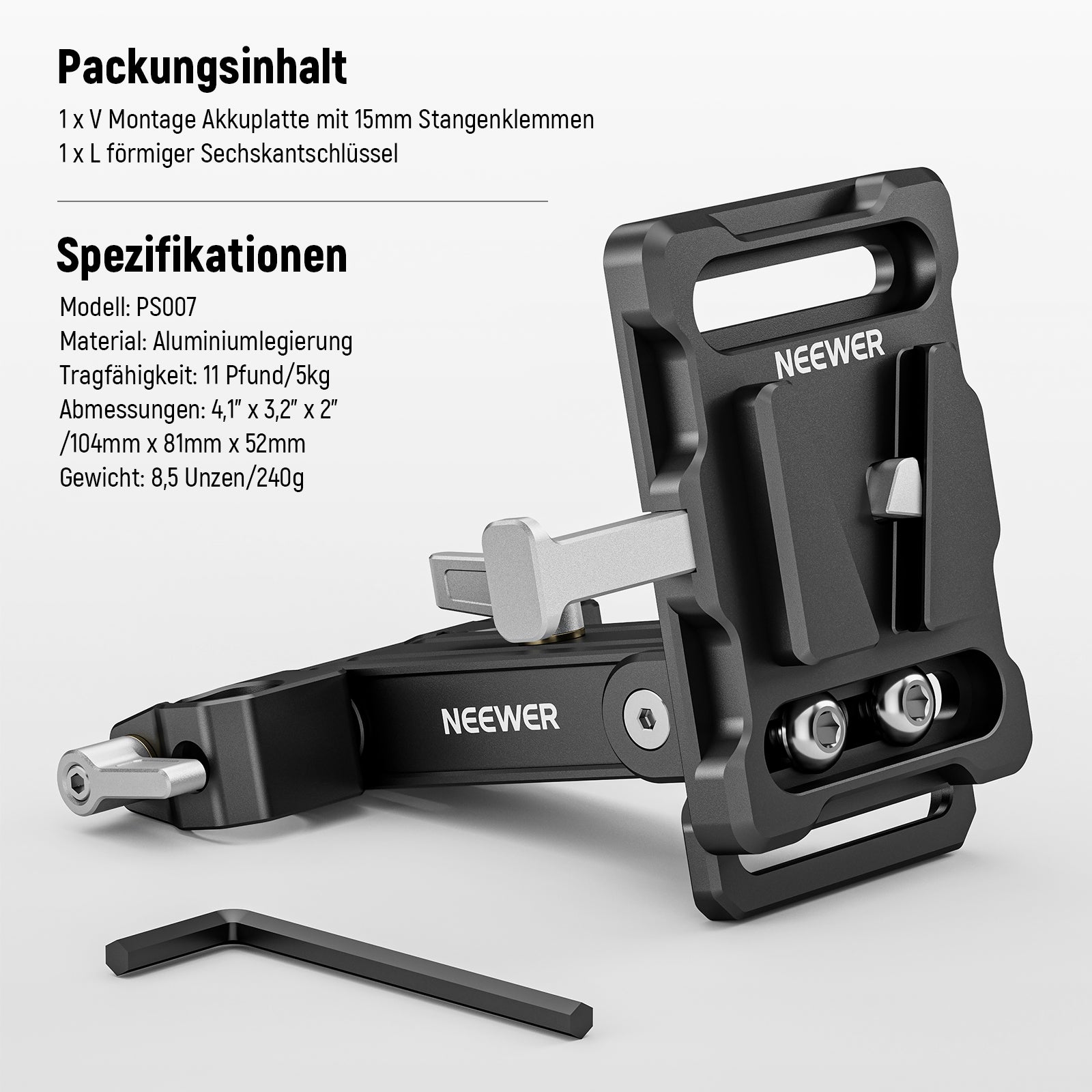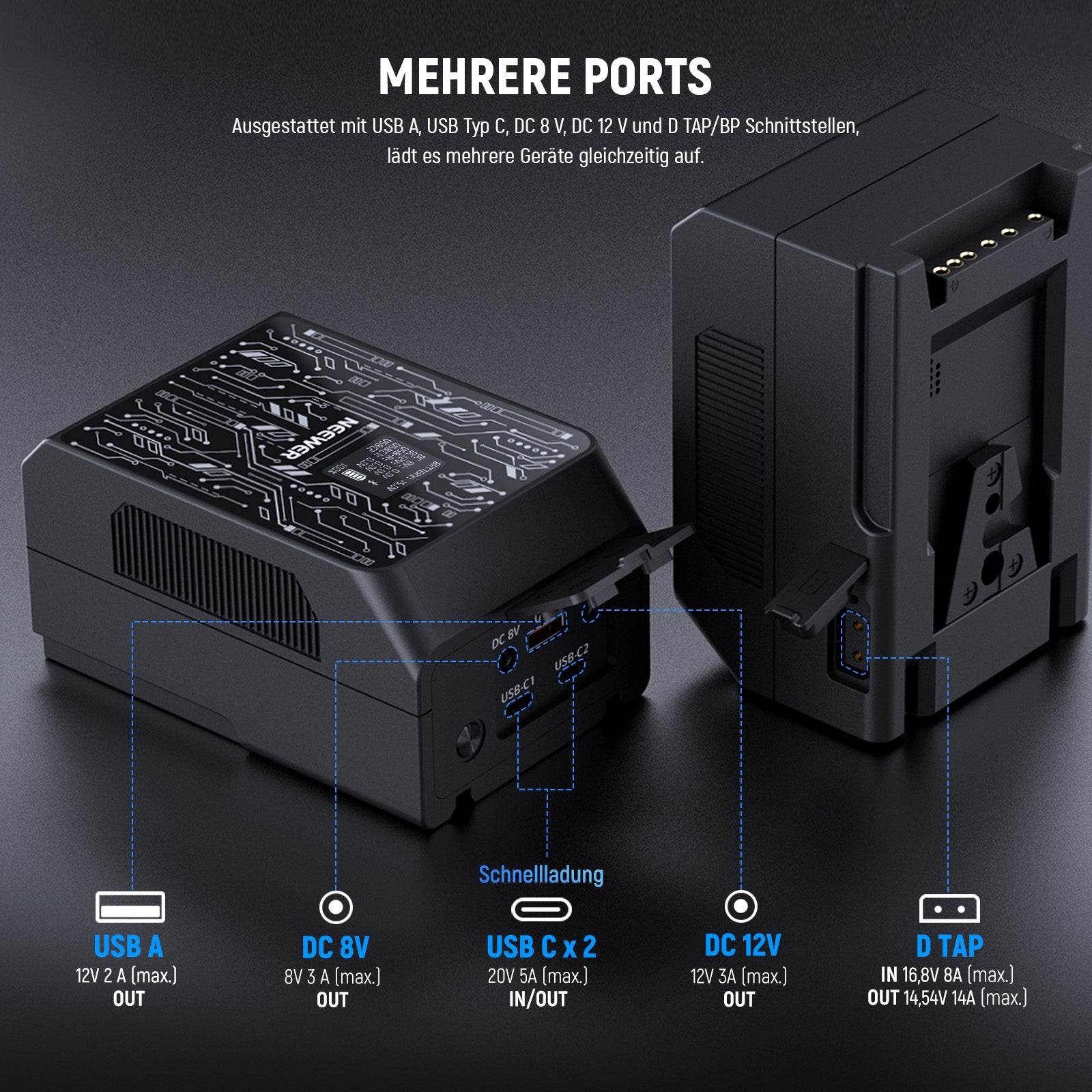 NEEWER bietet Ihnen V-Mount-Akkus an. Diese kompakten, aber leistungsstarken V-Mount-Akkus eignen sich hervorragend für kontinuierliche Videobeleuchtung und Fotografie. Die meisten V-Mount-Akkus sind für den Lufttransport geeignet und fügen Ihrem Gepäck kein zusätzliches Gewicht hinzu. Darüber hinaus bietet NEEWER auch V-Mount-Akkuladeplatten und Ladegeräte an.