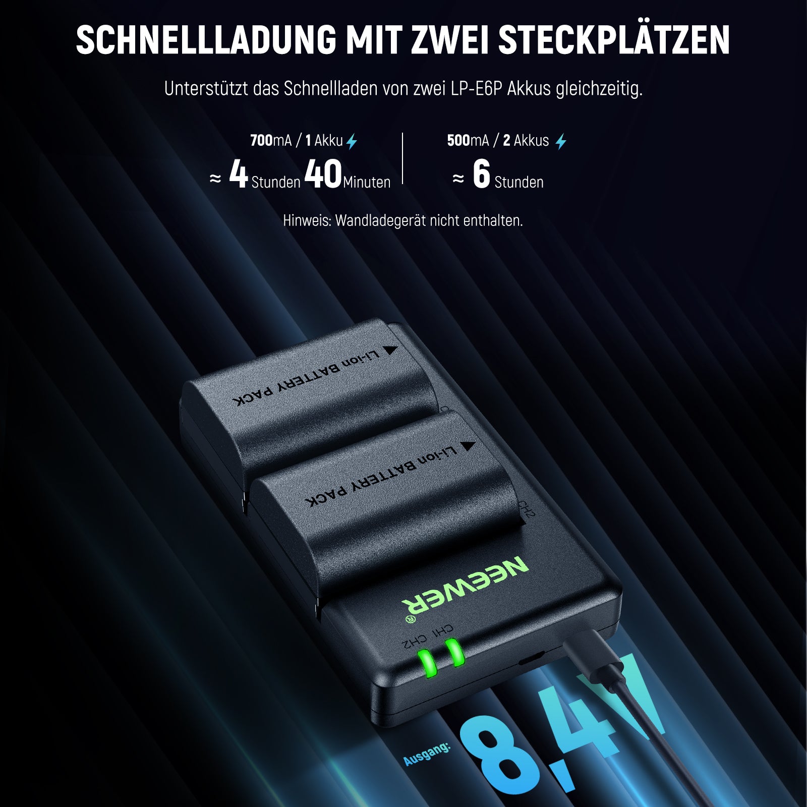 NEEWER 2er Pack 2200mAh LP-E6P/LP-E6NH Ersatzakku & USB Doppel Ladegerät