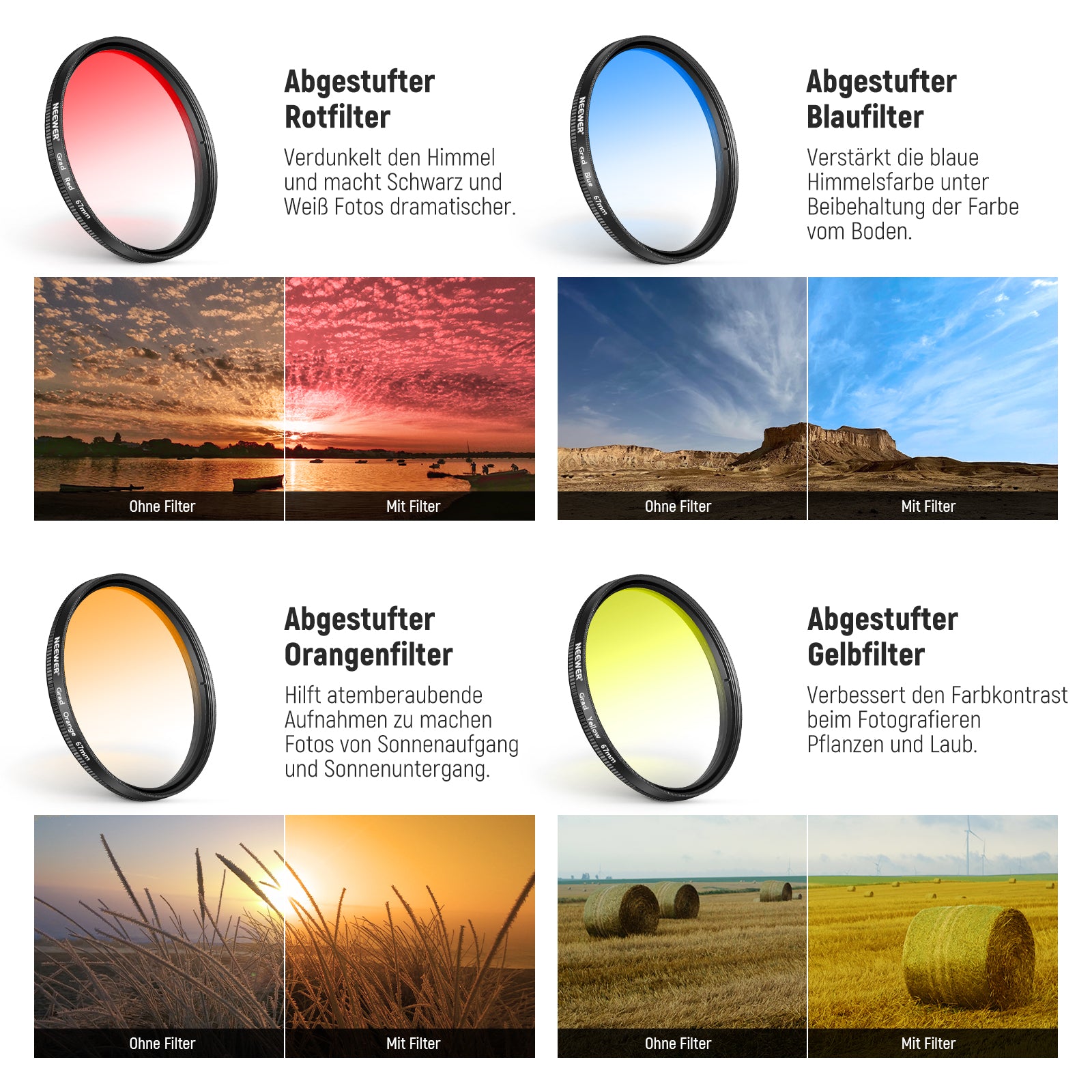 Mit Teleobjektiven, Makroobjektiven, UV-Filtern, Farbfiltern und mehr erfüllen wir Ihre kreativen Anforderungen in verschiedenen Szenarien!
