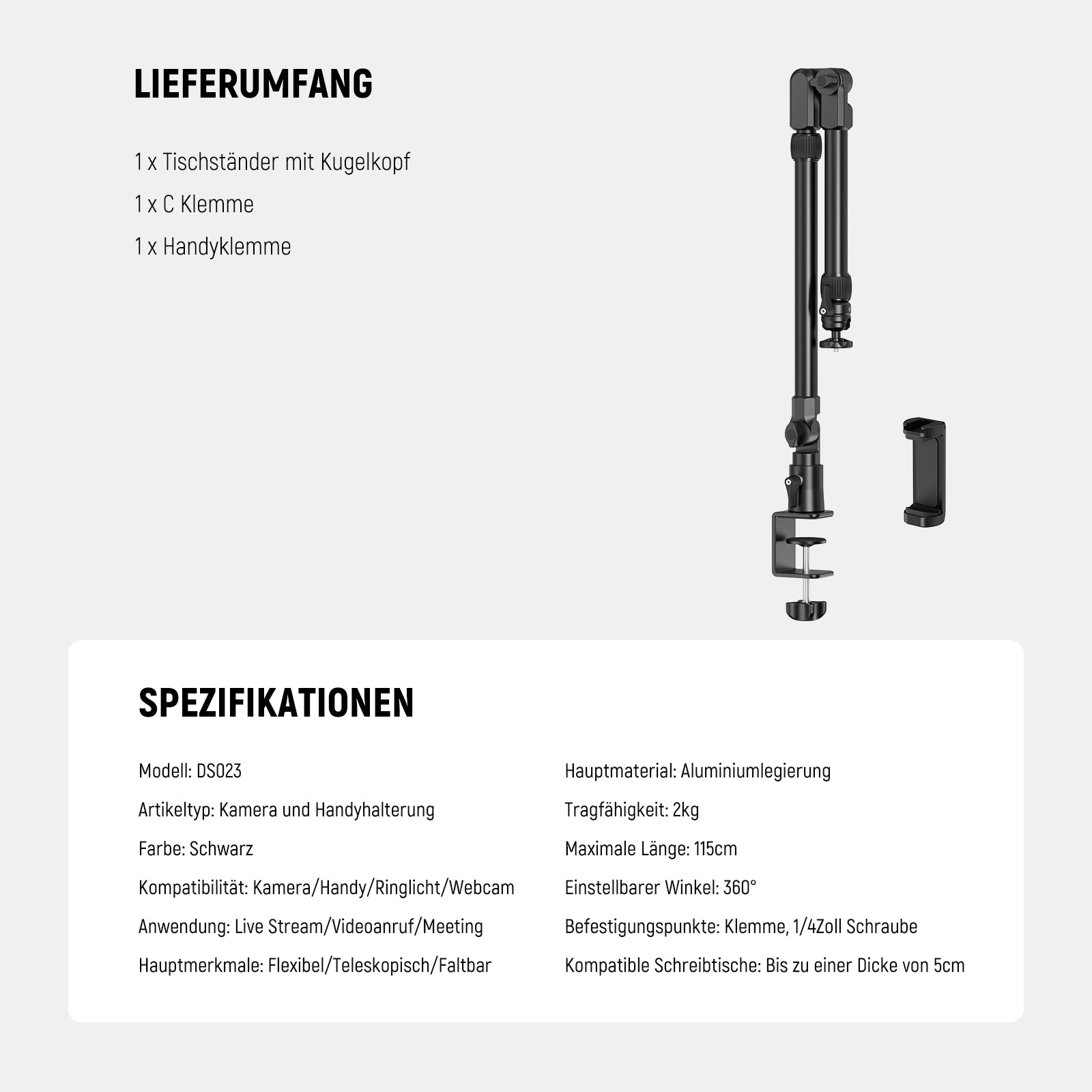 4 bewertungenNEEWER DS001 Tisch Überkopf Kamerahalterungsarm