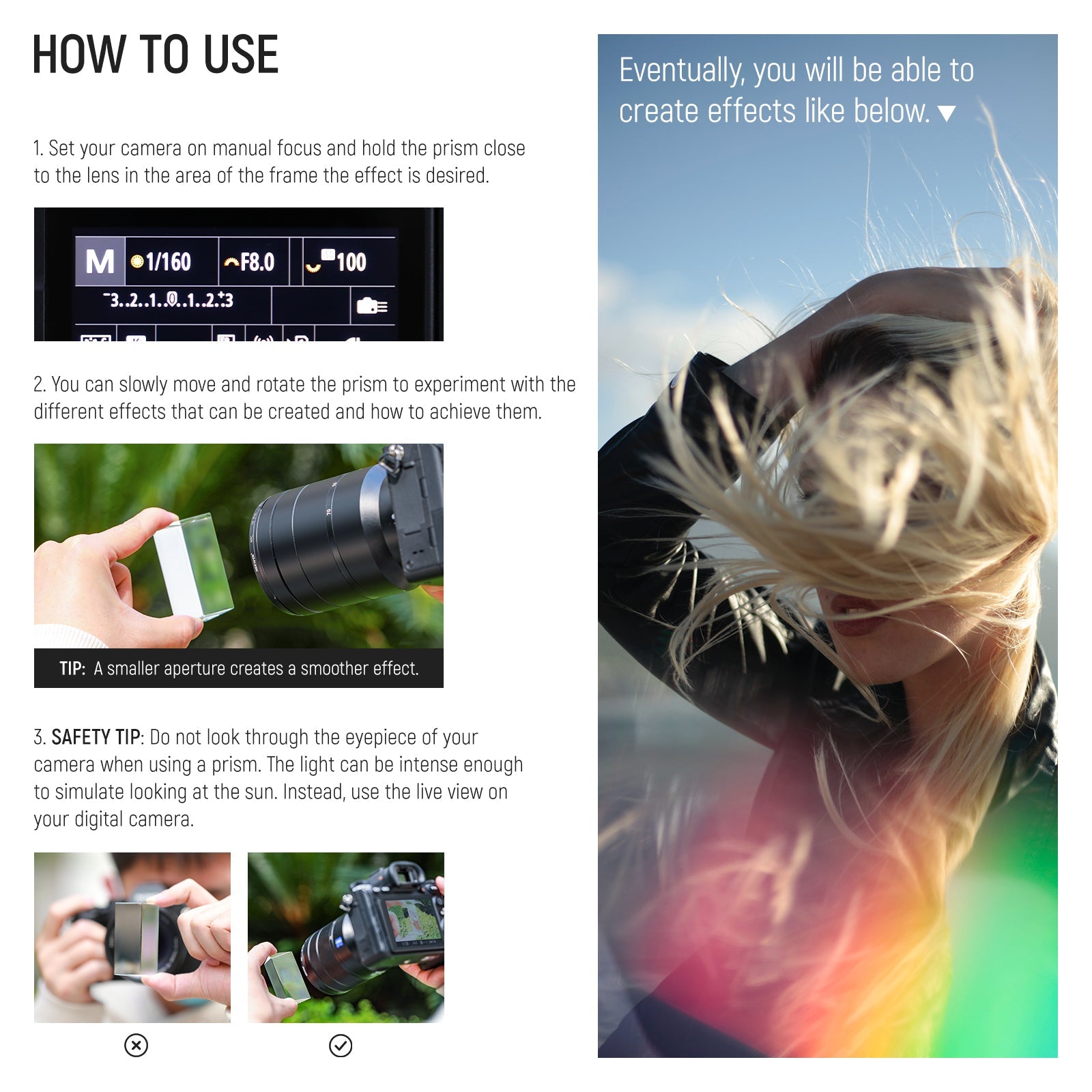 - 【Breite Anwendungsspektrum】 Entwickelt, um Ihren Fotoaufnahmen kreative Effekte hinzuzufügen, einschließlich Regenbögen, Objektiveffekt und Farbstich. Perfekt für Porträts, Albumcover, Hochzeitsfotos, Landschaften, wissenschaftliche Projekte, Lichtanalysen und mehr