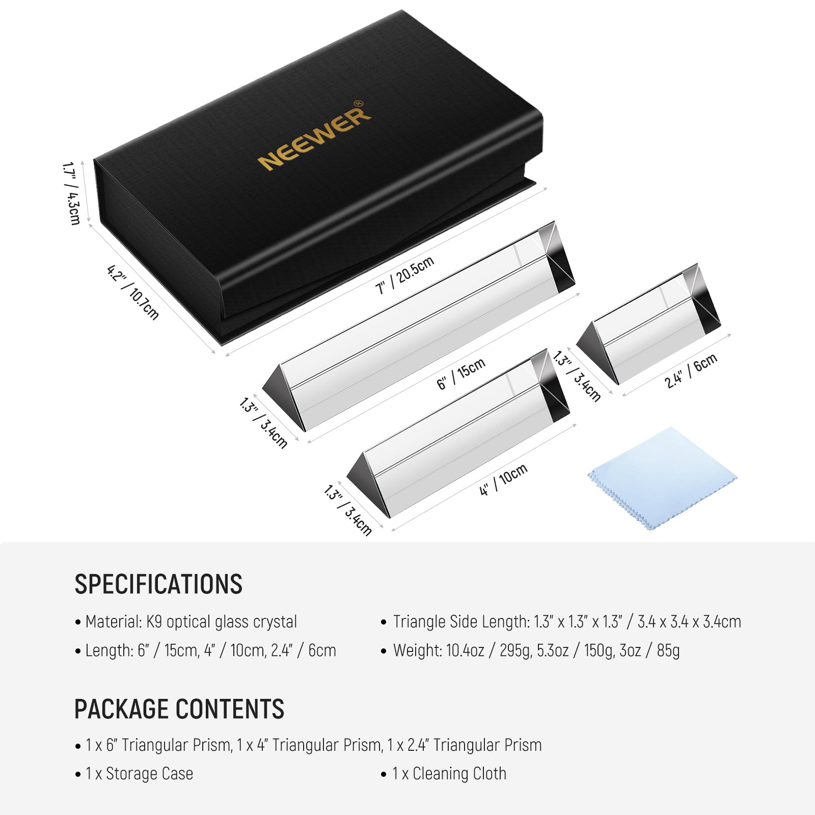 - 【Lieferumfang】1 x 6"/15cm Dreiecksprisma, 1 x 4"/10cm Dreiecksprisma, 1 x 2,4"/6cm Dreiecksprisma, 1 x Aufbewahrungskoffer, 1 x Reinigungstuch
