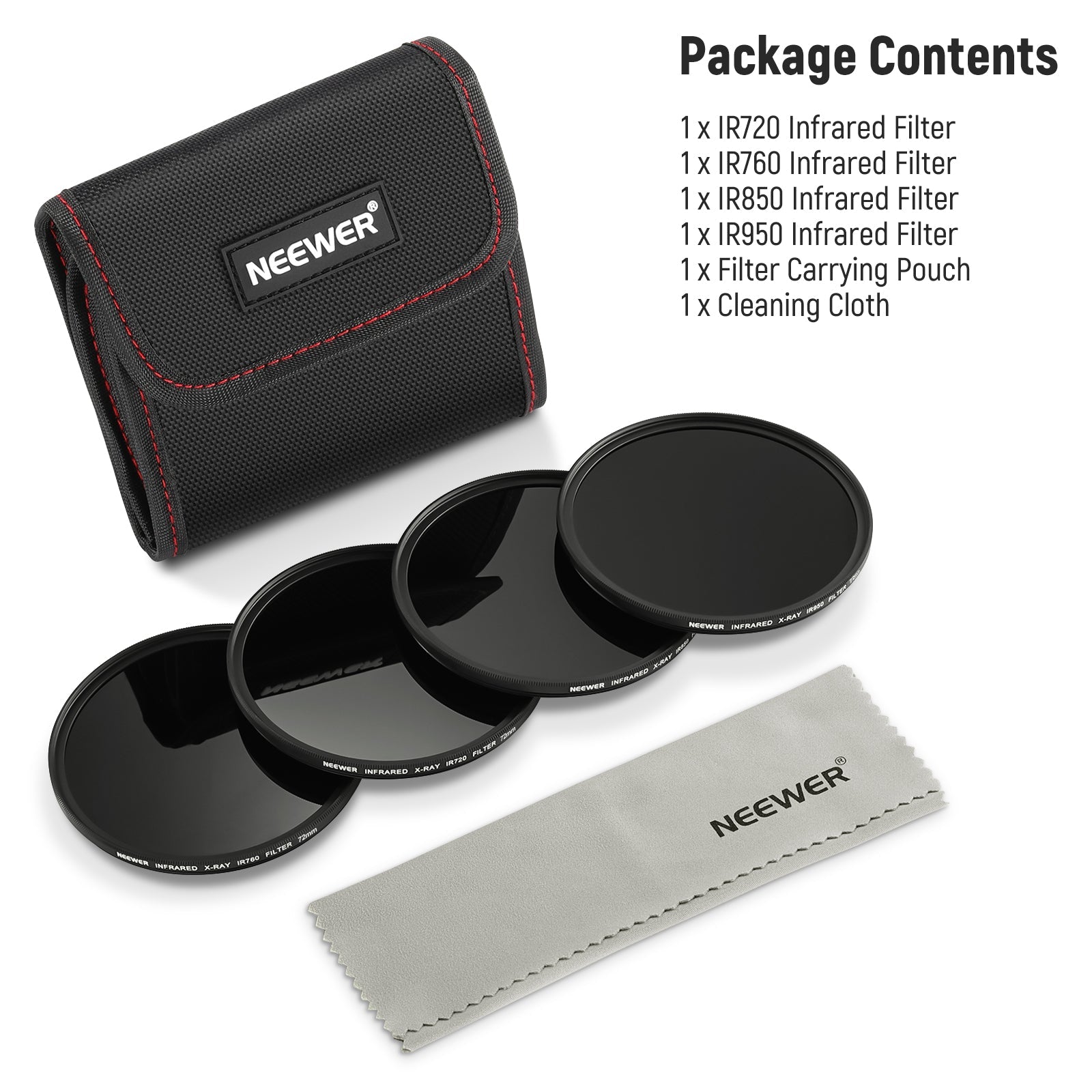 - 【Infrarotfilter Set】 Enthält 4 Infrarotfilter (IR720/IR760/IR850/IR950), ideal für Infrarotfotografie, Fotografie bei schwachem Licht, Langzeitbelichtung, Schwarzweißfotografie und mehr