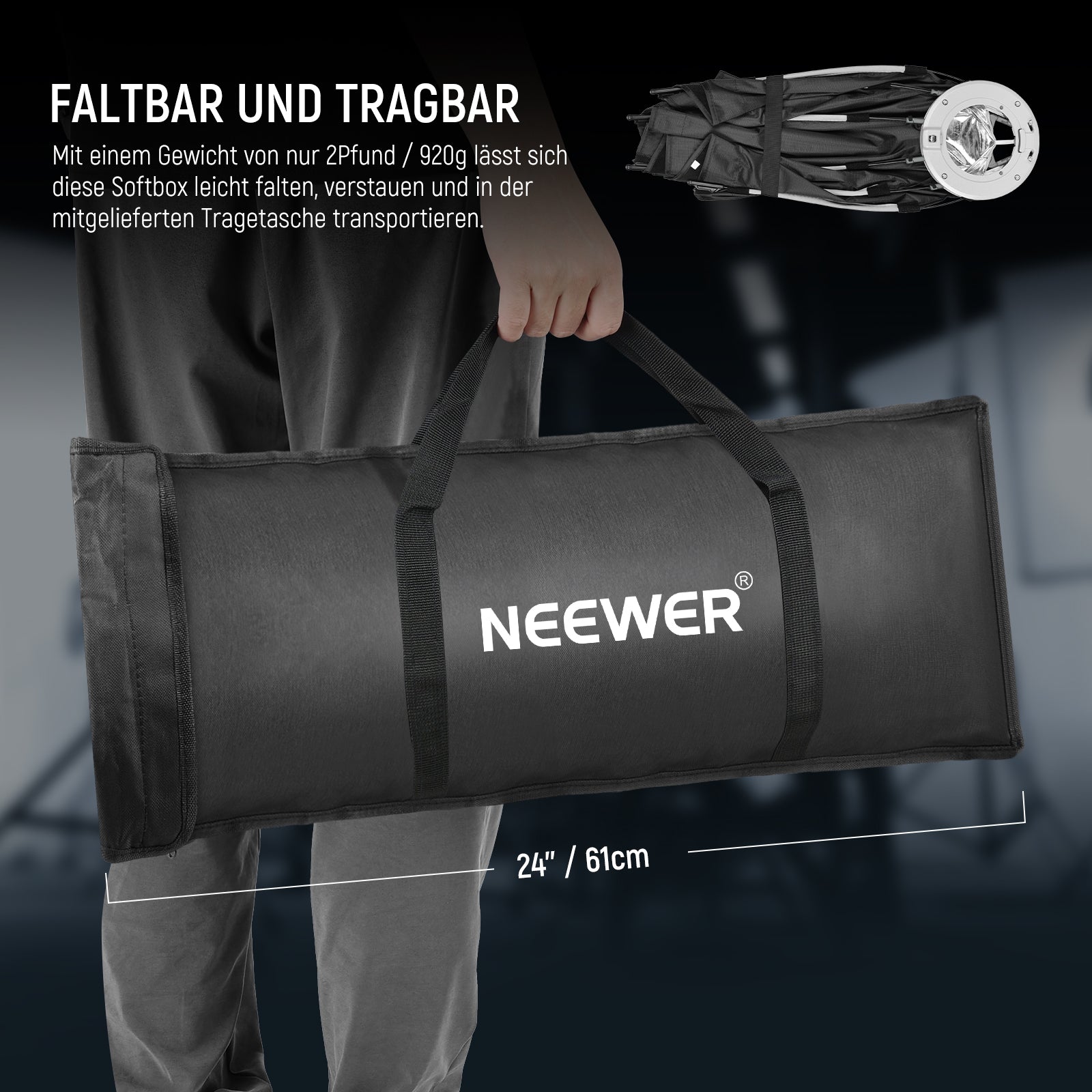 Faltbar und tragbar- Mit einem Gewicht von nur 2,4Pfund/1108g lässt sich diese Softbox leicht zusammenfalten, lagern und in der mitgelieferten Tragetasche transportieren. Tasche. Perfekt für Porträts, Produktfotografie, Beauty und Modeshootings, Hochzeiten, Firmenporträts und andere Fotografiestile