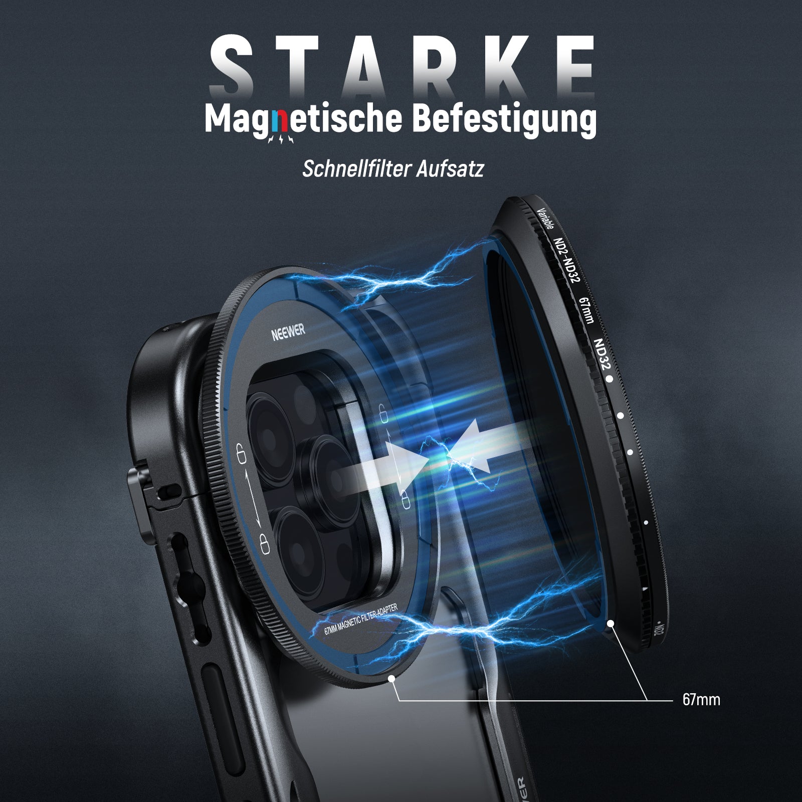 - Für 16 Pro / 16 Pro Max Käfig- Kompatibel mit iPhone 16 Pro Cage (PA073) und iPhone 16 Pro Max Cage (PA074), umfasst dieses magnetische Filterset einen 67mm Magnetfilter und eine magnetische Filteradapter Rückplatte, um Ihre mobile Fotografie, Videoaufnahmen, Vlogging, Live Streaming und Filmproduktion als unverzichtbare Ausrüstung für Content Creator und Influencer zu verbessern