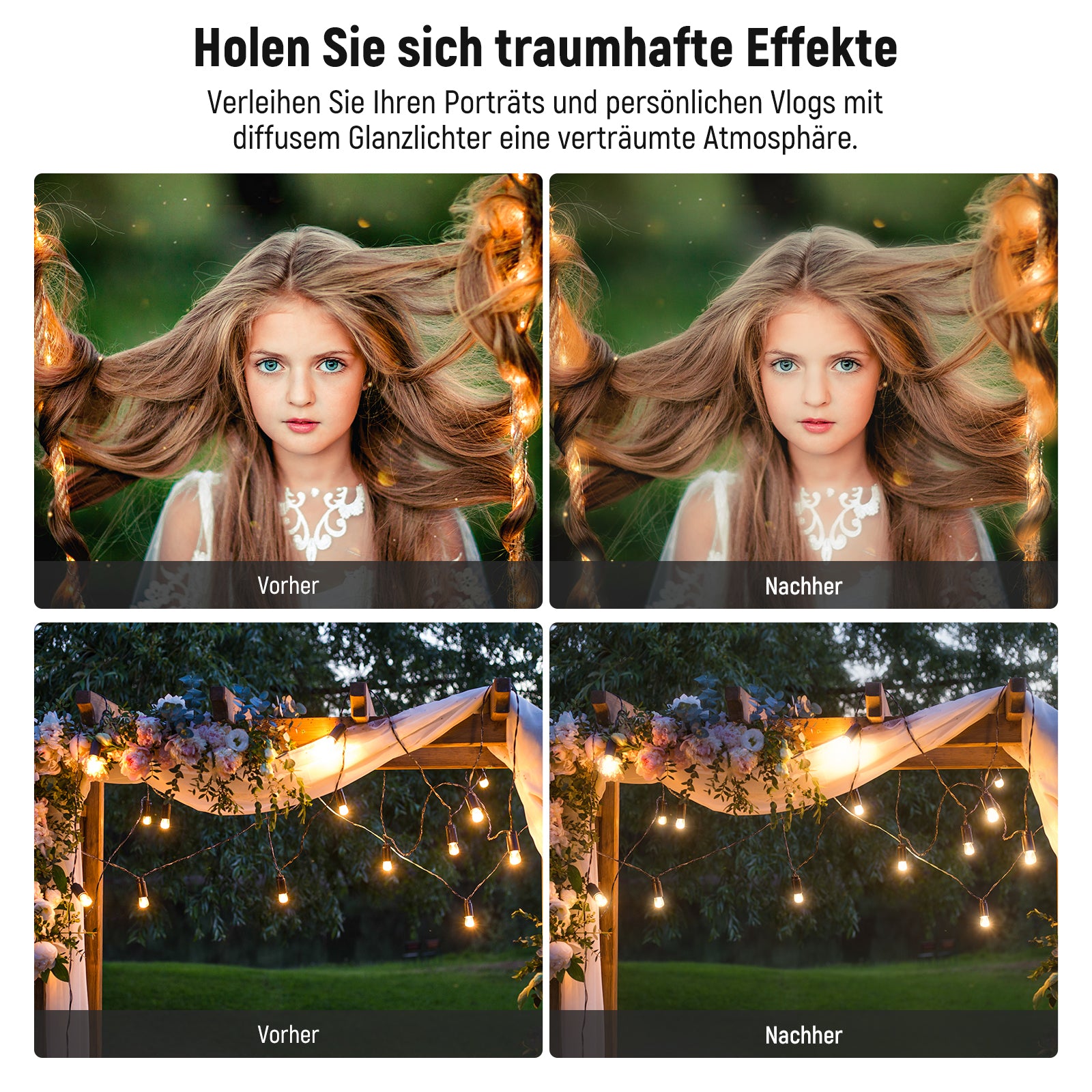 Verträumte und filmische Effekte- Der Black Diffusion 1/4 Filter glättet Hauttöne, mildert Glanzlichter, reduziert Lichtreflexe und erzeugt einen verträumten, verschwommenen und filmischen Effekt für Porträtfotografie, Videoaufnahmen und Vlogging. Hinweis: Der Filter ist nicht mit Kameraobjektiven kompatibel