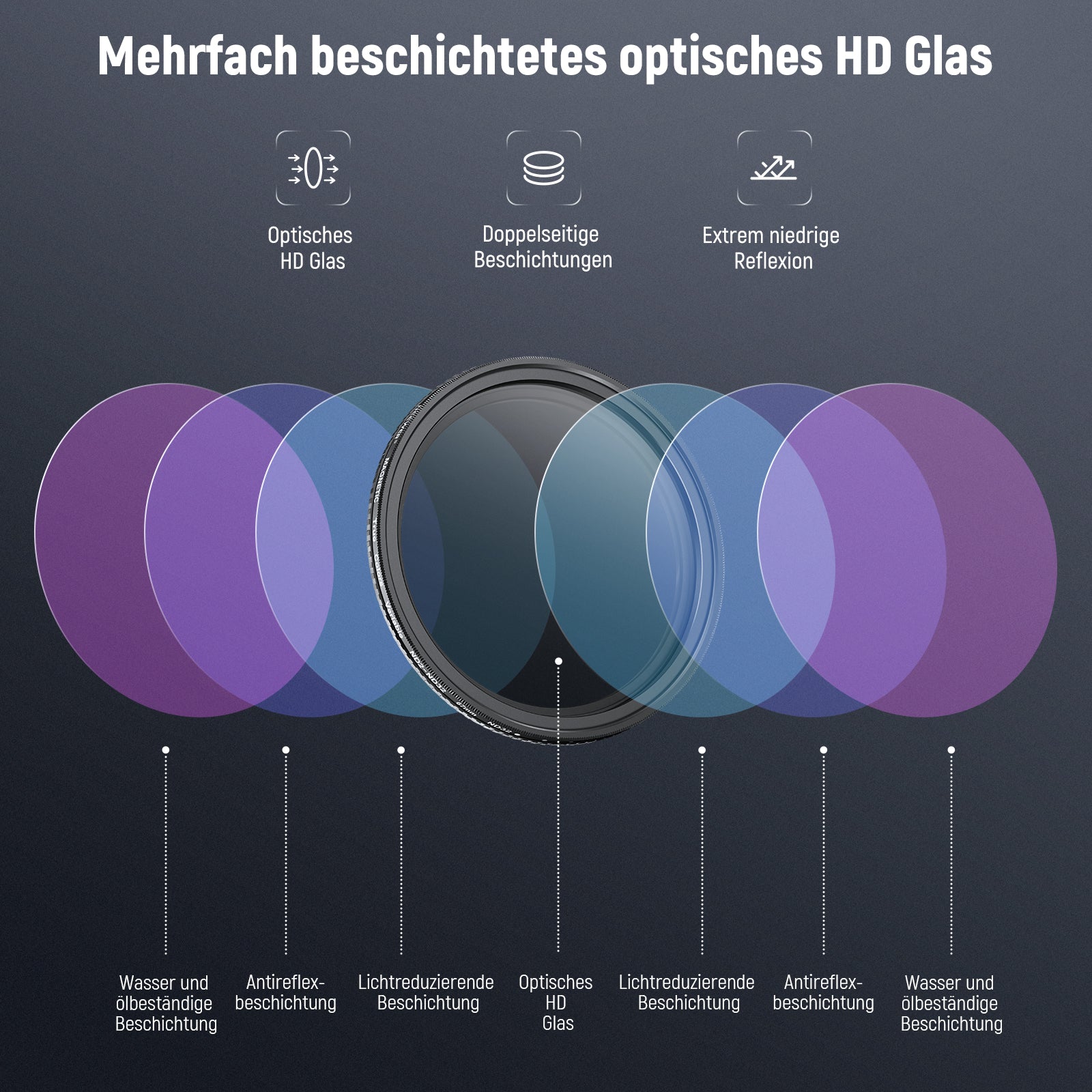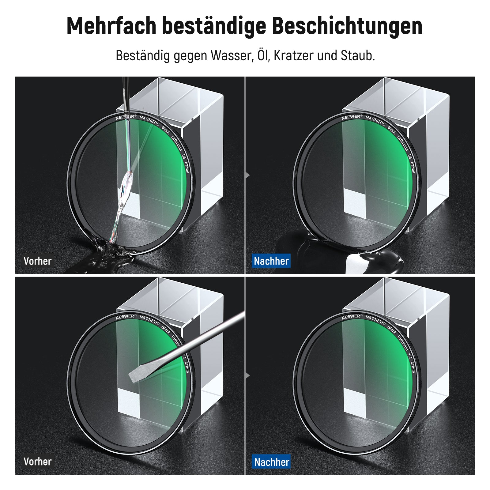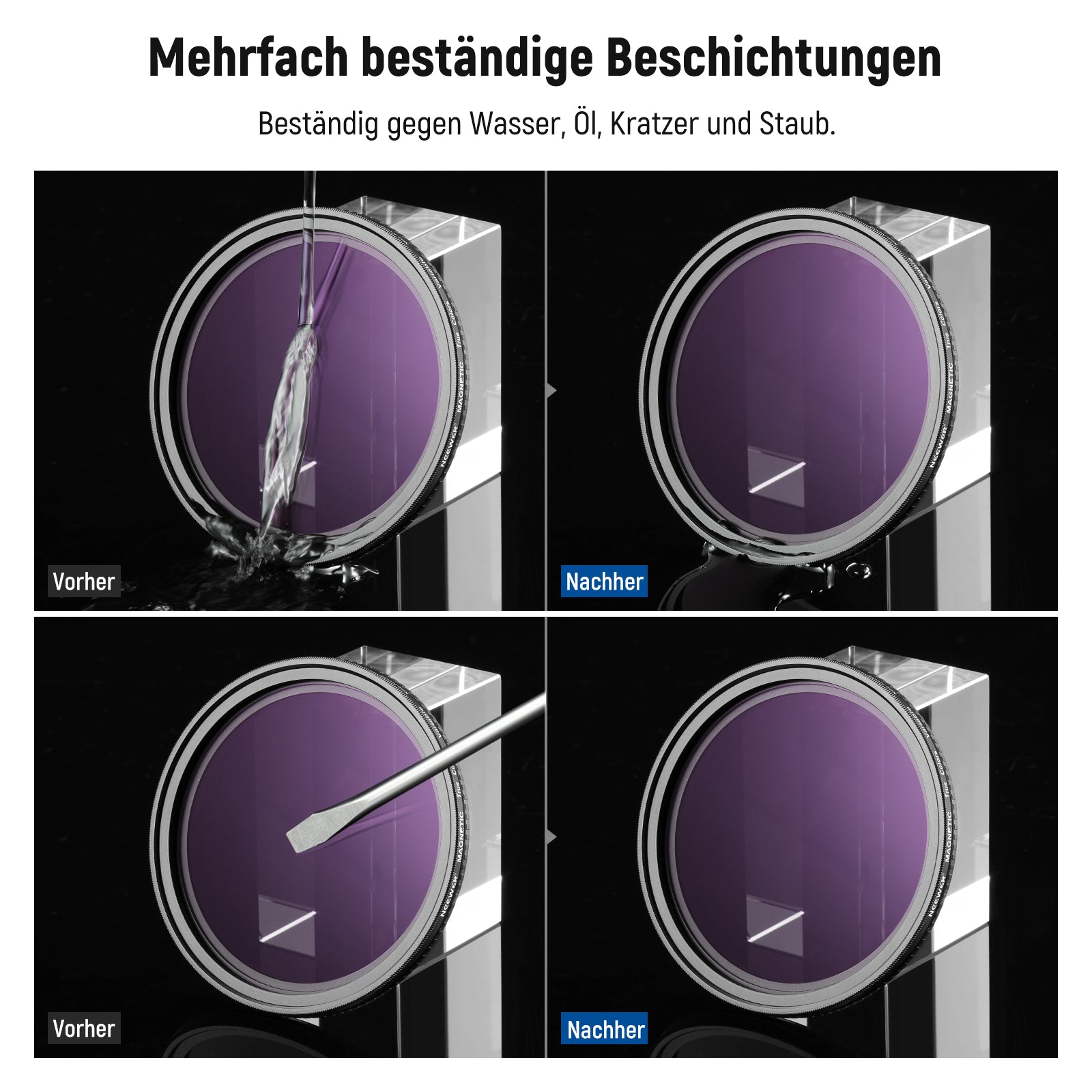 - Mehrfachbeschichtetes HD Optikglas- Optisches HD Glas sorgt für außergewöhnliche Klarheit und präzise Farbwiedergabe. Mehrere Schutzbeschichtungen sind resistent gegen Wasser, Flecken, Fingerabdrücke und Kratzer. Ein mitgeliefertes Reinigungstuch hilft Ihnen, den Filter makellos sauber zu halten