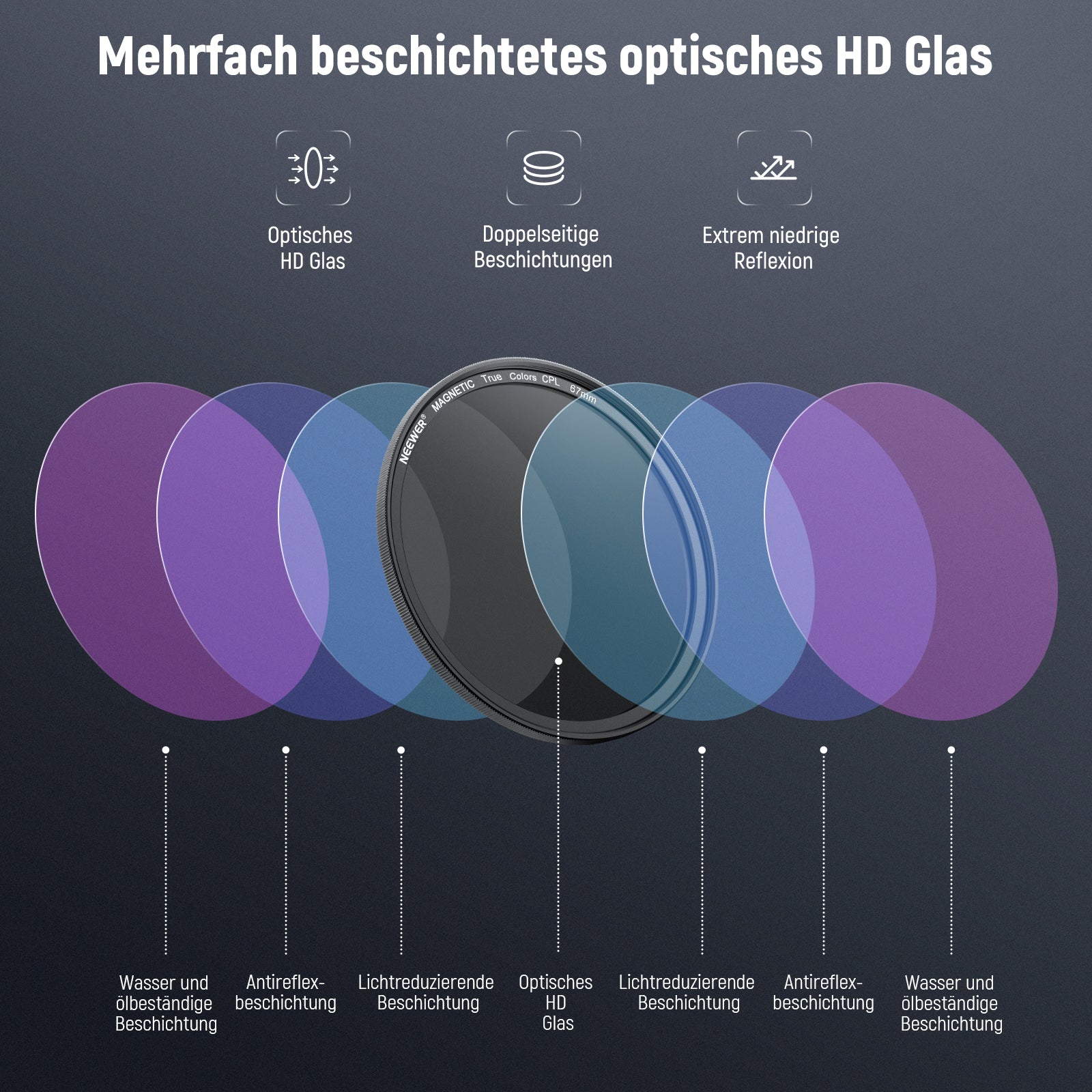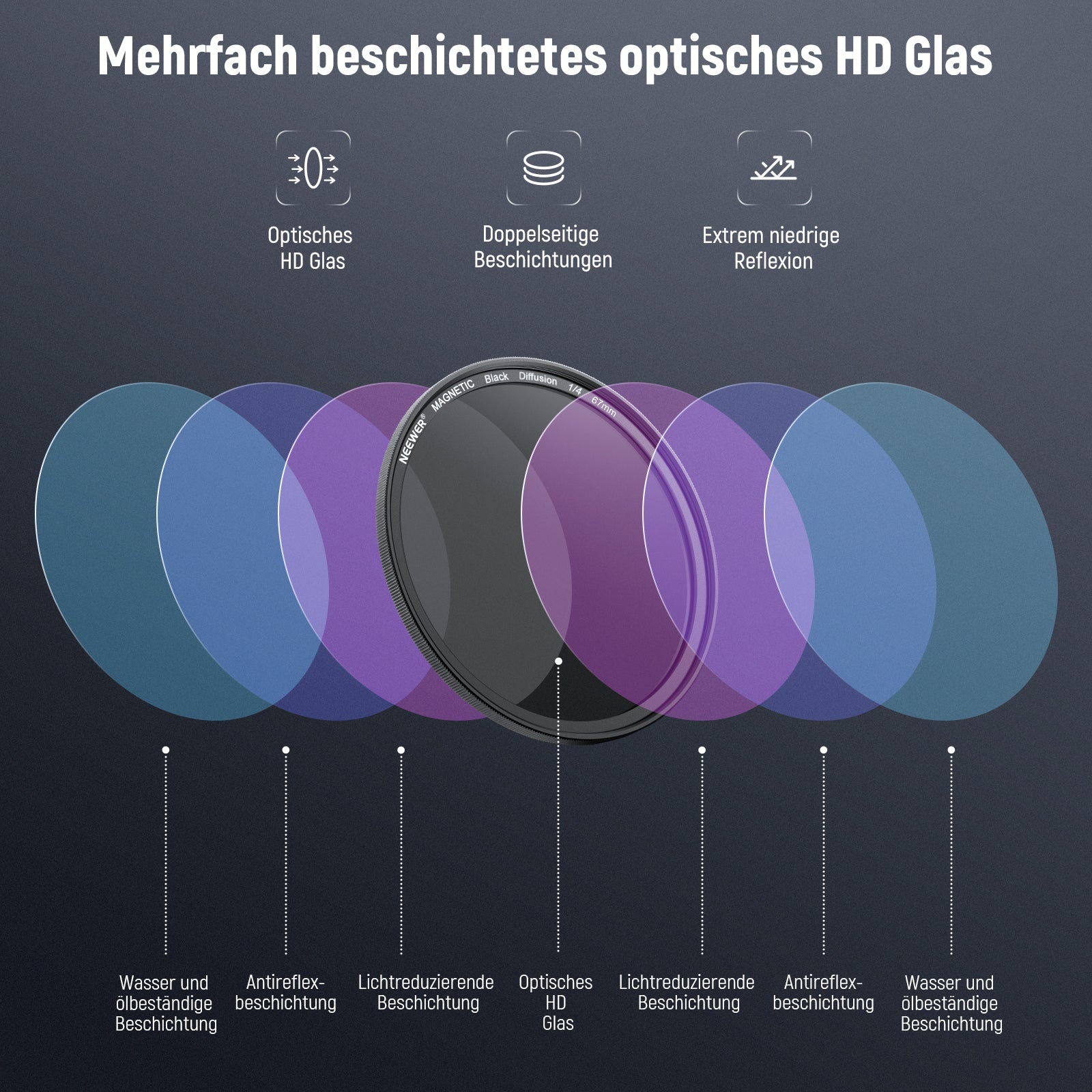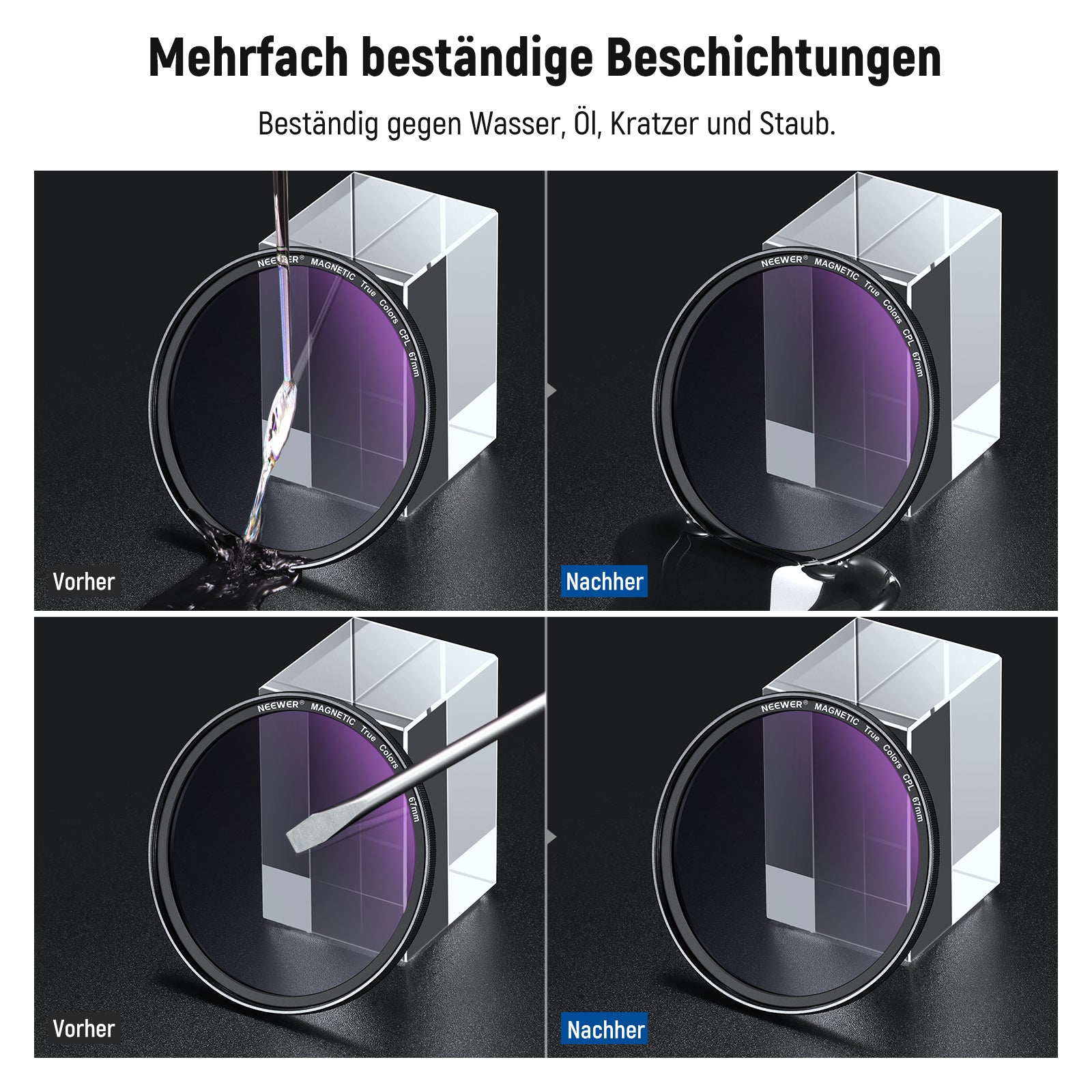 - Mehrfachbeschichtetes HD Optikglas- Optisches HD Glas sorgt für außergewöhnliche Klarheit und präzise Farbwiedergabe. Mehrere Schutzbeschichtungen sind resistent gegen Wasser, Flecken, Fingerabdrücke und Kratzer. Ein mitgeliefertes Reinigungstuch hilft Ihnen, den Filter makellos sauber zu halten