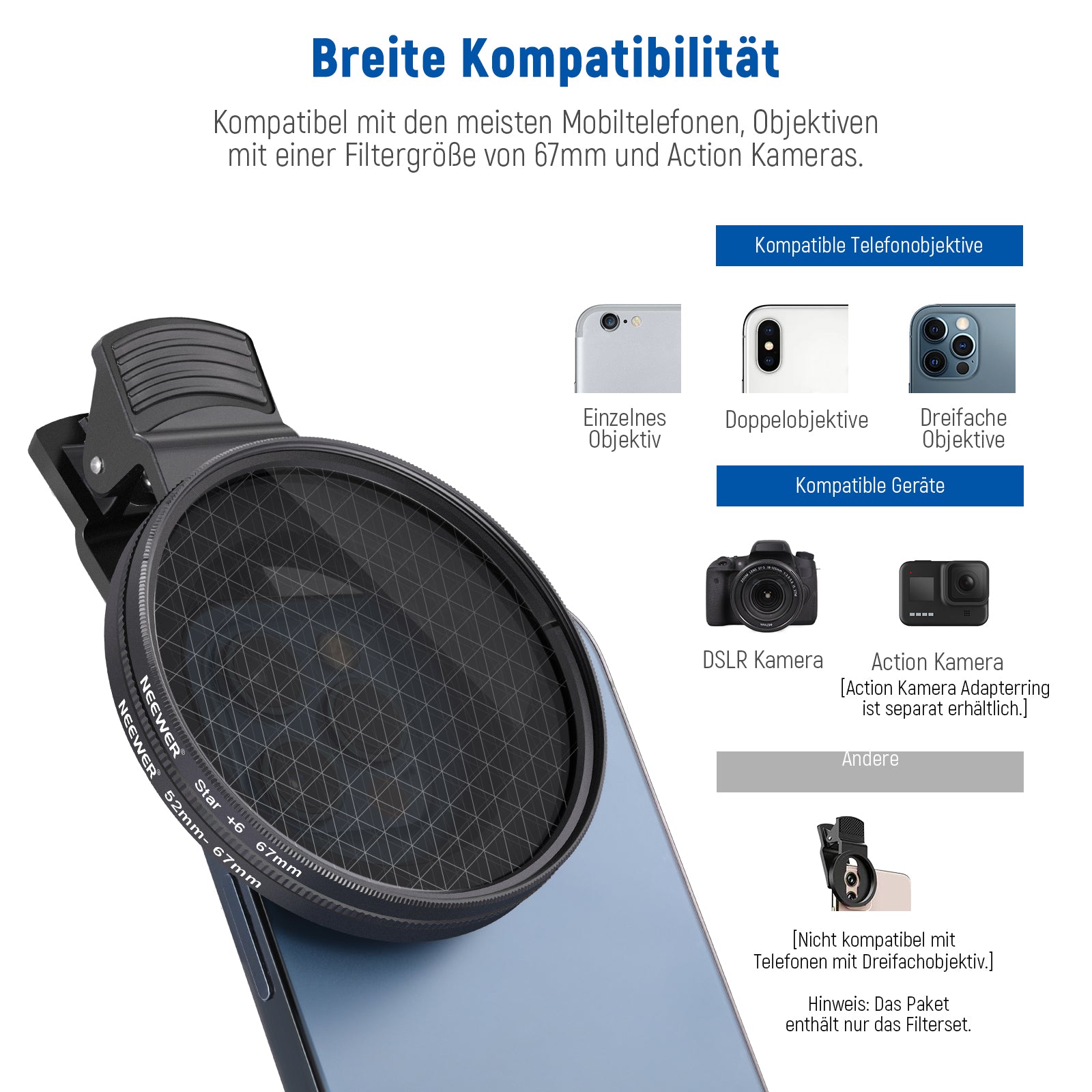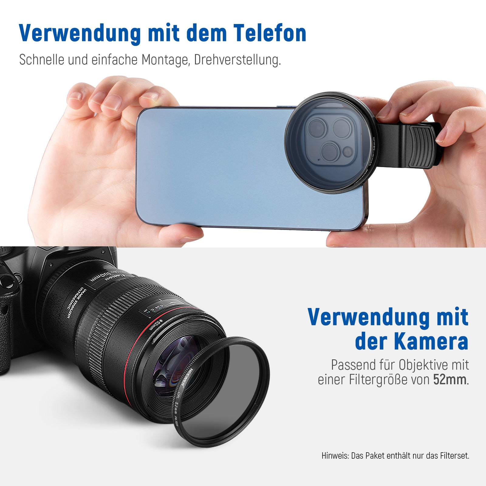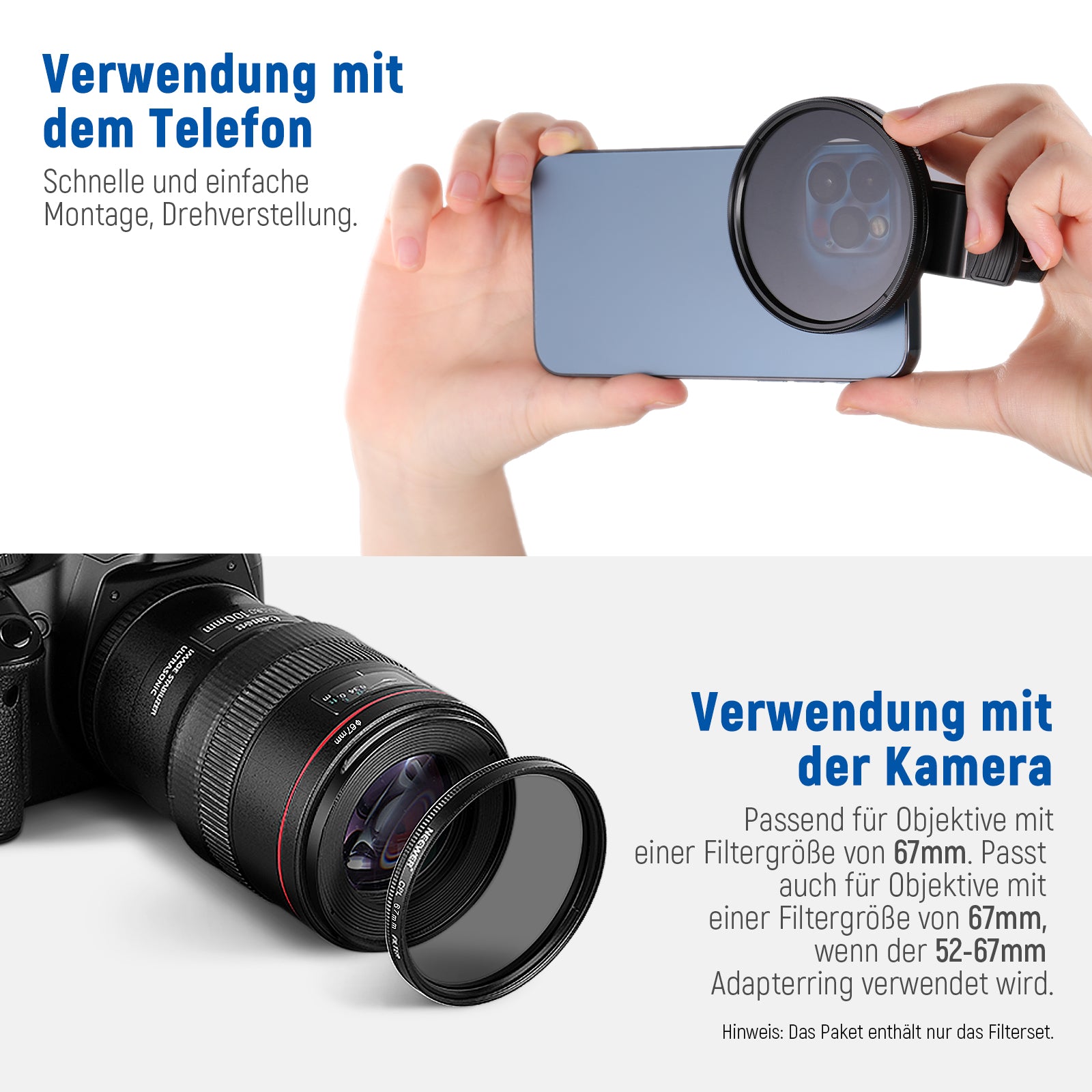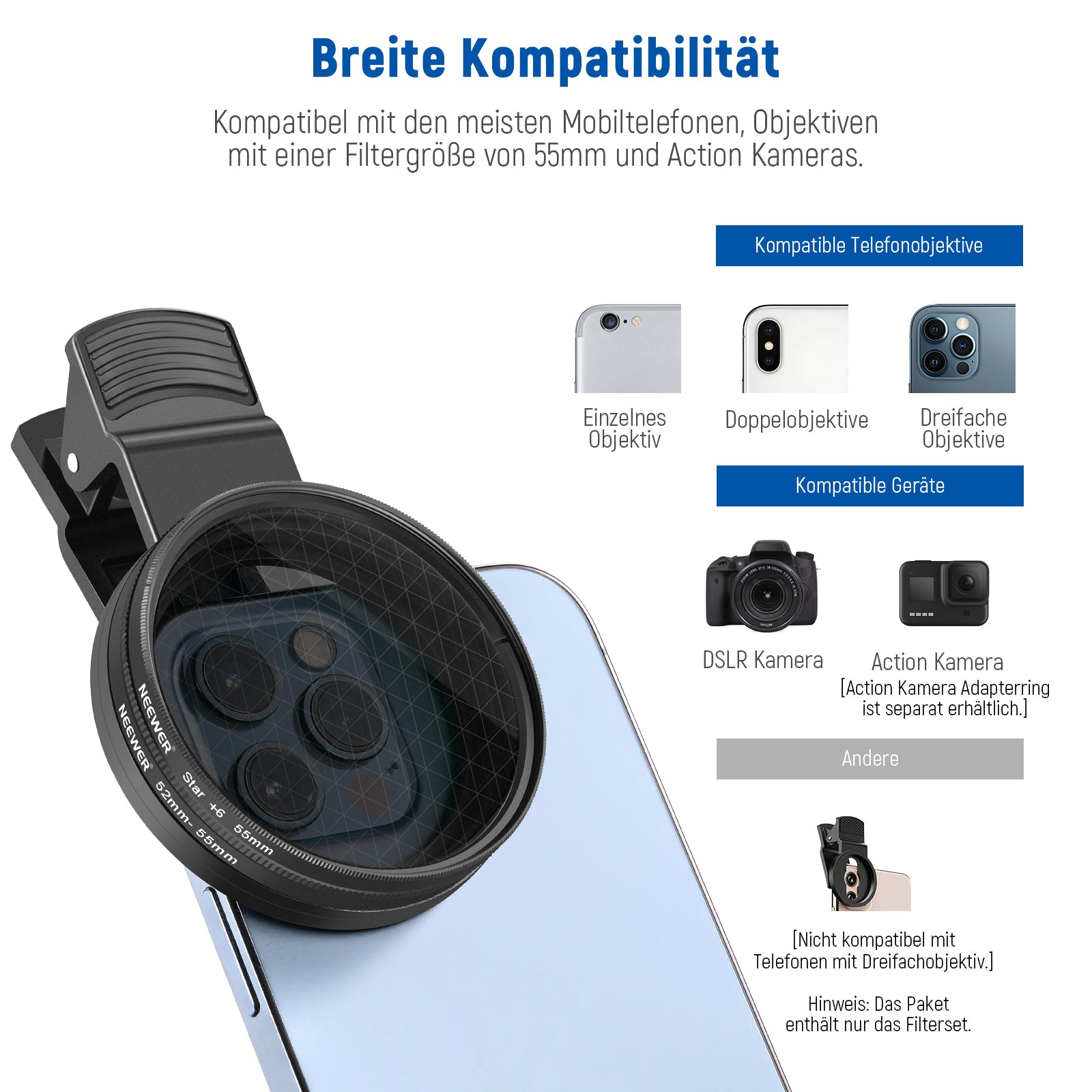 NEEWER ND+CPL+Effekt Filter Set mit Handy Phone Objektiv Klammer