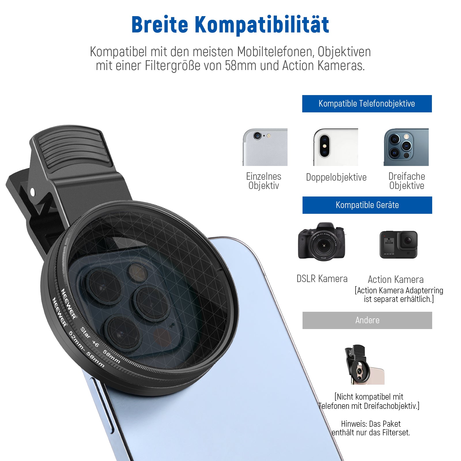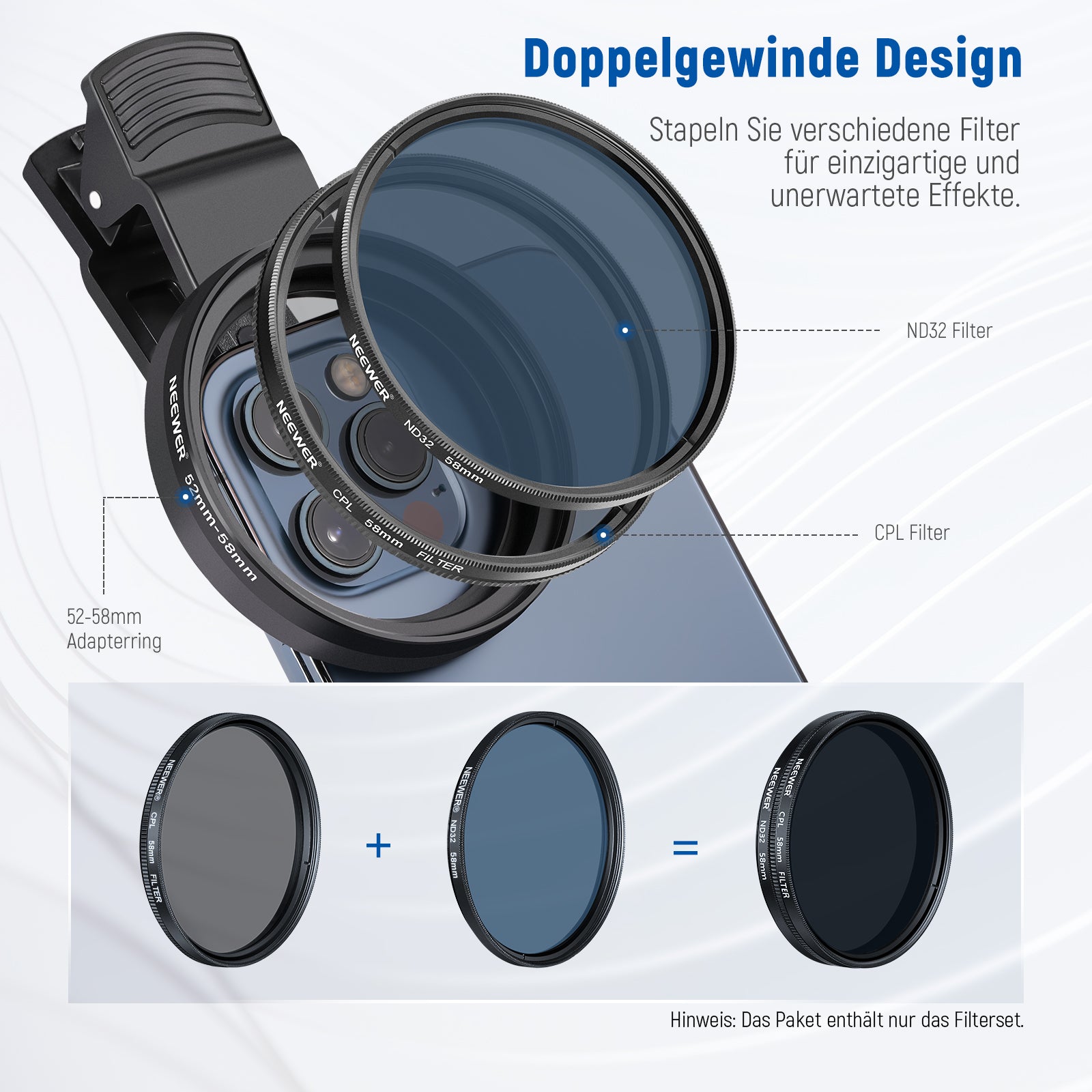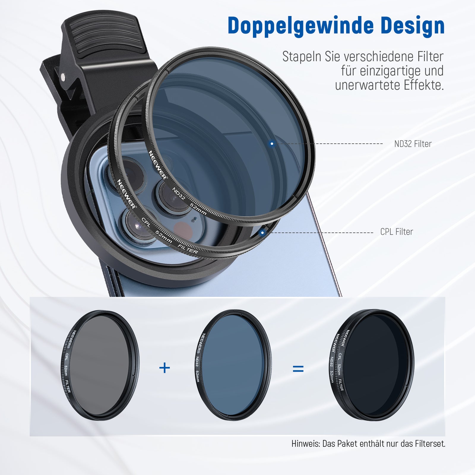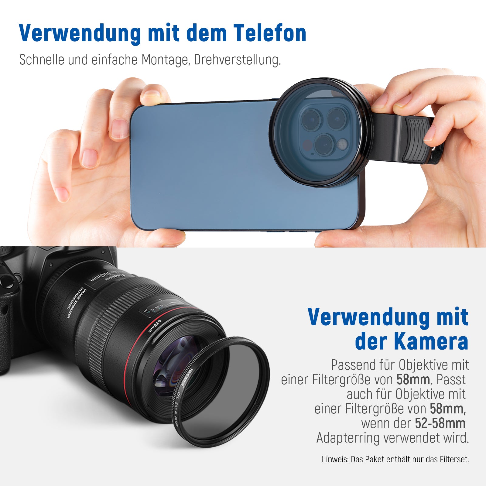 NEEWER ND+CPL+Effekt Filter Set mit Handy Phone Objektiv Klammer