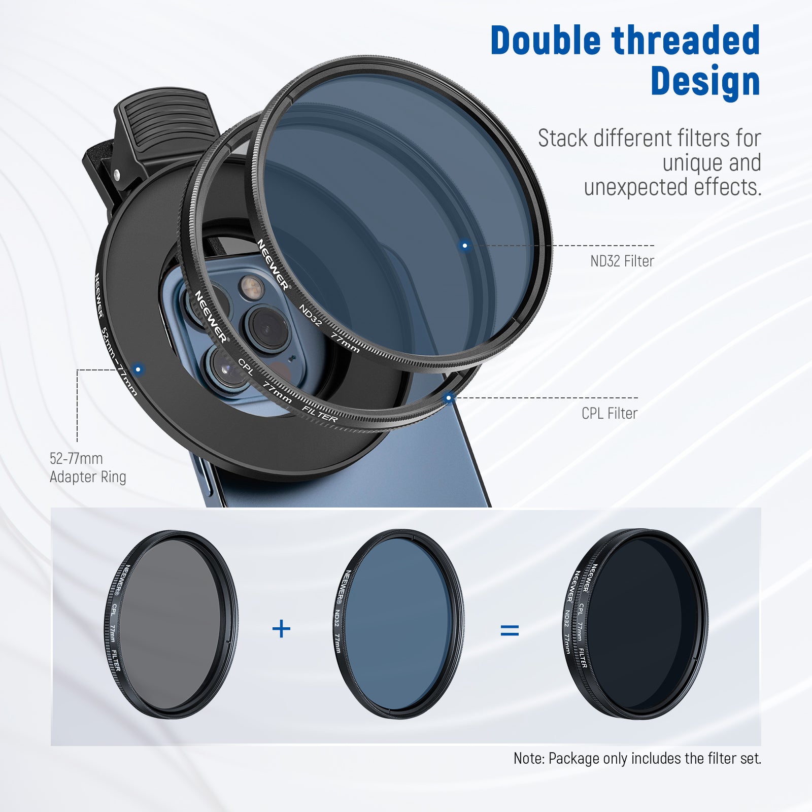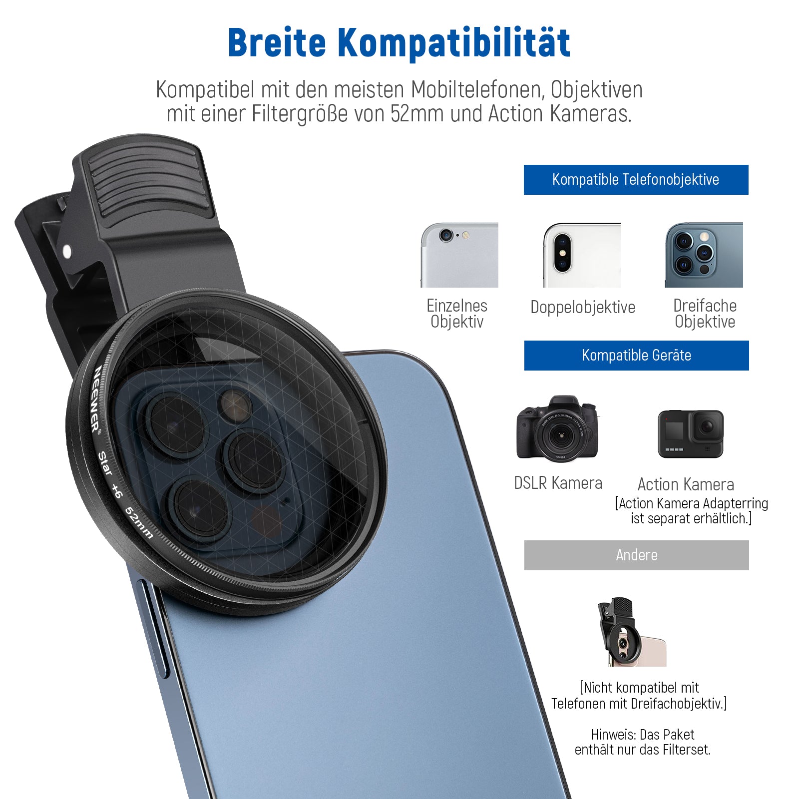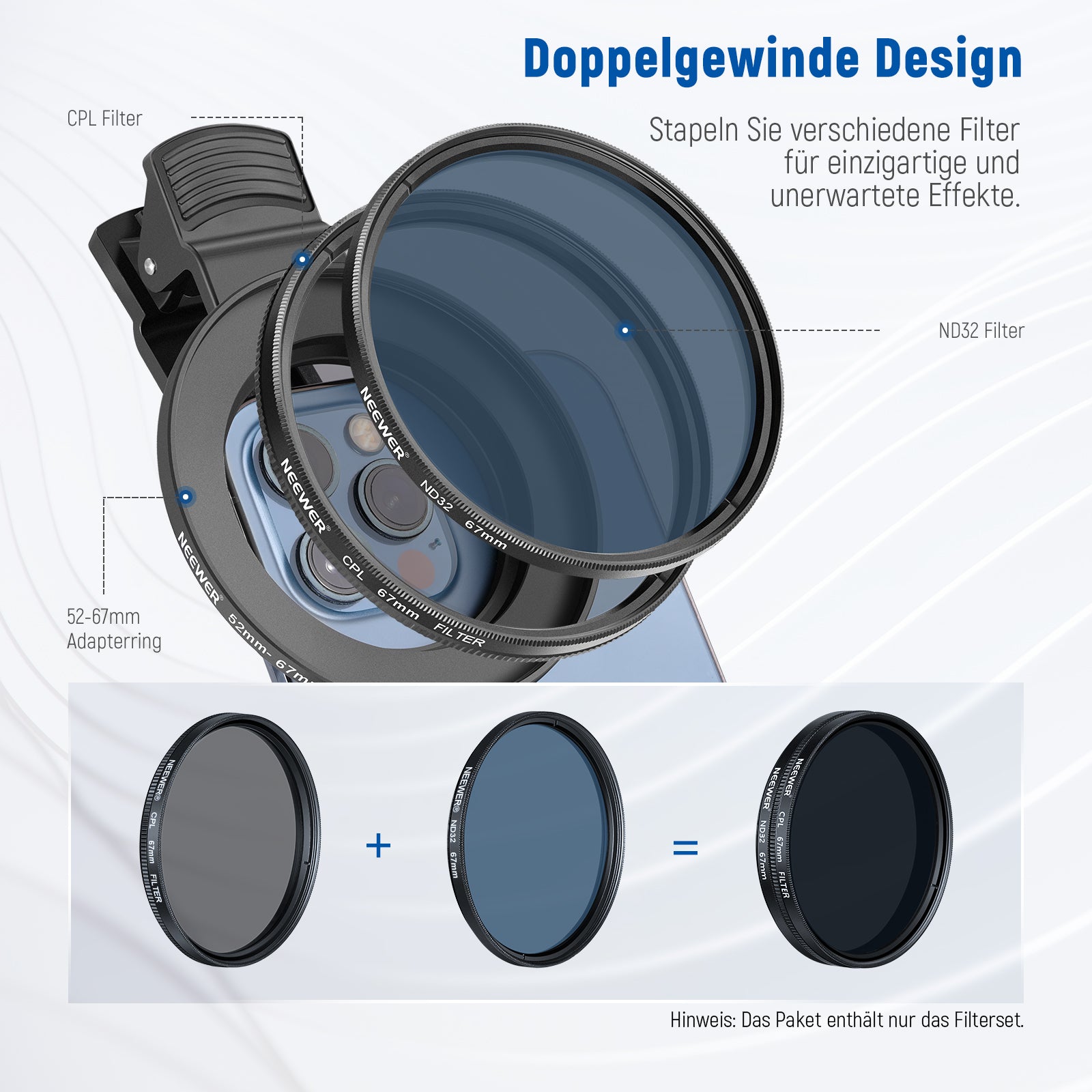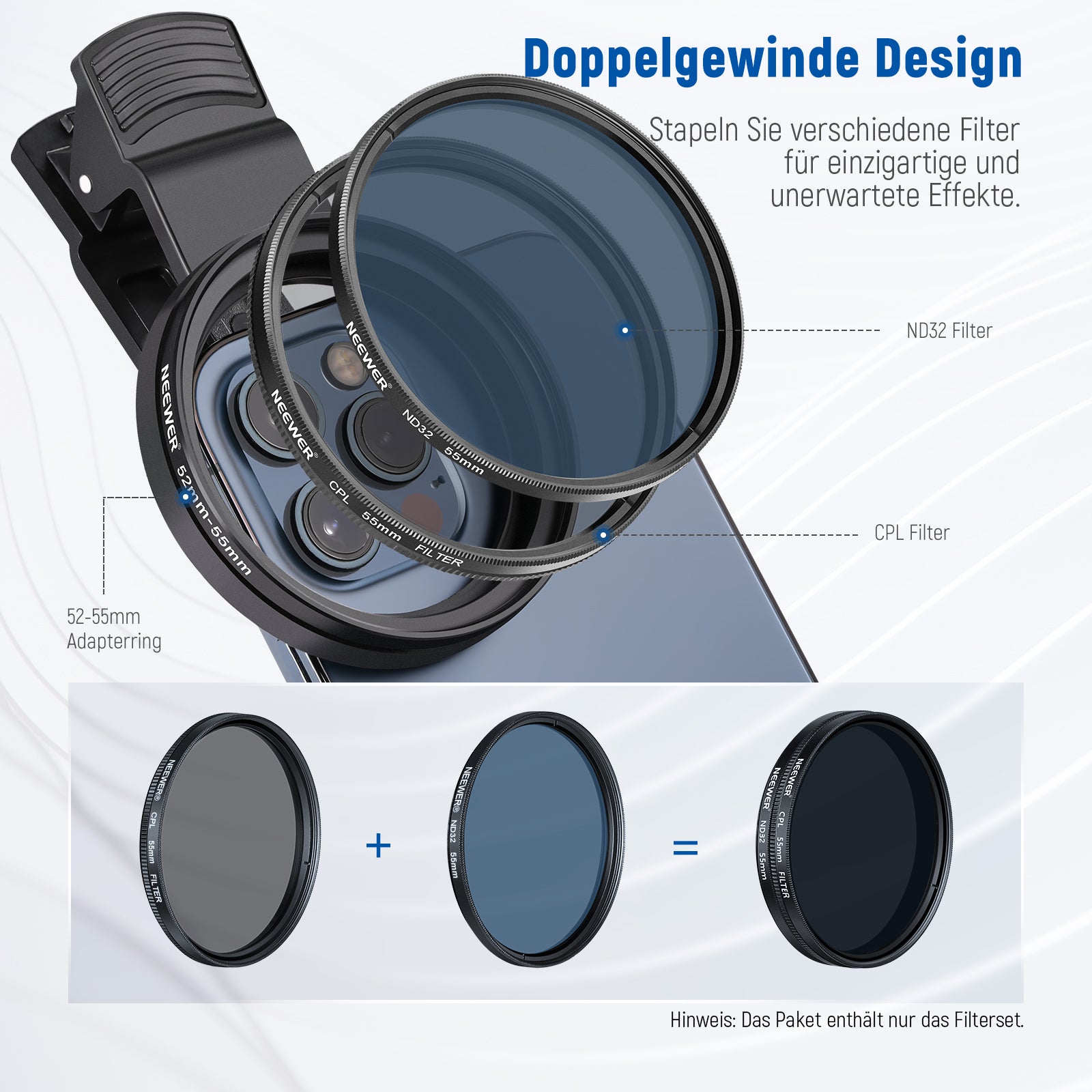 NEEWER ND+CPL+Effekt Filter Set mit Handy Phone Objektiv Klammer
