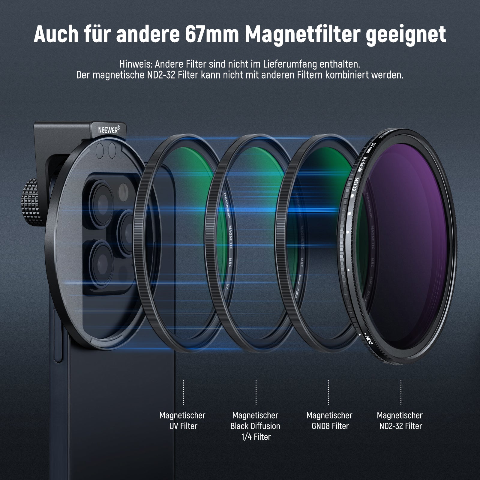 NEEWER 67mm magnetischer CPL Polfilter für Telefon