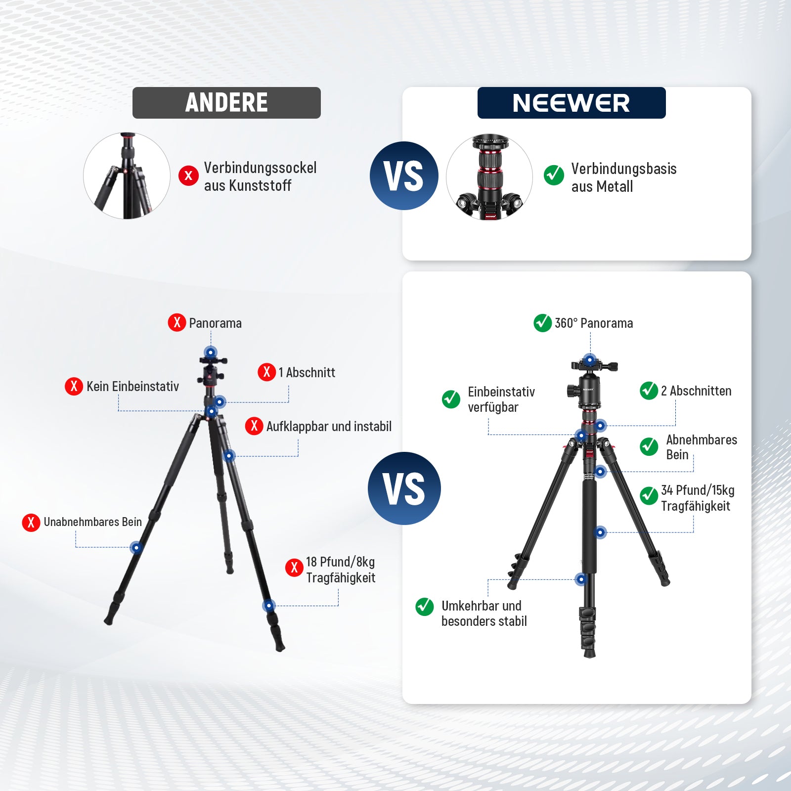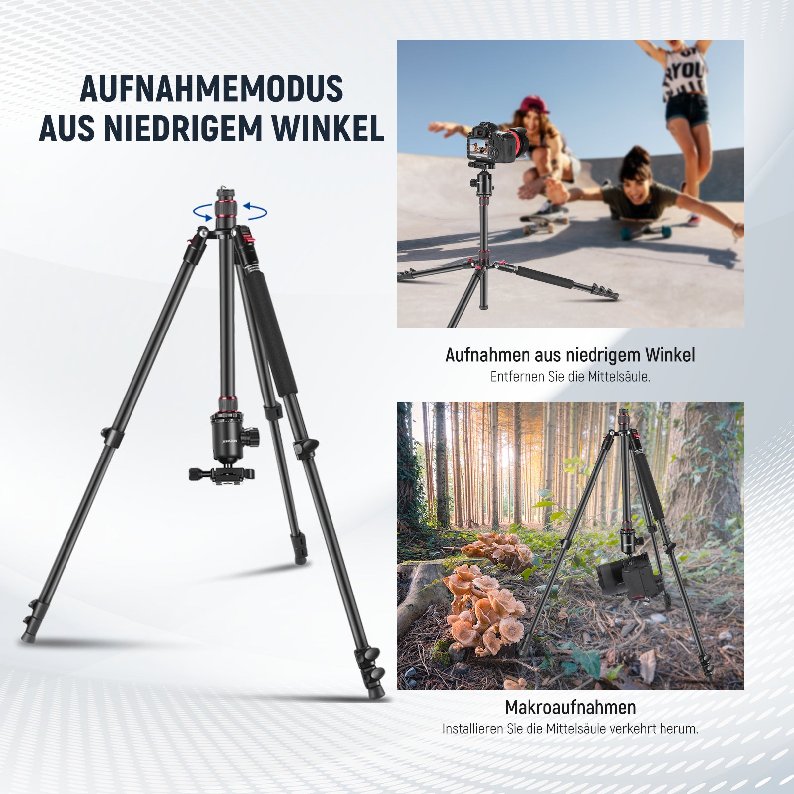 - VERBESSERTES DESIGN: Das einzigartige Design der Mittelsäule, bestehend aus 2 Abschnitten, ermöglicht eine höhere maximale Höhe des Stativs und Einbeinstativs; 4 teilige Beine mit Schnellverschluss Klappschnalle ermöglichen die Einstellung der Arbeitshöhe von 19"bis 77" in Sekunden