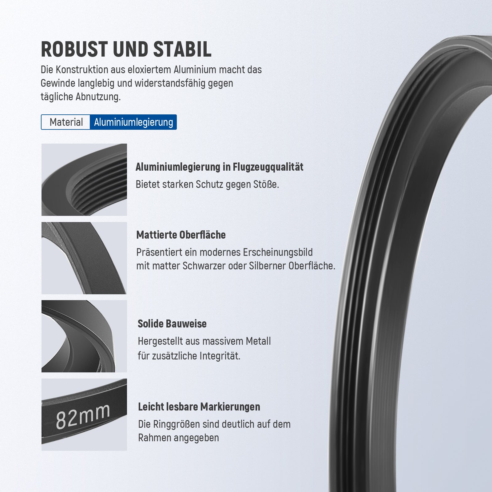 - Langlebiges Material: Hergestellt aus hochwertigem Aluminium für lange Haltbarkeit. Poliert und veredelt mit eloxierter matter Oberfläche