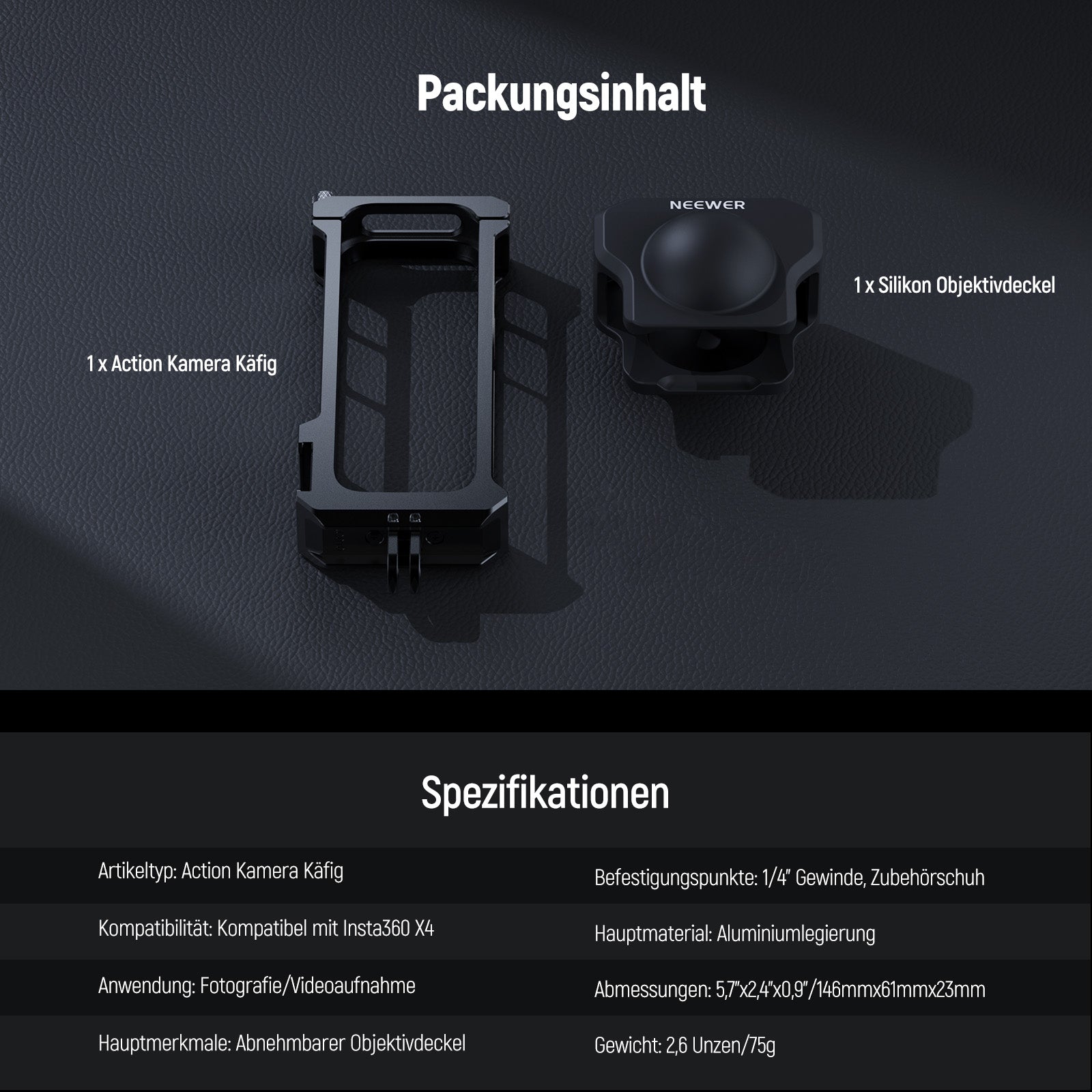 NEEWER AC010 Action Kamera Käfig mit Schutzhülle für Insta 360 X4