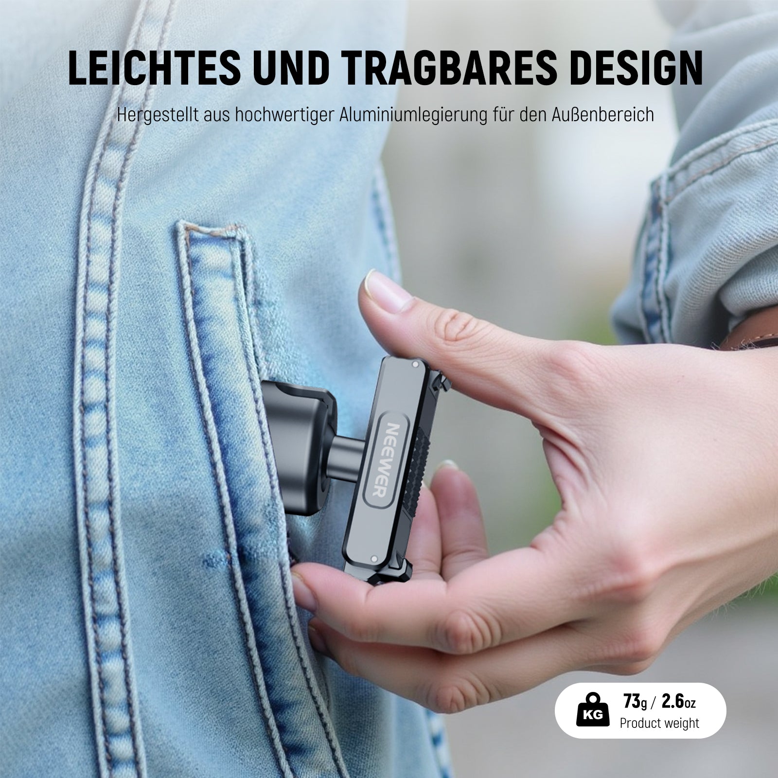 - 1/4" Gewinde mit Aufnahmeloch- Entfernen Sie den Magnetfuß und verwenden Sie das 1/4" Gewinde für Selfie Stick, Stativ, Handgriff und Magic Arm Anschluss. Ein Fixierloch sorgt für zusätzliche Stabilität