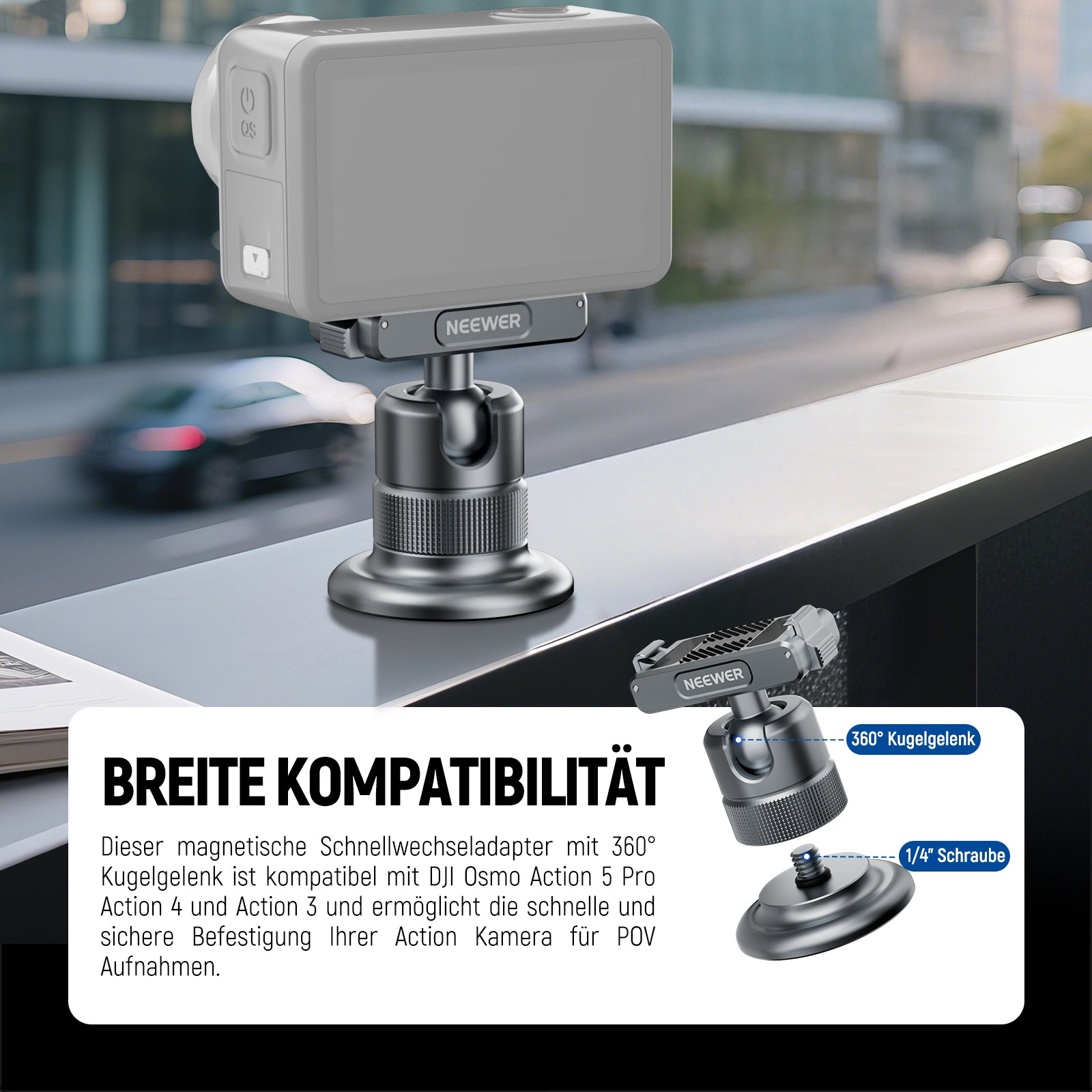 - Für Osmo 360 / Action 5 Pro / 4 / 3- Dieser magnetische Schnellwechseladapter mit 360° Kugelgelenk ist kompatibel mit DJI Osmo 360, Action 5 Pro, 5 Pro Adventure Combo, Action 4 und Action 3 und ermöglicht die schnelle und sichere Befestigung Ihrer Action Kamera für POV Aufnahmen. Ideal für Content Ersteller als unverzichtbares Action Kamera Zubehör und für Influencer als unverzichtbare Fotoausrüstung