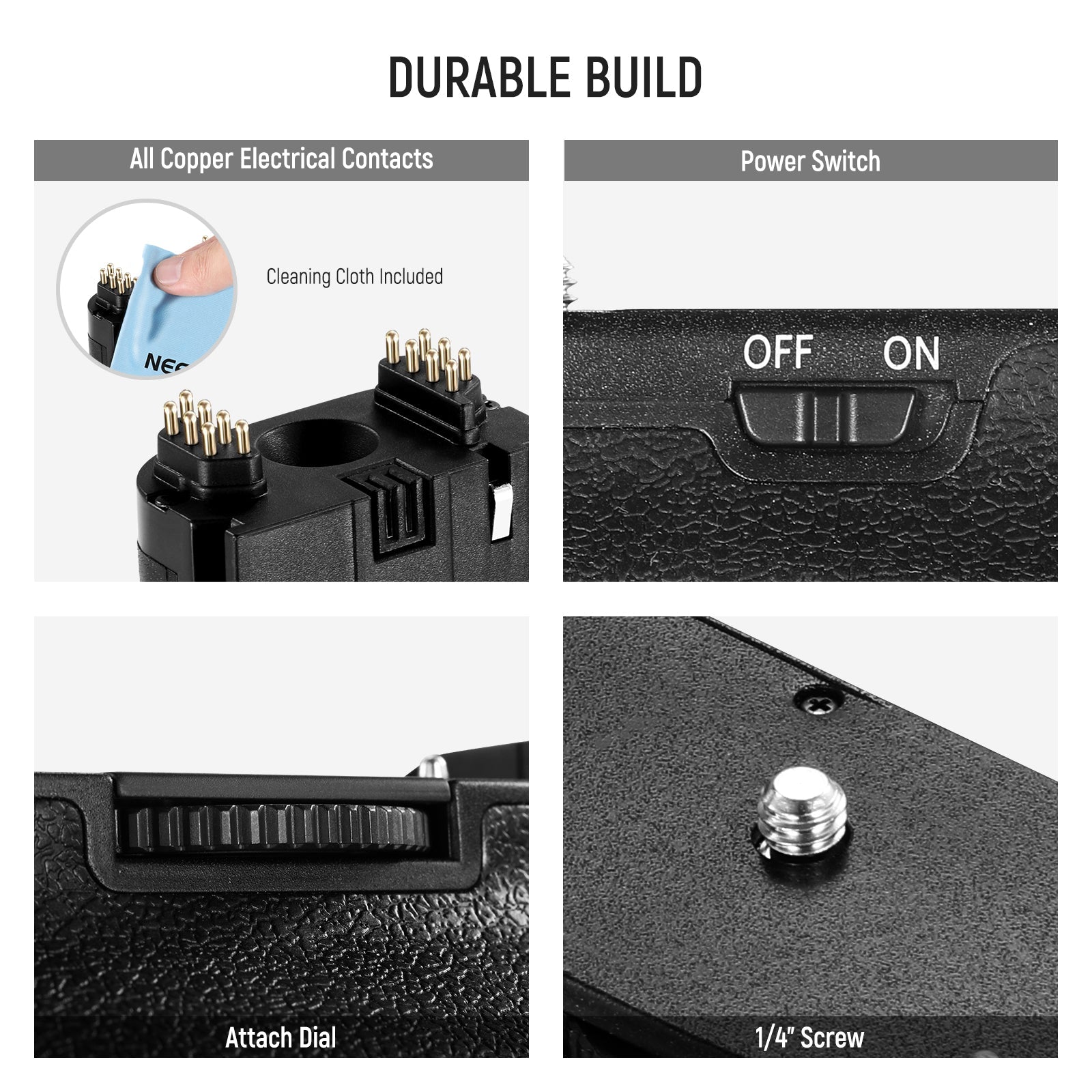 - 【Fester und bequemer Griff】 Der leichte und solide gehärtete Kunststoff sorgt dafür, dass der Griff leicht und stabil zu halten ist. Die rutschfeste und feuchtigkeitsbeständige matte Oberfläche sorgt für einen festen und bequemen Halt Ihrer Kamera. Wiegt nur 260g