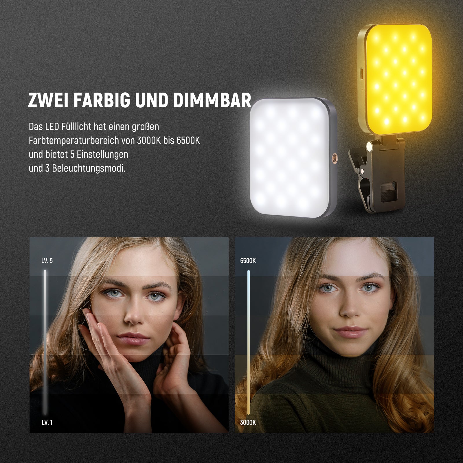 Tragbares Mini Selfie Licht für Außenaufnahmen- Dieses tragbare LED Streaming handy licht für Telefonfotografie misst nur 85mm x 69mm x 14mm (3,34" x 2,72" x 0,55"), ist kompakt und leicht und belastet Sie nicht, wenn es an Ihrem Telefon befestigt ist. Es passt problemlos in Ihre Tasche und lässt sich mühelos transportieren. Es ist ein hilfreicher Begleiter zum Aufnehmen von Momenten und Aufnehmen von Videos überall dort, wo Sie Fülllicht benötigen
