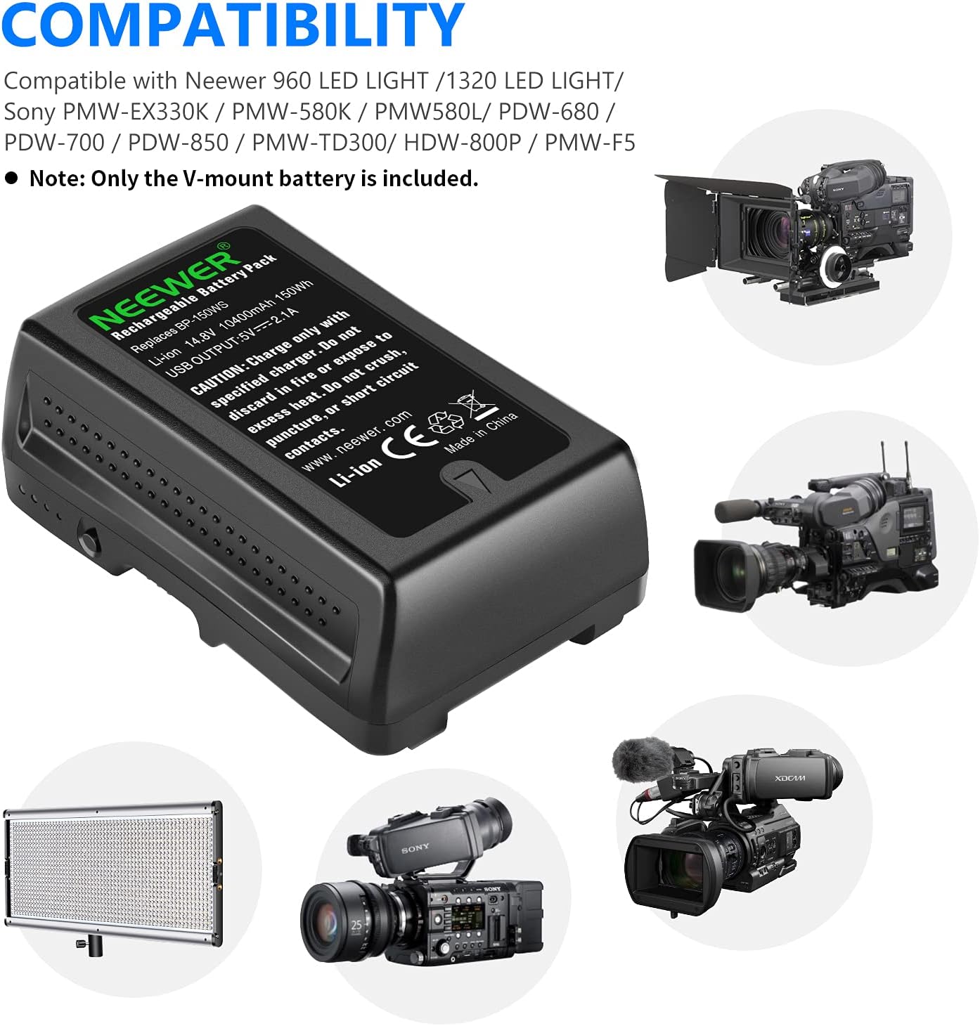 - Vielfältige Anwendungen- Kompatibel mit einer Vielzahl von professionellen Videokameras, Camcordern und LED-Videolampen, einschließlich Sony HVR-S270C, PMW-EX330K, PMW-EX330L, PMW-580K, PMW580L, PDW-680, PDW-700, PDW-850, PMW-TD300, HDW-F900R, HDW-680, HDW-800P, PMW-F55, PMW-F5, BMPCC 4K&6K, ARRI Alexa Mini, und mehr
