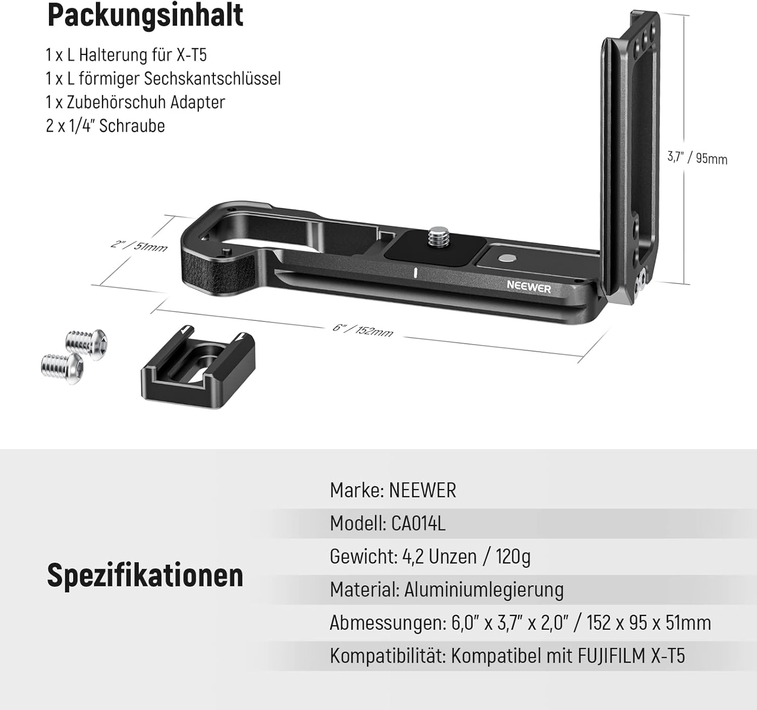 NEEWER CA014L X-T5 L Halterung kompatibel mit FUJIFILM X-T5