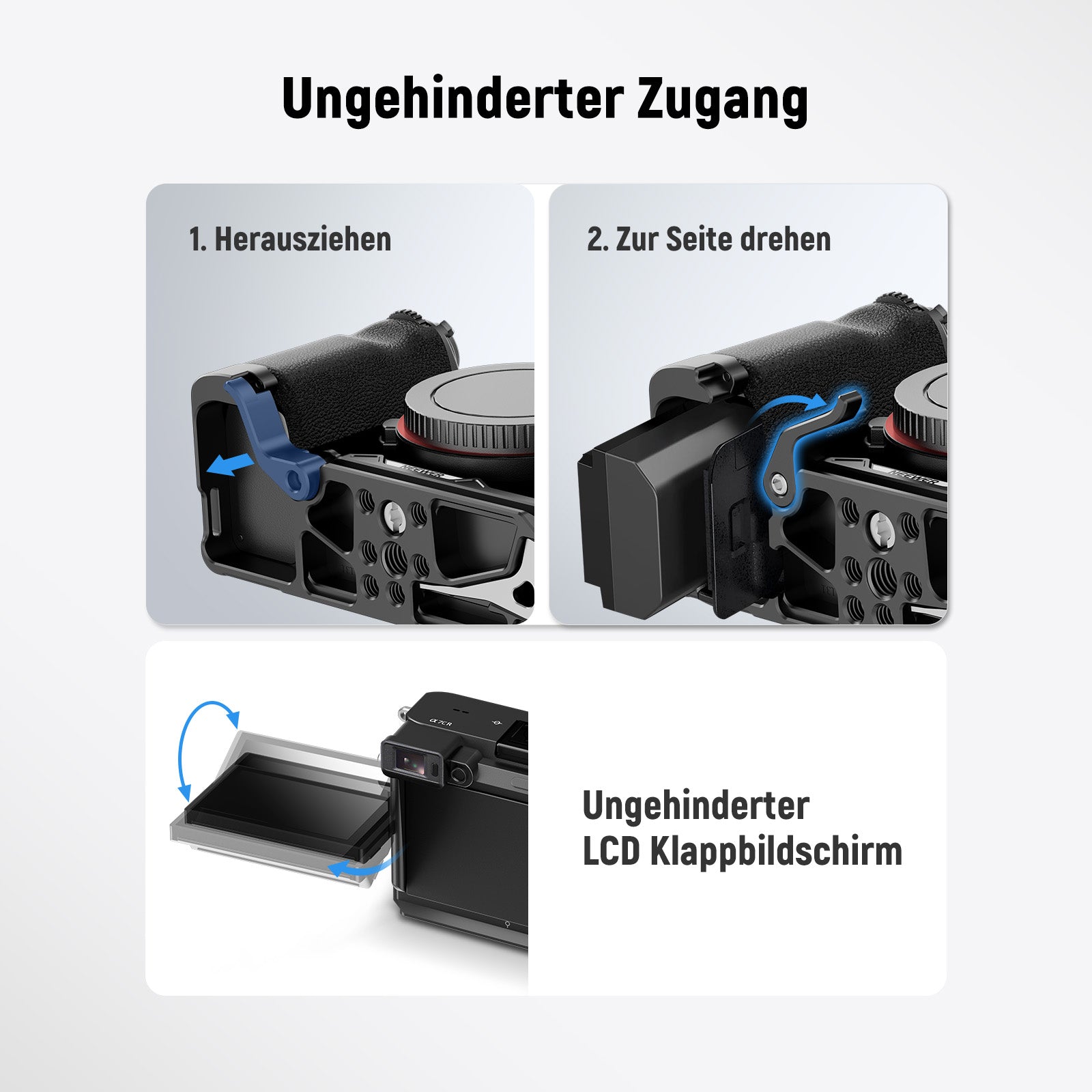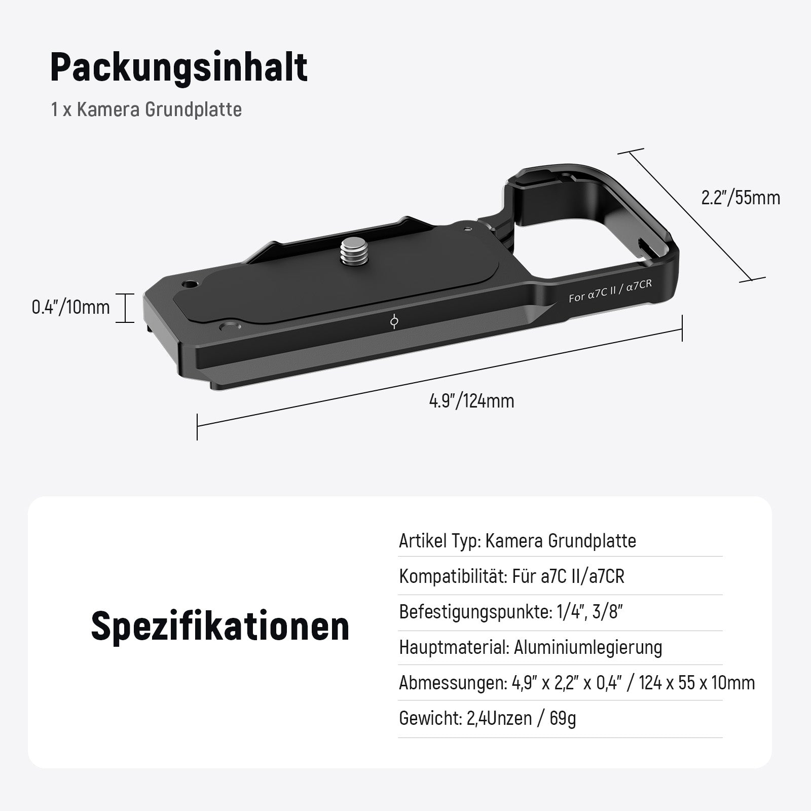 - Entwickelt für α7C II/α7CR Kamera- Kamera Baseplate Kompatibel mit Sony Alpha α7CII und α7CR. Dieses Zubehör für die Kamera Grundplatte verfügt über einen federbelasteten Mechanismus, der einen einfachen Zugriff auf das Batteriefach ermöglicht, während das schlanke Design die ursprüngliche Ästhetik der Kamera bewahrt