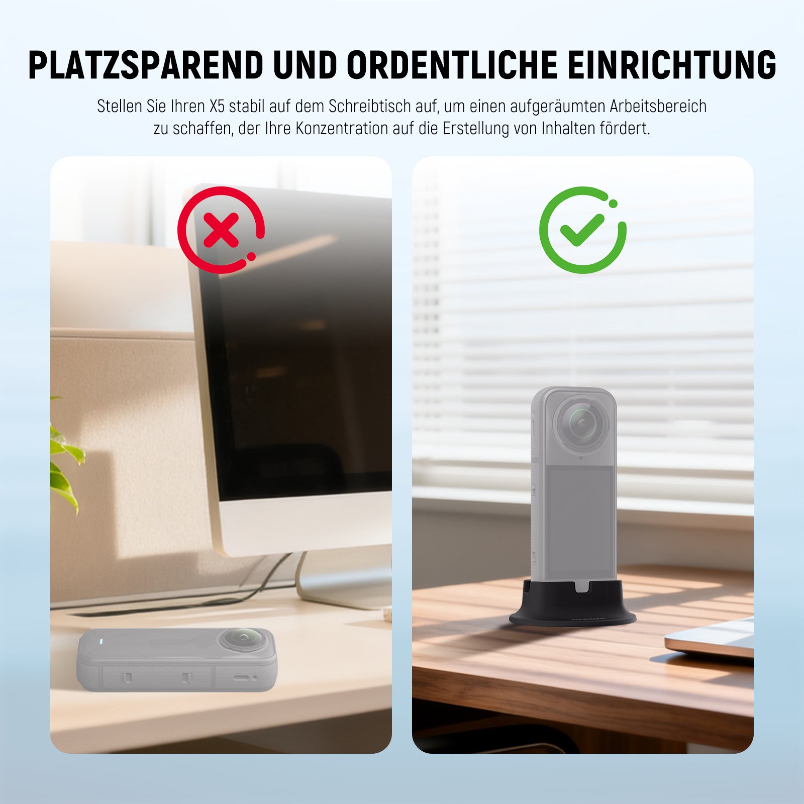 - Vielseitige Verwendung- Die X5 Tischhalterung positioniert Ihre Action Cam aufrecht auf jeder Oberfläche – ideal für Aufnahmen vor Ort oder Zeitrafferfotografie, als unverzichtbares Fotografie Zubehör und Videografieausrüstung für Content Creator und Influencer