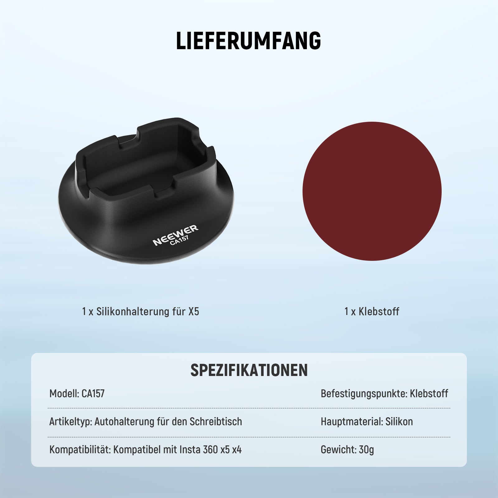 - Tischhalterung fürs Auto, kompatibel mit Insta360 X5 X4- Die Silikonhalterung ist vollständig kompatibel mit Insta 360 X5 X4 als Actionkamera Zubehör. Mit dem wiederverwendbaren Klebstoff an der Unterseite lässt sich Ihr Gerät sicher aufrecht im Auto befestigen, um POV Vlogging, Videoaufnahmen oder Filmaufnahmen zu machen