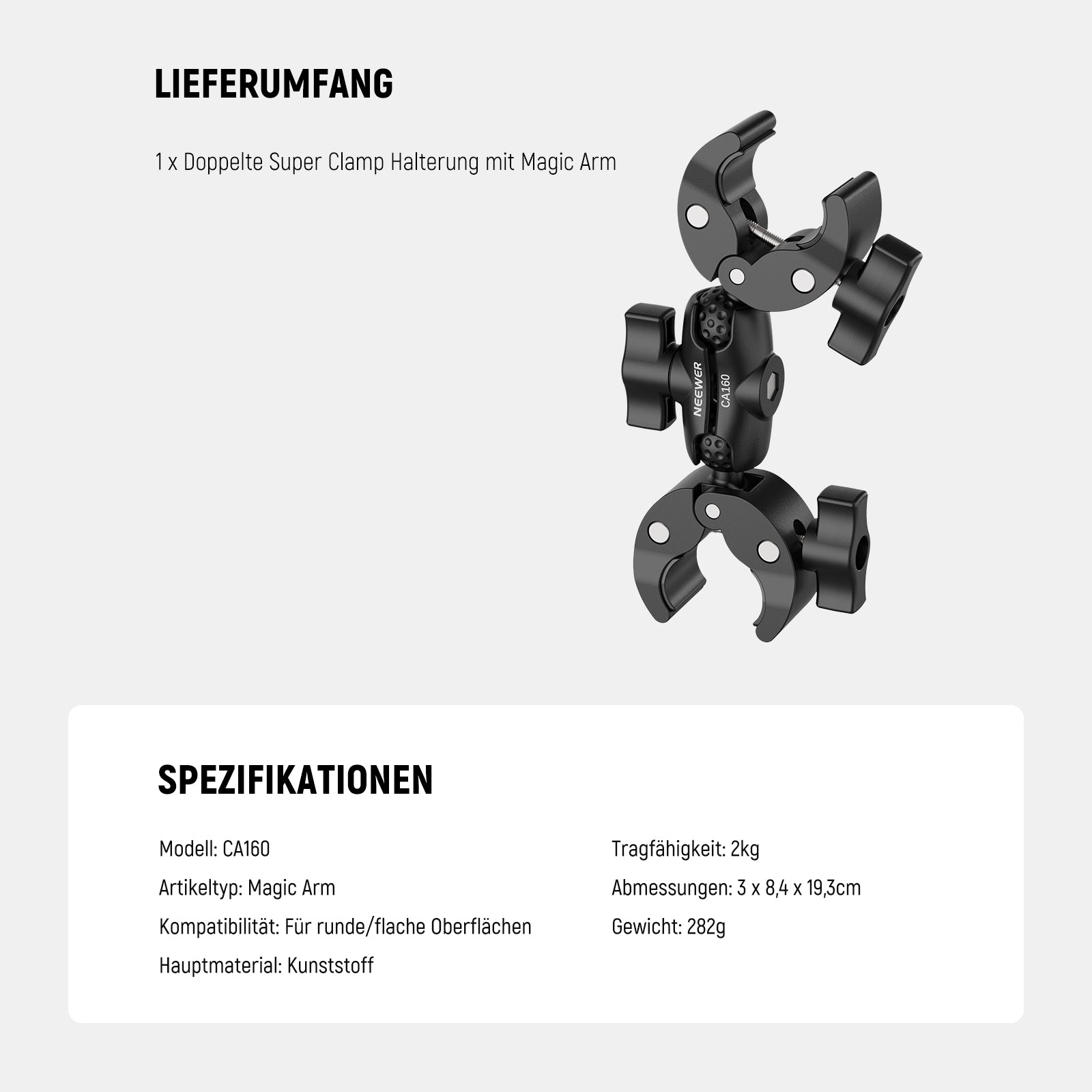 NEEWER CA160 Doppelte Super Clamp Halterung mit Magic Arm