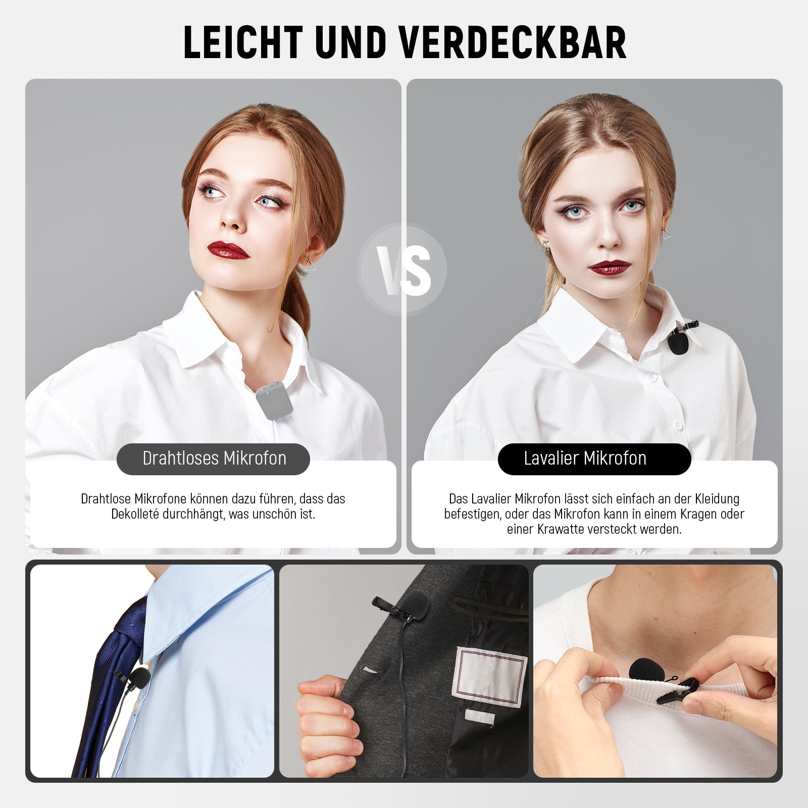 - 【Anstecknadel Design】 Das Mini Mikrofon ist mit einem 1,2m langen Kabel und einen hochwertigen Mikrofonclip aus Metall ausgestattet. Es kann am Revers der Kleidung befestigt werden, während das andere Ende mit dem Gerät verbunden ist, um maximalen Komfort und eine freihändige Bedienung zu gewährleisten