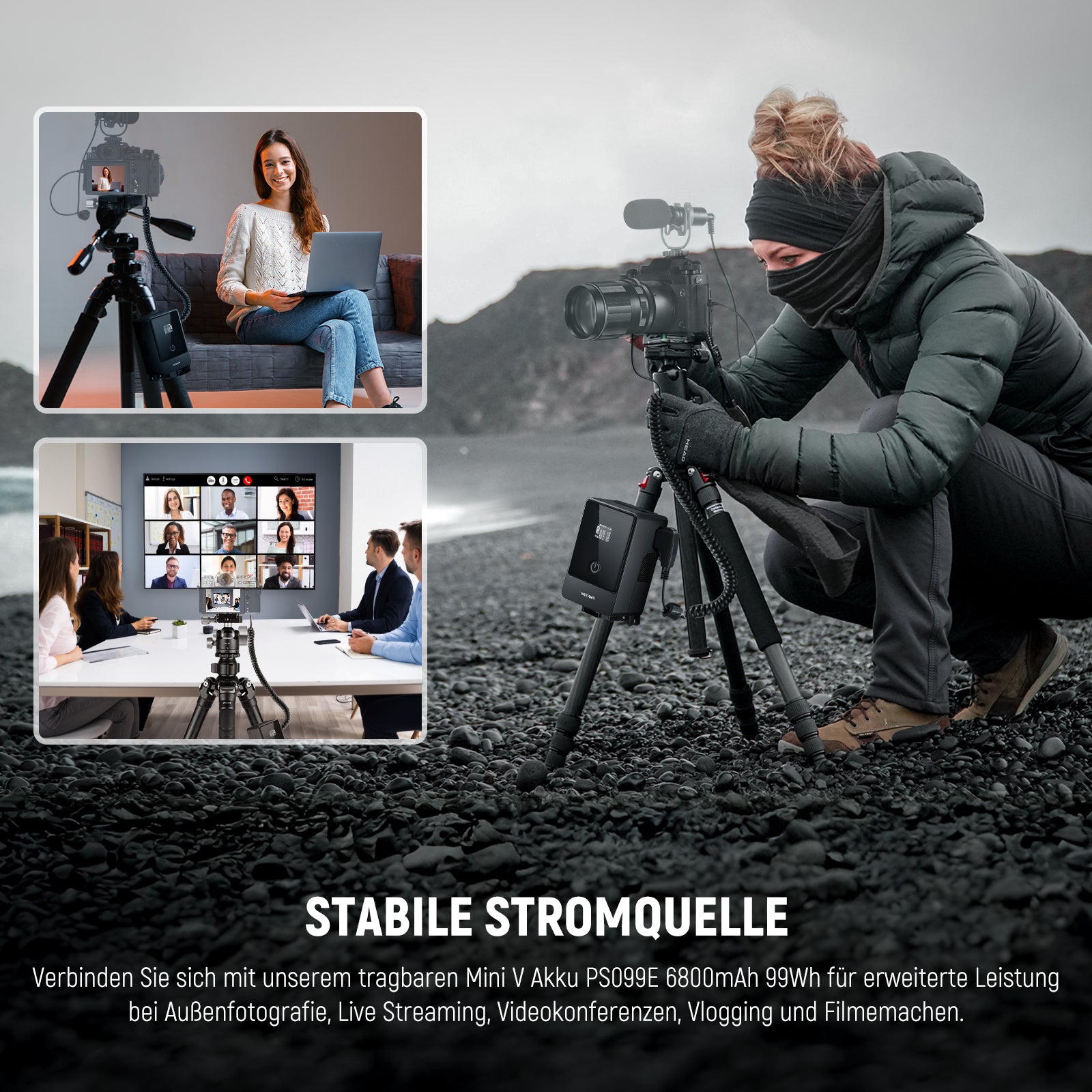 - Stabile Leistung für längere und sicherere Aufnahmen- Verabschieden Sie sich von Kabelausfällen und schützen Sie Ihr wichtiges Aufnahmen. Unser intelligenter Chip gewährleistet eine konstante und stabile Stromversorgung für Ihre Kreation. Verbinden Sie sich mit unserem PS099E 6800mAh 99Wh tragbaren Mini V Mount Akku für erweiterte Leistung bei Fotografie im Freien, Live Streaming, Videokonferenzen, Vlogging und Filmemachen