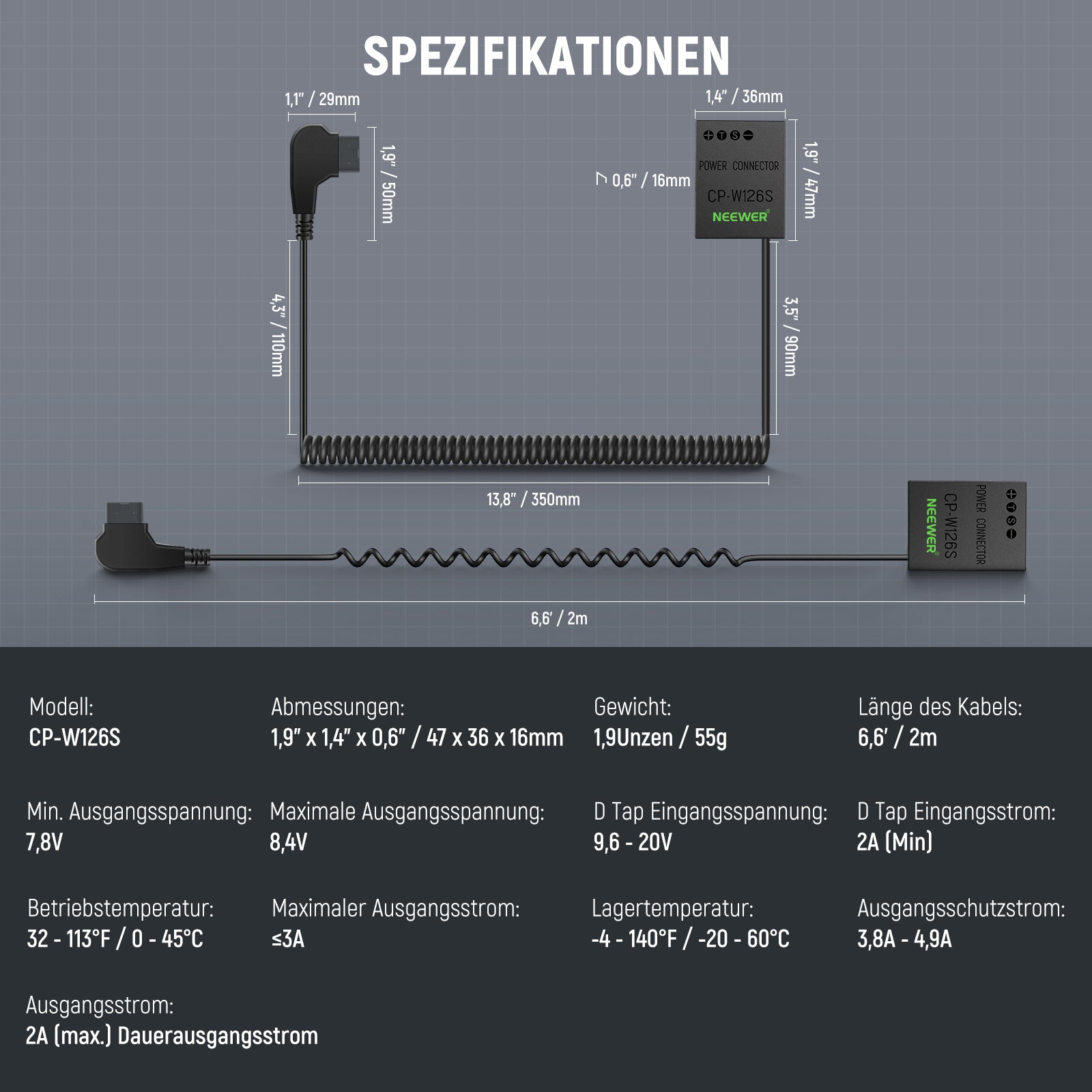 NEEWER CP-W126S D Tap zu NP-W126S Dummy Akku mit Kabel für V Mount Batterie