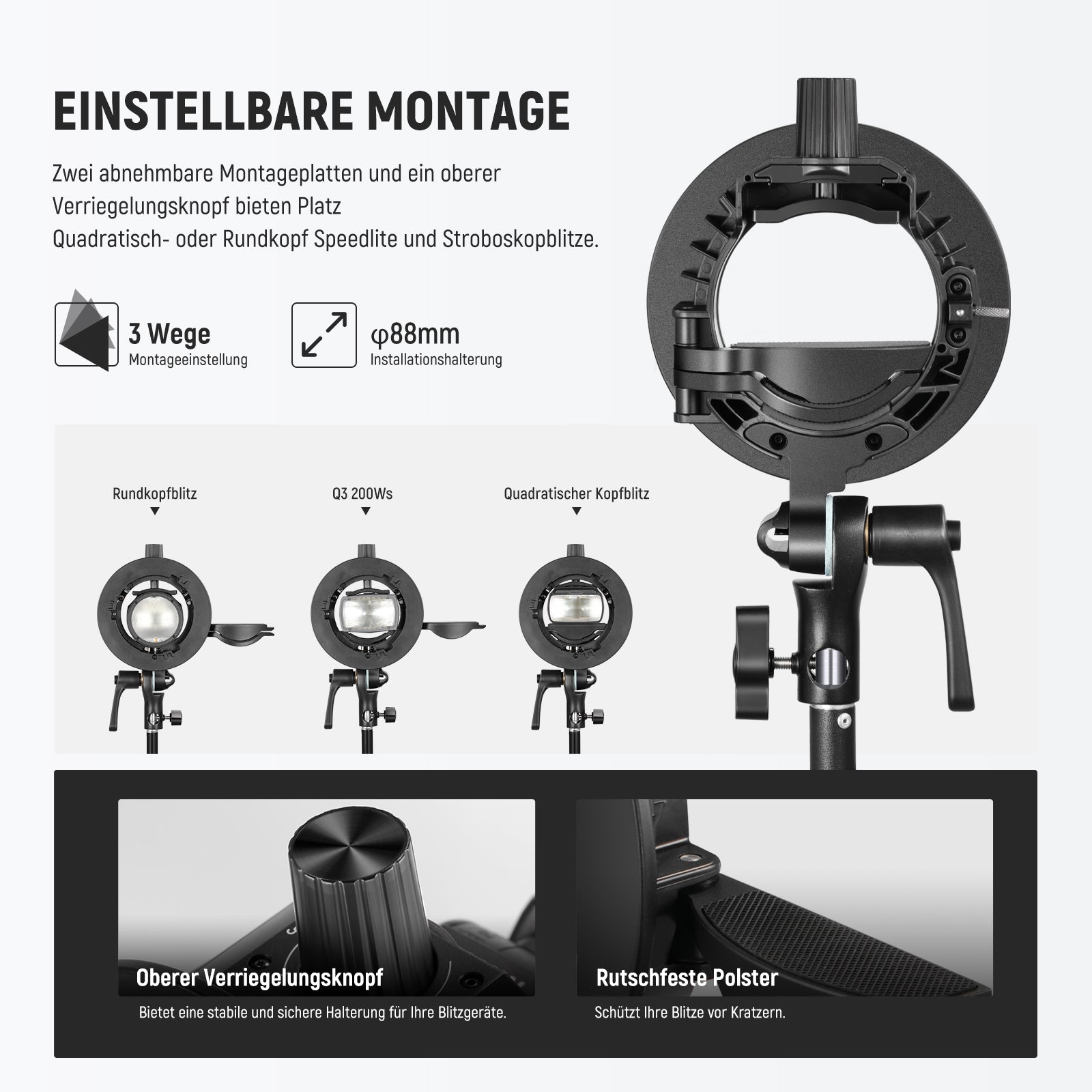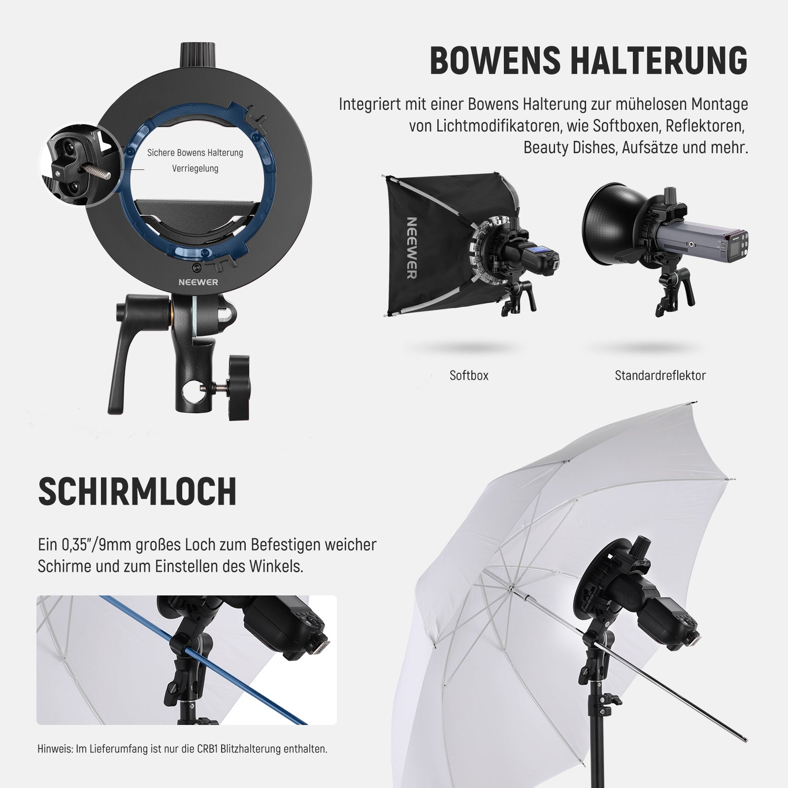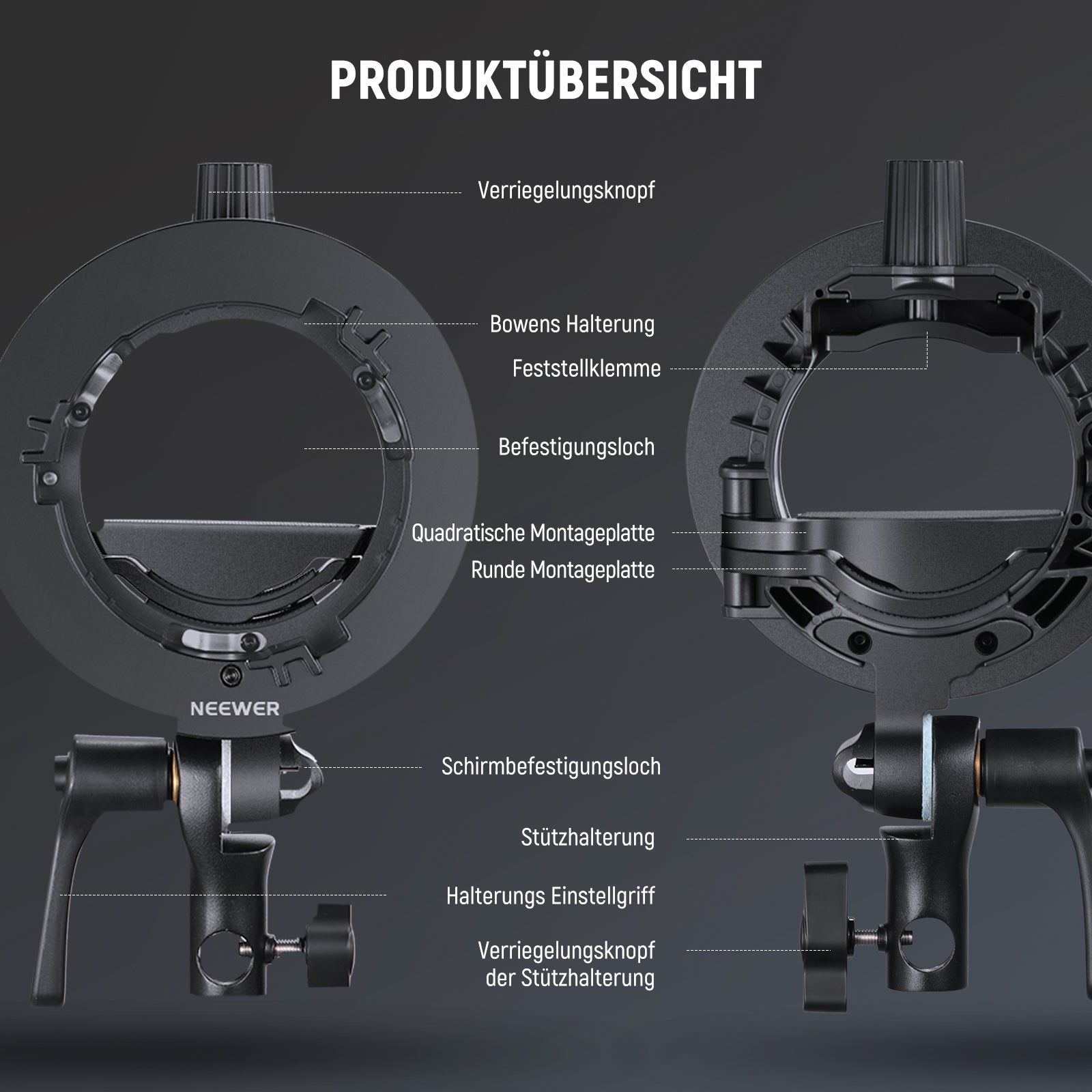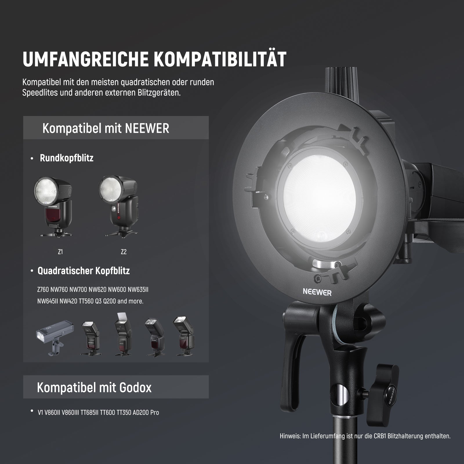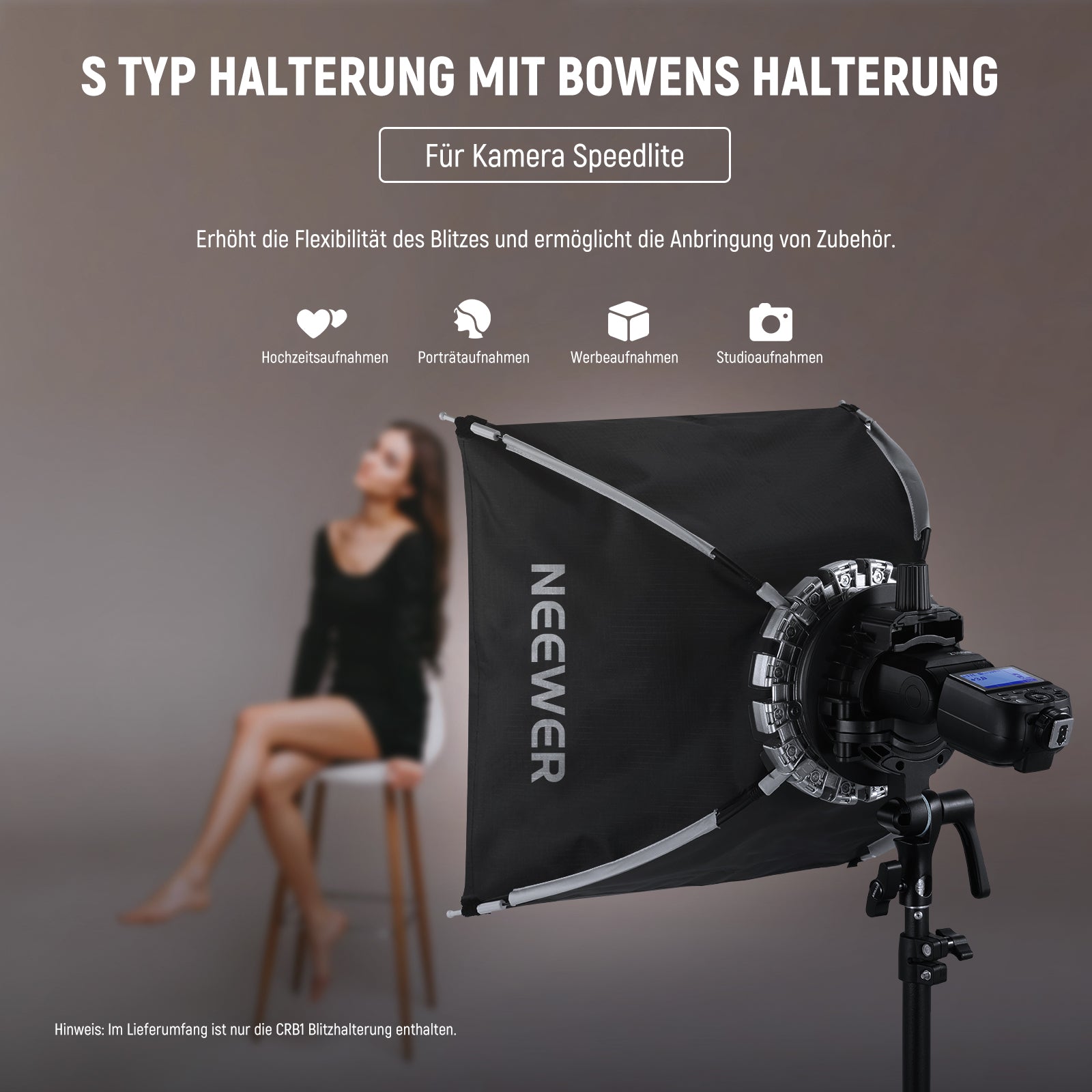NEEWER CRB1 S-Typ Bowens-Halterung für Blitz mit rundem oder eckigem Kopf