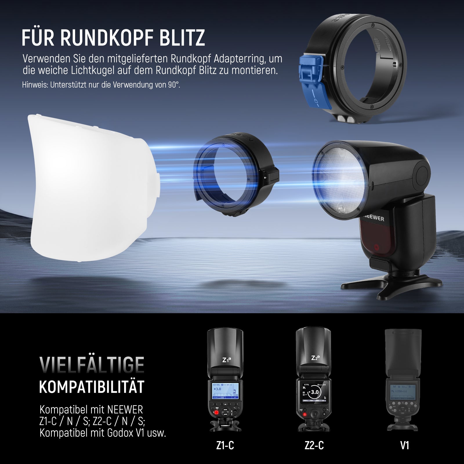 NEEWER CRS7 Softbox Diffusion Dome mit 3 Adapterringen