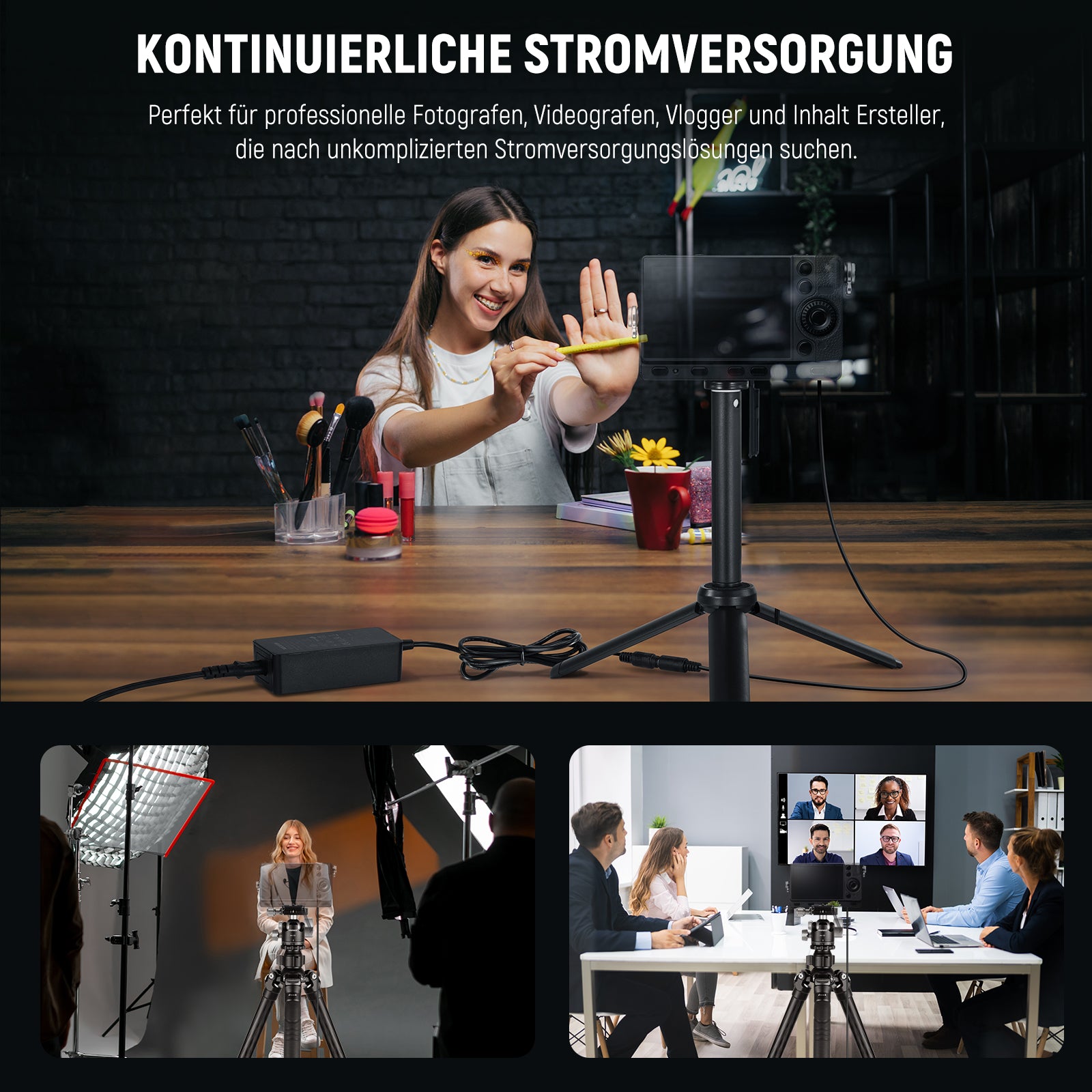 146"/371cm Ultralang- Mit einem 38"/97cm DC Koppler, einem 49"/124cm AC Netzadapter und einem 59"/150cm EU Stecker AC Kabel, dem Dummy Batterie Set (kGesamtlänge: 146"/371cm) Bietet ausreichend Kabellänge für eine flexible Einrichtung und Positionierung und passt sich mühelos an verschiedene Aufnahmeumgebungen an