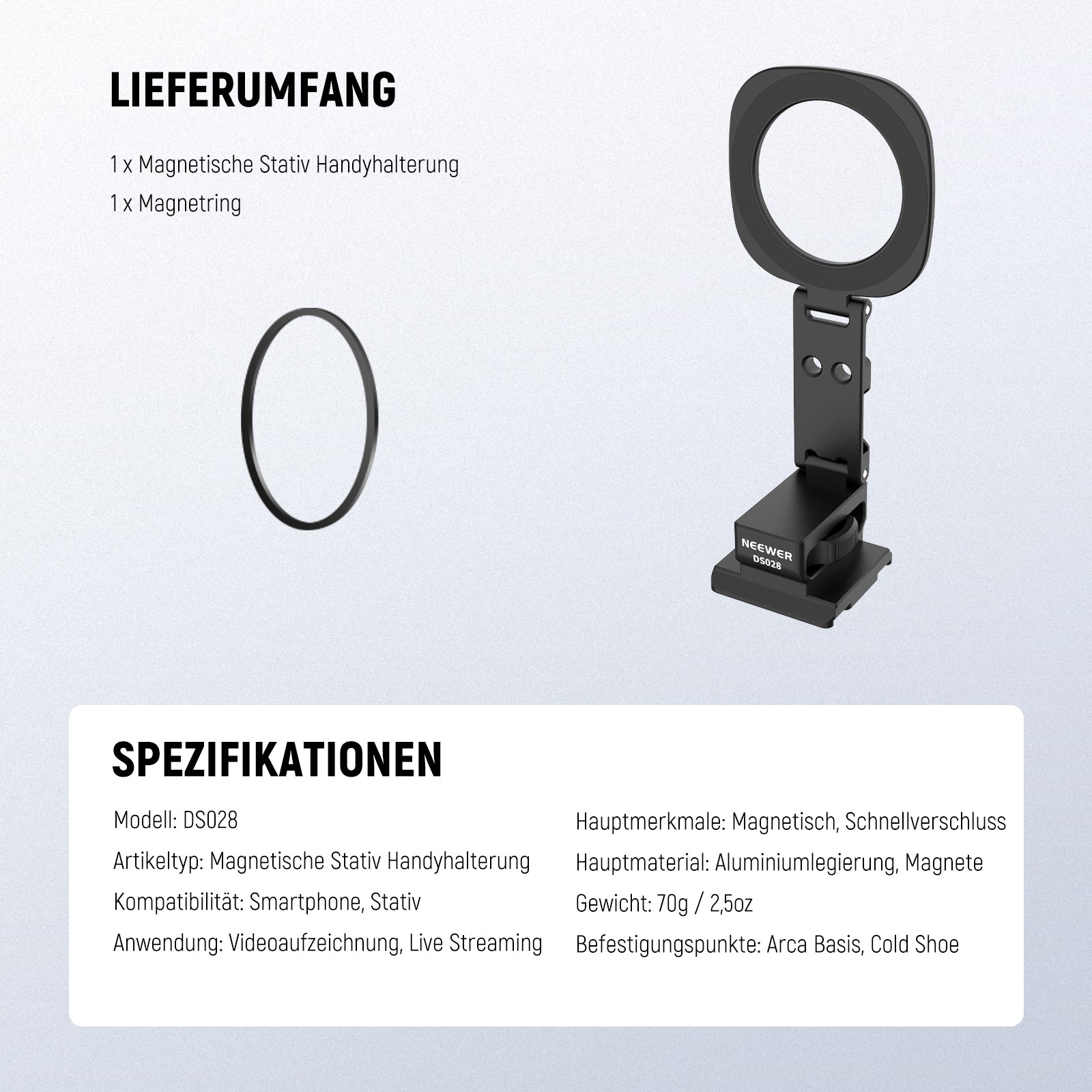 NEEWER DS028 Magnetische Smartphone-Halterung mit Arca-Platte